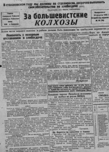 в стахановском го д у ны д о лж ны по Стаханова™, досрочно выполнить свои обязательстве по хлебосдаче (эйхе) * Пролетарии всех етоан, соединяйтесь: Газета С е в е р н о г о Р а й к о м а В К П ( б ) и Р а й и с п о л - За большевистские к о м а . ЗСК с. С ев е рн о е К О Л Х О З Ы В о с к р е с е н ь е 3 9 а в г у с т а 1 9 3 6 Г. В т о р о й г о д и з д а н и я № 4 6 ( 7 6 ) Д е л о м чести к а ж д о г о к о л х о з а и района д о л ж н о быть за во е вани е но х л е б о с д а ч е пеР вен^т в а (^ ! кулацкие агенты, только враги колхозов могут заявлять,| [ J o p a П О O O C B O i что сперва уберем, а потом начнем думать о выполнении ™ - t i . п а п е Я Г Л Л и Л Я П Г Т П О М . “ Г .~ 1 И X П I I Покончить с позорным отставанием в хлебосдаче Т о в а р и щ Р. и . ЭЙХЕ-руководитель большмиков .за л виЛипи п своем выступлении по радио 22 авгус . в 10и Чс Ктс °г куюпо К в р о и п т р иос к у не „ д О ос х т о а д т е ко х влеб и ос и д з а в ч р и а *ще р н а и з иве пр он л у ил ти б к о и ль п шар е - " н Гые в , к Х о я н д к е ре р т и н й ыон е ов б н о а л шьшег е о ви к ст р с а к я и , е по з с а т д а а в ч и и л с п о е в р ер едшен б н о о ..ьш я е с - ВИК" МЭ т и Руказания / к р и т и к а товарища Р. И . Э Й Х Е в боль- а г т р п р н н о т н о с я т с я к нашему району , к нашим комму ШСЙ Л п л о т н и к а м с о в е т о в , М Т С и колхозов п о т о м у , ч то в Чекуше» году наш р-н, ну данный на сегодняшний д е н ь , по- “ Р" Н а Г н Вп о " “ " е л Г н о “ л е6 о с д а я е гораздо х у ж е н е » . а п . » Ч т о сви д е т е л ь ств у е т о т о н , что многие ком прошлом * ' ВдДнтели с . с 0 ветов и колхозов не понимают, м уни сты , р> Д значения хле бопоста вок как перВ ^ Г е р е Г о й “ д » - к а ж д о г о т р у д я ш е г - к я я тем б о л е е ру- ■ к л „ л „ ПпПЯ г - г п в е т о в и М Т С . в з я т ь ся з а парту* б у В н о в о т р о и ц к ом к у с т е с лит у ч е б о й комм уни стов в се б л а г о п о л у ч н о , е с т ь к мунисты не с ч и т аю т п ар ! ной о б я з а нн о стью рабоп обязательств перед государством.“ (ЭЙХЕ) | М н о ги е наши работники, в то м , числе и н екоторые ра ] ботинки В-Красн ояр ской М Т С до с и х пор не поняли и не усвоили ч т о : , _ | .Только успешная работа по хлебосдаче дает в< з | мощность ускорить темпы уборки“ (ЭИХВ) Такое положение во многих колхозах района и в том „ „ „ ........... ............. . числе о б с л уж ив а ем ы х М Т С , нельзя объяснить ничем ” ” “ ' М над с о б о й , п овыш а ть свой как только тем , что у них п лох о и с у б о р к о й , и с мОЛО™ о о литический у р о в е н ь , чт и с посевом озими—п о т о м у , ч то х л е б о с д а ч а не п о с т а в л е н | тем л ег че у м е т ь р а сп о зп а как основное ведущее звено во всей р а б т е , нет в этом ^ Р I врага , чтобы п овы си ть б' вленни политической и м ассо вой работы с к о л хо зн и к ам и , ш ев и ст ск ую бдительность не н а л аж е н о со ц со р е вн о в ан и е , нет мобилизующих с т е н г а з е т ! С о г л а с н о решения бюр( словом—нет тревоги за с о з д а ю щ е е с я п ол ож е ни е . пч„ | в К П ( 6 ) в марте месяце Н а д о покончить с имеющейся м ел к о—б у рж у а зн о й РаМ партии т. Б у т а н был в и д хля бонно стью , мобилизовать ак тивность масс на б о р ь о у 3Ч рук0В0дителем при Н о в о досрочное выполнение плана х л е б о с д а ч и , возврат с с у д у I цком к у с т е , на к о т о р о г о I сдачи натур опла ты . л Вл И I возложена о бя занно сть ( Н ам нужн о нагнать темпы и досро чно выполнить сво 1низовать к у с т о вы е семи о б я за т е л ь с т в а . и | н проводить в них заня- .Нужно поднять, ярость масс против б е з д е л ь н и к о в и! --------- BOO,T TJ S 3к о Г о з о " ЖЛ ; я е ^ Г ; М Т С . --------- 