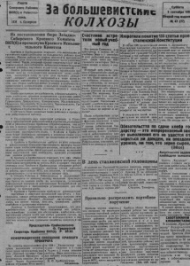 Газета ?• ' Северного Ргккока ВКП(б) и Райисполкома. ЕСК с. Северное 1— ц и н к о м В КП (б ) щесь: За больш евистские к о л х о з ы С уббота 5 сентября 1931 В тор ой го д издан» *й 47 (77) И з п о с т а н о в л ен и я бю р о З а п а д н о - С и б и р с к о г о К р а е в о г о Комитета В К П ( б ) и п р е зи д и у м а К р а е в о г о И сполни - Е т е л ь н о г о Комитета Крайком и Крайисполком о тм е ч а ю т , ч т о выполнение ав г у с т о в с к о г о плана хле бо сд ач и по б о л ьш и н с т в у районов края с о р в а н о . М н о ги е районы не сум ели о б е с п е ч и т ь выполнение колхозами даж е а в г у с т о в с к и х о б я з а т е л ь с т в по г о с у д а р с т в е н ному плану. Т а к о й позорный провал с в и д е т е л ь с т в у е т об йс ключителйной р а сх л я б а н н о с т и н б е з о т в е т с т в е н н о с т и р у к о в о д и тел ей районных партийных и с о в е т с к и х организаций. М н о ги е районные р у к о во ди тели в м е с т о организации кол х о з н ы х масс на б о л ьш е в и с т с к о е выполнение плана хле бо - с д а ч , о к а з а л и с ь в плену по с у т и дела к ул а ц ки х „дождли в ы х * , „ м о к р ы х “, „ з е л е н ы х “ настроений и в т о ж е время не принимают никаких мер к п олн ом у -и сп о ль зо ва н ию комбайн о в , к а к у б о р к е хле ба при лю бы х у с л о в и я х в о с о б е н н о с т и к организации и использованию су ш и л ь н о го х о з я й с т в а и з е р н о о ч и с т и т е л ь н о г о и н вен тар я , к о л х о з о в , с о в х о з о в и п ункт о в з а г о т з е р н о . О с о б о преступную р а с х л я б а н н о с т ь и б е з д е я т е л ь н о с т ь в д е л е х л е б о с д а ч и проявили ру к о в о ди т е л и с л е д у ю щ и х район о з : А н д р е е в с к о г о , Б а е в с к о г о , Б е л о в с к о г о , Г о р н о -ш о р с к о г о , Г у р ь е в с к о г о , Д о в о л е н с к о г о , К е м е р о в с к о г о , М а с л я н и н с к о г о , Н ем е ц к о го . О р д ы н с к о го , Т о г у ч и н с к о г о , Ч е р е п а н о в с к о г о , Гря з и у х и к с к о г о , Л о к т е в с к о г о , Т я ж н н с к о г о . Крайком и Крайисполком п о с т а н о в л я ю т * 1. О б “я в и т ь бюро у к а з а н н ы х - в ы ш е райкомов и презид|у мам райисполкомов в ы г о в о р . 2. П р е д у п р е д и т ь в с е х с е к р е т а р е й райкомов и Г о р к о мов и п р ед се д а т е л е й р а й и с п о л к о м о в ^ г о р с о в е т о в , у пол комза г СНК и уполномоченных Крайкома и Крайисполкома, ч т о ес ли они в п ер в ую п яти д н евк у сентября не д о б ь ю т с я больше в н с т с к и х тем п о в х л е б о с д а ч и , о б е с п е ч и в а ю щ и х б е з у с л о в н о е вы ю г з е а и е с е н т я б р ь с к о г о т а н а , — К >айхом и КрайнспЬ лком б у д у т вы н уж д ены применить к виновным с ам ы е с у р э в и е меры в зы с к а н и я , вп ло ть^ д о исключения из партии ч предания с у д у . 3. Крайком и Крайисполком т р е б у ю т о т в с е х райкомов и райисполкомов н ем е д л е н н о ^ о р г а н и з о в а т ь п р о в е р к у выпол нения плана х л е б о сд а ч и каждым колхозом , з а с л у ш а т ь на пре зидиуме райисполкома п р е д с е д а т е л е й к о л х о з о в , не выполни вш и х а в г у с т о в с к и й план х л е б о с д а ч и , применив у с т а н о в л е н иы е законом репрессии. 4 . Крайком и Крайисполком о т м е ч а ю т , ч т о при общем я в н о н е у д о в л е т в о р и т е л ь н о м х о д е х л е б о с д а ч и нетерпимо от с т а е т с д а ч а н а т у р о п л а т Ь за работы М Т С и в о з в р а т г о с у д а р с т в е н н ы х с с у д . Крайком и Крайисполком о б я з ы в а ю т райко мы и райисполкомы п р о в е р и т ь вручение с ч е т о в колхозам за р а б о ты , про ве ден ны е М Т С для к о л х о з о в , и о б е с п е ч и т ь фо р сиро ванн ую с д а ч у н атуро пл аты и в 