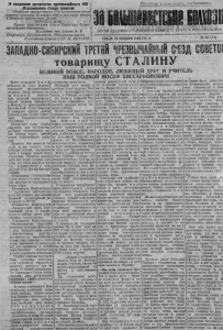 2 „З а б о л ь ш е в и с т с к и е к о л х о зы “ Окончаниеобращения третьего с‘ездасвотеовктоаврищуСатлиун № 64 (94) выки в работе, устанавли вающ их новые нормы вы- с о к о п р о и з в одительного т р у д а . Н а ро сте рядов этих н о вых людей с о всей силой и ярко стью сказывается чудодейственный результат В аш и х мудрых указаний о внимании к живым Л'Ю д я м, о выращивании к а др о в , которые решают все. Великой заботой о человеке, о пышном расцвете всех могучих сил и доро- ваний нашего народа проникнута новая Конституция страны победившего социализма. Безгранична нагла благодарность Вам, нашему великому и любимому вож дю и учителю за э т у конституцию , этот высший сталинский закон сч а ст л и вых советских людей. Вам, наш родиои учитель и вождь, мы обязаны величием, красотой и мощью поб ед , одержанных па огромных пространствах За- падно С и бир ск ого края — о т сверкающих гор Алтая до самых отдаленных у г лов н^об'ятного Нарымско- г о С е в е р з . Раш гений воплощен во всем, чем по праву гордимся мы, и не только мы, г и вся наша великая родина Н и г д е не пели раньше с т о л ь к о скорбных и печальных песен, как в каторжней царской С ибири . А послушайте сейчас наши пе сни—песни сибиряЕстъ ли более я ркая слава, Чем твоя, наш у ч и т е л ь р о д н о й ? Е ст ь ли где-н ибудь р е ки быстрее Н а ш и х , мчащи хся с гор ст р елой ? Е ст ь -л и в свете вожди мудрее И р одн ее чем ты, р о д н о й ? ' Мысли и чу вс тв а всех трудящ их ся нашего края , взволнованных огненными словами сталинской К о н с т итуции , просто и хо р о шо передал старик колхозник товарищ К о р о х о в — делегат Мош ков ского ч р е з вычайного районного с ‘ ез- да советов . — Я много лет ж и в у на с в е т е ,— говорил он с трибуны с 'е з д а , — я помню подневольную р а б о т у у помещика. Батраки работали от зари до зари . И я проклинал т о г д а свою жизнь и проклинал с о л нце за т о , что оно рано всходило и поздно за х о д и л о , удлиняя рабочий день. — С е й ч а с я солчце не проклинаю, а радуюсь , когда всходит великое с в е тило и освещает плоды нашего труда , освещает нашу радостную ж и зн ь .. Ж и знь стала радостная веселая. П ри ве тс тв ую т о варища Сталина за его заботы о нас П у с т ь долго живет он, любимец наш на радость т р у дящ и х ся ПОСТАНОВЛЕНИЕ ТРЕТЬЕГО, ЧРЕЗВЫЧАЙНОГО (¡‘ЕЗДА СОВЕТОВ ЗАПАДНОСИБРСКОКРГАОЯ ПО ДОКЛАДУ тов. ГРЯДИНСКОГО Ф. П. О ПРОЕКТЕ НОВОЙ КОНСТИТУЦИИ С О Ю З А ССР 1. Т р е ти й , чрезвычайный с ‘ езд советов З а п а д н о -С и бирского края, заслушав и обсудив проект новой сталинской Конституции, предварительно всенародно обсужденный на фабриках и заводах, на ш а х т а х и р у дниках, в сов хо зах и колх о з а х , во всех самых отдаленных уголках нашего З а па дн о -Си бир ского к р а я , одобряет целиком и полностью проект Конституции Союза С о в е т с к и х С о ц и а листических Р е сп у б л и к , тзорцом и вдохновителем которой является великий С т а л и н . 2. Новая сталинская Конституция— э т о документ величайших побед, одержанных под руководством партии Л а н и н а— С т а л и н а . С С С Р из о т с т а л о й , аграрной страны превратился в могучее ин ду ст ри а л ь ное г о с у д а р с т в о , во оруж ен ное передовой техникой. Колхозный строй победил окончательно и бесповоротно. Социалистическая с об ст вен н о сть стала в нашей стране безраздельно г о сп о д ст вующ ей . Эксплоа- таторские классы ликвидированы. »Наше общество с о с т о и т искл