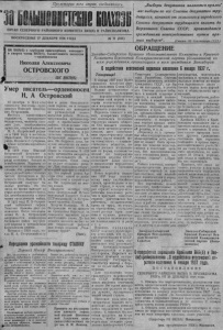 * Пролетарии всех стран, соединяйтесь: О Р Г А Н С Е В Е Р Н О Г О Р А Й О Н Н О Г О К О М И Т Е Т А В К П ( б ) И Р А Й И С П О Л К О М А В О С К Р Е С Е Н Ь Е 27 Д Е К А Б Р Я 1936 Г О Д А № 71 (101) „В ы б о р ы депутатов я в л яю т ся п р ям ы " м и : выборы во все Советы депутатов т р у - дящ и х ся ( начиная от сельского и горо дского Совета депутатов т р у д ящ и х с я вплоть до В е р х о в н о г о Совета С С С Р , производятся гражданами непосредственно путем п р я - М Ы Х в ы б о р о в " ,____________(С т ат ь я 139 К он ст ит уци и С С С Р . ) Ц К В К П ( б ) с г л у б о к и м п р и с к о р б и е м и з в е щ а е т о с м е р т и ч л е н а В К П ( б ) , т а л а н т л и в о г о п и с а т е л я — о р д е н о н о с ц а Николая Алексеевича О С Т Р О В С К О Г О Ц К ВКП (б ) Умер писатель— орденоносец Н . А Островский 22 д е к а б р я в М о с к в е с н в к и о о ч н н о ч О с а е с л ц т с р я Н о в и с п к к о и и л с й а а . т й е л А ь л— е о к р с д е е е Н е с т а л о талантливого х у д о ж н и к а , п р е к р а с н о г о л б о о г л о ь ш у е в м и а к , а , ч н е е л о о б в ы е ч к а а й с н в о е г т о м у ж е с т в а , кипуч ей э н е р г и и . ся Н в . 1 А 9 . 04 О с г т о р д о у в с к в и м й е с р т о е д ч и к л е Ш е п е т о в к а , И з ' я с л о в с к о г о у е з д а , В о л ы н с к о й г у б е р н и и , ^ с е м ь е ж е л е з н о д о р о ж н о г о ^ Ь б о ч е 1 г 9 о 19 . год у Николай О с т р о в с к и й в с т у п а е т в комсомол и с т а н о в и т с я в ряды о т в а ж н ы х бойцов за о с в о б о ж д е н и е У к р а ин ы о т а н ем ец ки х и пол ь ски х а к к у - п а н т о в . О й у ч а н с т в у е т в г р а ж д а н с к о й войне иконных д ч е а н с н т о я г х о . ПК о о т д о в Л с ь к в о о г в о ом и Н Б . А у . Ож с е т л р ы о е в с к р и а й н е н п и о я л . у ч а Н е о т э т т я о л и ш ь на врем я выводит из строя м уж е с т в ен н о г о б о р ц а . О ча н ни д и е м г о р б а и ж л д и а з н у с е к т о с й я к во о й к н о ын . ски В й 14)2 з 2 а б г о о д л у е в Н а е . т А - О т с и т ф р о о м в . л Т о я жж н е е л н а и я е . б П о о л с е л з е н ь вы д з а д е о т ро о в с - ' л ен и я Н . А . О с т р о в с к и й н а п р а в л я е т с я комиссаром н б е а й т а о л х ь р о н а н а и в о в й с п к огр в а н н у и т ч р н е о н м Б е р е з о в с к о м р а й он е . гда Н а Н ч и . н А а . я О с с т 1 р 92 о 4 в с г к о и д й а , в с к т о у с п к и о л й в п ар р т я и д иы , он б о л в ь т ш е е ч в е и н с и т е н е с к о л ь к и х л е т н а х о д и т с я на р у к о в о д я щ е й мольской р а б о т е . П о к х о о м д с ы о , н с к а а п я ряж и енн п а р я о п а о г р а г н а д н и и с з т а с т к о а р я р ро а й б о р т а а н , ы п о и с л т е и д ф с а т в в и ы я зы с в т ае а т з т у я л ж ь е т л а о т е е з а к б о о т л о е р в о а н г о и е , Н в . р А е . Они с т я р . о Н в о с к б и о й д р л о и с т ш ь а е д т у с х я а , з к р и е - , п у ч я я эн ер г и я ни на мину- | т у не ост а вляю т сл авн о го б о р ц а за соци али зм . В 1928 г о д у начинается л и т е р а т у р пая д е я т е л ь н о с т ь Н . А . О с т р о в с к о г о . С в о и силы о н н а „ о К т а д к а е т з а к со а з л д я а л н а и с ь ю с т р а о л м ь а “ , д с к т о у р т . о о Е р г ы с о т й а п л в е ырв х о ыо д д н й и о т й р в о и м з 1 а 9 л н 3 ю 2 б - б Г ыи о - м н ги е е е . й ш я О з н и ы х ки к п н . е и р г е в в е д н е а н ш е н й а с м т н р о а П е р в о г о о к т я б р я 1935 н г о и д т а ель Ц н е ы н й тр К ал о ь м н и ы т й е т И С с о п ю о з л а С С Р нагр адил Н . А . С с гров- с к о г о орденом Л е н и н а - Б у д у ч и б о л ьны м , Н . А . О с т р о в с к и й не на м и н у т у не п р е к р ащ а л б о р о т ь с я за с ж о е ц с и т а в л е и н з н м о г о о р с у л ж о и в а е . м Д о х у п д о о с л н е я д т н е г т о в о м р о ч м е с е к н о т й а он р б а ы б л от з о а й д н е а н д ныно е выб у м р р е й ом * . а