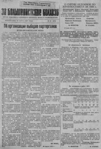 р \ I ' У Т ЙН1 О Р Г А Н С Е В Е Р Н О Г О Р А Й О Н Н О Г О К О М И Т Е Т А В К П (б ) И Р А Й И С П О Л К О М А В О С К Р Е С Е Н Ь Е 28 М А Р Т А 1937 Г О Д А № 18 (119) Оборганизациивыборовпарторганов В С Е М О Р ГАН И ЗАЦ И ЯМ ВКП(б) Ц ilptt проведении h u- i 5) При персональном об- о о р о ь партийны х органов i с у ж д е н и и к а н д и д а т у р дол- н е о б х о дим о с т р о г о р у к о- 1 ж и о быть о б е с п е ч е н о н еог- вол<~т к о в а т ь ся с л е д у ю щ и е р е ш е н и е м Пленума Ц К В К П ( б ) о т 27-го февраля 1937 го д а ; б н о он р „ а В х г о о с л п п о р а с р е о т т в и и а й т т ь н ь ы с х п п р и и с о к р в о г ы м а . Г о л о с о в а н и е производить по отдельным кан дид а ту - р а м , о б е с п е ч и в при атом о т в в г и с о р е д к м а а у н и к п ч ч а о е л н с н е д л н н и е а о д д м е а н т и о п х п в а . р р У а т в и и с о т и а к н р о н и о т е в ти и й ть ны п х ри орг в аны о б в ор з а а х кры п т а о р е ( д 2 т ) и а д й а н т З о о а е в к ) " р г . ы о л т о ы с м о в а ( н т и ай е н к ы а м н ) го ло со в ан и е м и збир аю тся : л) д е л е г а т ы от первичных п артийны х органи зац ий на л с р т к и е а г и й й а н о х т н , ыы о н е к ы о р к е т у о , ж н р ф г н а о е ый р р о х о е н д н н п с ц к ы а и р и х и т е и го и й п р н д о а ы р д е х конференций на о бл а ст ны е , р к е р н ае ц ь и . и ме и п с а ъ р е т зд и ыйн н ы а е цк к о о м н п ф ар е - т и й н м и и б з т ) а ; е т т ч о о л р в е ы н и ы па (т п р а а т м р и т , й и н й ы г н д е ы е о х р к к г е о а т т п н иы ар й т н к ы п о х м л е о н в о ) у р м г п а о е н в р и в з и а ч р ц н а и й ый к , х о м п ч л а о р е в , м го о р в в ) к о и с м е Ц о к в р К , е т о н а б а р к ц и о к м ом о п в п а , а р к р т р т к н а о й й м к : о о в п ервичных ций, с е к р е т а п р и а р т о и р г а ч н л и ен з ы а ■бюро р а й ком о в , г о р к о м о в , о к к омр у о жв, к о Цм К о в ,о н б а к ц о к м о о м в п , а к р р т а н й й (и збираю тся на п л е н у м а х с о о т в е т с т в у ю щ и х б т о о р в 3) ) о . в П е п р а е р д ти п й р н о а в я ед к е о н к н и о ф е м м е и р в е т ы н е ции (п артийн о е собрани е) у с т а н а в л и в а е т б в н и о ов р ч . а л е е м н ы о х в п и а к р а т н и д й и н к д ы о а л х т и о о в ч р е с и г т а з 4) К ан д и д а т у р ы в новый с о с т а в партийного органа вы дви г аю тся д ел е г а т ам и и о б с у ж д а ю т с я персонально н еп оср ед ственн о на самой п а р т и й н о й к о нф ер енц ии ( д о а т П т д ыр е е л д п ь в н а а р о р т и и в т й е ч н л л о ь е г н н о ы о е ор н г с к а о а н с н т а д ) а . и в л н е и н е и е их с п п о и м с и к м о в о н пл о е б н с а у р жно д г е о з ф п а у е с с р е к е д а н а е ц н т и и с и я я . (с п о а б р р т а и н й и н я о ) й не ко д н о О б с у ж д е н и е в с е х канди д д с т а с а т т в с у я р п , а в рт в т и ы о й м д н в о и г п н о о у р т о ы я р д г х а к н е а , в , к с в а о е к р р з о и н е е н д и и ц и б у и х м ы и л п и (п о п с а а з т р р а у т т п п и и и л й й с е н а н н н о о и й ы г о я , к п в с о о о н п б ф м р р е е е а ния). р г н и ч еи н о е право отвода вы двин уты х к а н д и д а т у р в с о с т а в партийного о р г а н а , т - е . каждый д е л е г а т м ож ет отводить лю бое к о л ич е ст в о вы двин уты х к а н д и д а т у р и д п в ч и а о е т с д т ь к а в с а т я о ж у р д д н е о е е й о л г м е р в г о ы а а жн д т и е в о ч т и в е н , н у н в к т о ы а о е к с й к к „ о а к з л з а а ыи н “ , т а к и „ п р о т и в “ . ф т т ы е е Д л р ь е е в н л н е о ц ч г г л и а о е и т н г ы ы с ол п п о В а р с К р а а т П в и о и ( м й б ) н к с о а о й н н в д а е к и що с д н о а а б о р р а га н н и и я з х аци п й ервичных п а р т п о л ь з у ю т с я п л р о а с в а ом пр с и о в о е б щ с а у т ж е д л е ь н н и о и г о ка г н о - к а н д и д а т у р в партийные о р га 
