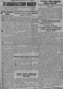 V 1 V ’ ’ Т по делам газет и издательств * опэ иняйтесъ! ЯШИ Овыпуске „Займа укрепления обороны Союза ССР“ ОРГАН СЕВЕРНОГО РАЙОННОГО КОМИТЕТА ВКП(б) И РАЙИСПОЛКОМА СУББОТА 3 ИЮЛЯ 1937 ГОДА № 37 (138) ^Отчетынародного судьи С 29 июня в нашем районе началась отчетная кампания о работе народного суда. Эти отчеты являются глубокой проверкой работы не только народного суда, но и работы еШьских судов. Во время от четов проверяется связь народного судьи с массами. Отчеты и последующие за ним выборы народного судьи —важнейшее звено в подготовке к выборам советов по Сталинской Конституции. Новая Сталинская Конституция открыла новую эпоху— эпоху дальнейшего развертывания демократизма. Новая Подпиской на заем обороны еще больше усилим мощь великой страны советов ^ н с т и т у ц и я социалистичес- ф ' о государства устанавливает, что народные судьи избираются гражданами района на основе*всеобщего, равного, прямого и тайного голосования. Народный суд играет большую роиь в общественной жизни нашей страны. Наши судьи независимы и подчиняются только закону. Они призваны бдительно охранять интересы трудящ и хся , беспощадно и метко разить всех ирагов. Работа нарсуды! сложна и ответственна. На советский с у д возложена задача воспитания советских граждан в духе строжайшего соблюдеПрезреиная японо-немецкая шпионская банда, ничтожная кучка этих троцкистско-бухаринских выродков Тухачевского, Якира, Уборевича и других из военно-шпионского ядра одного иностранного государства, своим п р ед а тел ьством и шпионской работой готовила на случай войны поражение Советского союза, она пыталась потопить в крови наши великие социалистические завоевания/ свергнуть рабоче-крестьянское правительство и восстановить в СССР ярмо помещиков и капиталистов. Но враги просчитались. Они не ускользнули со своими предательскими замыслами от зоркого глаза наших доблестных чекистов и от нашего боевого нзркома НКВД т. Ежова. Спи пойманы с. поличным и стерты с лица земли, как мерзкая гадина. В ответ на эту последнюю вылазку врагов и изменников р о д и н ы многомиллионные массы нашего социалистического отечества обратились с просьбой к своему правительству — выпустить заем обороны СССР. ускорить этот Постановление Ц ентрального Исполнительного Комитета и Совета Н ар о д ны х К ом и с с а р о в С ою за ССР Иля на встречу многочисленным предложениям т р у дящихся Советского Союза и в целях привлечения их р а стущих сбережений на дело укрепления обороны Советского Союза, Центральный Исполнительный Комитет н Совет Народных Комиссаров Союза ССР постановляют: 1. Выпустить государственный внутренний заем у к р е пления обороны Союза ССР на сумму 4 миллиарда рублей 2. Заем выпустить сроком иа 20 лет с 1 д екабря 1937 года по 1декабря 1957 года, и с четырех процентов годовых. 3. Облигации займа и доходы от иих, в том числе выигрыши, освобождаются от обложения, государственными и местными налогами и сборами. Инструкции об условиях г и порядке реализации издаются Народным Комиссариатом же просили выпуск. _ __ __________ ____________ ______ Правительство эту просьбу ^финансов Союза ССР утверждения Совета Народных Коммиссаров Союза ССР. Председатель ЦИК Союза ССР /VI. Калинин. 'Председатель СНК Союза ССР В. Молотов. Секретарь ЦИК Союза ССР И. А к у л о в . Москва, Кремль 1 июля 1937 года. Утверждено Советом Народных Коми