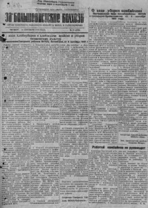 О х о д е у б о р к и и р а ссти л а льна Постановление бюро крайкома ВКП(б) и президиума крайисполкома о т 5 сентября 1937 года ,3а большевистские колхозы1 Бю р о крайкома и президиум крайисполкома отмечают, что райкомы и райисполкомы Ш е г а р с к о г о , Т у г а н с к о г о О с и - н о в с к о г о , Ижморского районов, горком и гор совет гор. Том ска , окружном и окри с- полком Нарыма сорвали выполнение постановления крайГолоднева, что если в т е ч е ние ближайших дней не б у д е т обеспечено зав1‘ ршение теребления и расстил льна,к ним б у д у т применены с т р о гие меры наказания как за срыв отв е т ст в е н н е йш е г о г о с у д а р с т в е н н о г о задания. 2. Обязать се кретарей рай Никакойпощдаыврагам народа Постановление общ его собрания членов союза органов НКВД, суда и п р о к у р а т у р ы . кома и крайисполкома о г 21; комов и председателей райа в г у с т а , н едопустимо затянули теребление и о со б е н н о расстил льна (на 80 августа в этих районах разостлано тол ьк о о т 8 до 25 процентов). Б езобра зн ое игнорирование в ряде районов уборки , расстила и переработки льноволокна, подрывает доходн о сть кол хоз ов и колхозник ов и с о з д а с т у г р о з у гибели значительной части посева льна. Бюро крайкома и п р е зи д и ум крайисполкома п о с т а н о в ляют: 1. О с о б о предупреди ть с е к ретаря Ш е г а р с к о г о райкома т о в . Налимова, председателя Ш е г ар ск о г о райисполкома тов. Юркова, секретаря Ту гаьско - г о райкома тов . Бакунина, председателя Т у г а н с к о г о райисполкома тов. Шаповалова, секретаря Осиновск ого райкома т о в . Пешкова, председа теля О с и н о в с л о г о райисполкома т о в . Медведева, с е к р е - исполкомов, ди р е к т о р о в МТС и зав райзо срочн о проверить по колхозам причины невыполнения ежедневных графи ков работы льнотеребильных машин и причины задержки расстила льна. В ближайшие дни укомплектовать л ьн овод ные звенья там, где они не укомплектованы, обеспечить правильную оплату их труда и загрузку теребилок и с л о ж ных льнообрабатывающих машин. 3. Отмечая, ч т о » ряде районов (Тогульском , Туганском, Мошковском, Чорепановском) делу создания семенных фондов льна не уделено д олж н о го внимания, в связи с гем обмолоченные гол овк и льна о с т а ю т с я в ворохах п о д о т крытым небом н подвергаются порче, обязать райкомы и райисполкомы о б е с п е ч и т ь в ближайшие дни тщ а тельную про сушку , со р ти р о в к у в се г о намолоченного и произвести х ---------- ------- V ■• V I П таря Ижморского райкома то в . полную засыпку лучшими П р отоп оп ов а , секретаря Том с к о г о го р к ом а тов. УЬлыше- ва, председателя Т ом ск о го г о р с о в е т а тов. Романова, с е к ретаря нарымского о к р у ж к о ма тов. Левиц, председателя нарымского окрясполкома тов . льносеменами семенных с т р а х о вы х фондов. Зам. председателя крайне* п о л к ом а Шварц. Проработав и о б с у д и в решение РК ВКП(б) от 1-го с е н тября 1937 г. о б щ е е собрание членов союза органов НКВД, суда и прокуратуры целиком и полност ью о д о б р я е т д е й с т вия органов НКВД по разоб лачению врагов народа Демидова, Матросова, Булгакова и других, в их контрреволюционной деятельности по развал у колхозов и подрыва экономики в районе. Собрание такж е считает вполне правильным принятое решение РК ВКП(б) о б исключении из рядов ВКН'б) и снятии с работы Матросова и Никитина. Одновременно требуем о т органов пр о л е та р ск о го суда над разоблаченной ба
