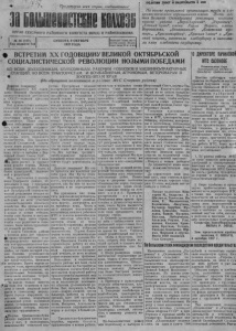 Пролетарии в с е х стран, соединяйтесь! О Р Г А Н С Е В Е Р Н О Г О Р А Й О Н Н О Г О К О М И Т Е Т А ВКП (б ) И Р А Й И С П О Л К О М А № 56 (157) Год издания 3-й С У Б Б О Т А 9 О К Т Я Б Р Я 1937 Г О Д А Выходит один |>аз в с шн е а с я ти ц щен е а пк 30 у к П . о в д мпи -ц поделай газет и издательств 1 экв Н а основе правильной ор га н и з а ц и и труда и с о - циалистического соревнования имени 20-ти л е - тия В е л и к о й О кт я бр ьс ко й революции к о л х о зы нашего р а й о на „ В е р х - 1 а р с к и й " , „ У к р а и н е ц 1, „ Е д и н ы й путь“ , им ен и К а р л а М а р к с а , и м е н и Во р ош ил ов а , „ О с о а в и а х и м " , „ С о в е т с к и й к у с - т арь „ , „Красногвардеец" , „ К р а с н а я 7а й г а я и „ К р а сный н а ц м е н „ з акон чили х л е б о у б о р к у и выполнил и пл а н хлебосдачи государству. О ф ВСТРЕТИМ X X ГОДОВЩИНУ ВЕЛ ИКОН ОКТЯБРЬСКОЙ СОЦИАЛИСТИЧЕСКОЙ РЕВОЛЮЦИИ НОВЫМИ ПОБЕДАМИ КО В С Е М К О Л ХО ЗН И К АМ , К О Л Х О З Н И Ц А М , РАБОЧИМ С О В Х О З О В И МАШИННО-ТРАКТОРНЫХ С Т А Н Ц И Й , КО В С Е М Т Р А К Т О Р И С Т А М И К О М Б А Й Н Е Р А М , А Г Р О Н О М А М , ВЕТЕРИНАРАМ И # ЗООТЕХНИКАМ КРАЯ ( И з обращения к о л х о зн и к о в и р и о ч и х М 1 С Северного р а й о н а ) Дорогие товарищи! щиП н р а иб В л е и л ж н а к е с т й ся О X кт X ябр г ь о с д к о о в й социалисте ческой р е ^ д к щ и ч в С С С Р —великий праздник в се х народов. стиП ч о е д ск р о у й ко п в а о р д т с и т и воми в к е о л м и м к у о н г и о вождя народов товарища Ста лина постр сн а радостная, счастливая жизнь для всех # уд ящ и х ся . Наша страна, з в м ен p а u н , n о с a й та п мл о и а б р е о д с в и а о в м й шо д й ег е о р мж о с а о г в ц у о щи й а , е л с н и т а н к ыото в р з у о юры с н в а с д ег е о ждо п й ер о е б д р о а в щог е о чело в еч ест в а . Иод знаменем великой Сталинской консти туции наша родина готовится н к хо о в в м н е у ы ли й а ч к а т С й у о ш—в е е к т му в С ы о г б о ю о с р з у а а д м а С р С в ст Р В в . е е р нд ,^ о Дм о р дн о е г ми е р т а о ст в е а т рищ и и! к С реп к н а ж ет наша родная страна. Жизнь наша ст ановится все бол^е и б н о о М л й е ы е и , р к а у к д л о о ь л с т х т у о н р з о н н й и о . к й и , и з а к ж о и л т х о о ч з н р и а ц щ ы ае С м е с в я ер к н о в г ам о р с ай пр о и н з а ы , в о о б м ознаменовать 20-летие Воли к ч м о е е й с ч к а о О т й е к л т ь р я н е б в ы р о м ь л с и юко ц с й и т и а с х о а н ц н о и о вы а в л с м к и и и ст м з и а и победами на всех у частка х социалистического сельского хозяйства. Мы призываем вас работать еще л у ч ш е , иттн все к новым и новым победам, ч ст т в е е б ны не e е m б e ы б л о а гач н е аш и а м с о т г р у а щн е а , ч с т я о т ч о н б ве ы е л е и е б к шы ой е ла р р а ж о д д и о и з с н н т ыь н . т е р е у и дя з щаж и и хВ нашем Северном районе в течение ряда лет орудова- Фо к н ая о- п д к р и о а в н в е о т р - р с т р и р е о о в н ц о н к л о и ю с - ц т и в ск о р а н е я д н , и ая т i е r б л п а ь н и сда. Г н у с н а я , омерзительная яш л а и йка б , ы в в о ш г и л е аве р к у о к т о о в р о о д й ит с е т л о и н р о а е йо п н р а е , д р а а т з е в л е ь р с н т у в л о а , ч ш у п д и о о в н и а щ ж ра дж и а в л е и рс с и к юо т . , В п р р а и г н и ад н л а е р жод а а щи за й к ф га о е н л к и х ц з о и о з о в а н а м н л ыи и м ми к а о с л с б х о о о в л з о н е е з и н к я а и мм с и , т , р и о е н р б ление колхозного скота. , ^ а какую только пакость * л в н и о и ч ст иш и л в и к с э в с т о о и е в й ет м с е з к р в о е з мр ав и у ц н ыой на и р н о с е д в н о у а . В ве р т а с г к и ие пар з о а д к а онын , ару и ш зв а р л а и ща с л о и сталинский устав колхозной л ж во и