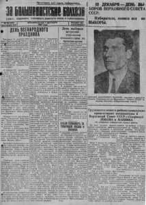 Проле тарии всех стран, соединяйтесьt I Г А З Е Т А СЕВЕРНОГО РАЙОННОГО КОМИТЕТА ВКП(б) И РАЙИСПОЛКОМА 12 Д Е К А Б Р Я — Д ЕН Ь ВЫ Б О Р О В В Е Р Х О В Н О Г О С О В Е Т А С С С И Р з . биратели, явимся все на JTfrT(T65) Г о д и з д а н и я 3 - й BÜCKPEÓEHbE 5 Д Е К А Б Р Я | В ы х о д и т р а з 19 3 7 г о д а I в ш е с т и д н е в к у В Ы Б О Р Ы . ф ДЕН Ь ВСЕНАРО П Р А З Д Н И1 г ° День выборов в с т р е т и м х о р о ш и м и Г о д назад—5 декабря 1936 г о д а—Чрезвычайный Y1IJ Все- с н о я юл * я &ш а й линС с ' е к з у д ю К С о о н в с е т т и о т в у ц п и р юи . П о решению с ‘ еэдз э то * А0НЬ об'явлен всенародным прзэд- ПИКОМ. Конституция С С С Р подведи и т о ^ б о р ь б ы ра бочи х и кре- C r lu U нашей страны за свое освобождение, аи с б е т д ею и счастливую жизнь. Н а Чрез- «ычайном VIII Всесоюзном г д С о и 'е . я В з п д г у е о т р в и е С о з о р у в и б л е о л ь т р : т о ь а в б т ы е тов п и а р р о л и й и щ д ш е е н С н н т и о а й п р и я т н о и радостно кисть с щ в у о юю о Ко п н л с о т д и а т х у ц н и а ю ш , и т х ра п к о т б у е юд. Приятно и радостно знать, за что бились наши люди и как с р ши и че д ск о о б й ил п и о с б ь ед в ы се . м '. и П р р н и о я - т и н с о то и радостно знать, что кровь. Обильно пролитая нашими людьми, не прошла даром, ч т т ы о . о Э н т а о да в л о а ору с ж во а и е т ре д з у у х л о ь в т н а о ра б о чий к л а с с , наше к ресоа ян ств о , н аш у трудовую интеллигенцию. Э т о двигает вперед и поднимает чувство з п а л к я о е н т но в й ер г у ор в дос с т в и о . и Э т о си у л к ы р е и сы зар уб ежны х товарищей , у к п б а о з е б ы ж ед в д и а а е м е т о т с н т и ми х н п в а у шт п ь е р г а о к во о д т с е е в л о а и б , о п н ж о е дению от строя эксплоатацин , зовет их к решительному ш т у р м у капитализма. вш а и юП х о т б в е р д б а ы е г шов е с . н о с ц т О и в н а о и ли и з в м и зл а д о я б т в у , ы ч з н т ы а о с т в о о о ц в м и у а и л п и г о з о м м сп ещо н д е и с с к е т о т в в у . к О о ф н н а и е б ц р в и и в к е д а к я н о т , что Сталинская Конституция становится знаменем борьбы п ян ер в ед се о г в о ых м р и а р б а о . чи Ф х аши и к с р т е с с к т и ь е г в н о е о с т в у с , д к д а у и рю в с е т р в т с а е а р н з р т а и о сы в т , о л р а в ию р юе т ди ншт а е п л и с е о о й р и о у д б а и —й ц т . ро З ц л к е и в с ш т иы е , в З р и а н г о и вье н в а - цы, бухаринцы, рыковцы — д дш а е и т й с е с т л т с и в к у и ю и х т у р б а и п з й о в ц е з ды а о д к з а . а н м и Э ы я т мишл п я ф р л а е и восстановить в нашей стране к в а л н Т а т щ с о т е в ь т . н / п ы ом ок е а а з ш а к л о и з сь и по ф п а ы б т р к и и врагов! Весь советский народ зо р к о и неустанно следит за вражьими происками. Н арод уничтожает и уничтожит до конца тр о цки стск о -б ухар ин с к у ю нечисть, в с е х , кто ■мобилизует на новую борьбу j пытается торговать родиной, д ля завоевания новых побед коммунизма". н д ц ы е и Пн и и р с . я о Т г ш р о С е р у т л д д а я о л г с щи о т н д и ь с е ю с к с о о я й п д н о н а К д я ш с о ч е у н й т и с в т т с е ы и т р р т в ж у а а ют п об еды , одержанные нми аа истекшее время. в р ыи Р к х аб и р о е ч з к а и о в е р о д д и о о в в ра п б д р о о о т б и н и з и в л ц о и ы д с и ь т ф е н а л б ь о ни р о о т с е й т л и ьс п т т я в р т о у и д л р » е я . т д к З а и ак , о о в б н 'е ч ч к е а т н с о о т в н с о т в с р т т о о и канал М о с к в а—Вол< а. Крестьяне-колхозники и ра- л ф а р р и а р д с ч с т о т и и в и е л ч и е с 8 с о 0 к и в 0 и х с х о о з м б о и р п в л а о л л л л и и я ю о х б н н о о 6 а в в н м с о п о и у ц л д в и л о ы и а в х л е б а— у р о ж а й , которого цир- д Ск а. С зя о в Р е о т с с с к и и