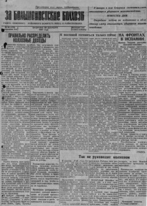 П р о л ет а р и и в с е х стран, соединяйтесь/ за ш ш н е ш н ю Г А З Е Т А С Е В Е Р Н О Г О Р А Й О Н Н О Г О К О М И Т Е Т А В К П (б ) И Р А Й И С П О Л К О М А № 69 (170) В Т О Р Н И К 2 8 Д Е К А Б Р Я |Вы ходит у а з издания 3-й 1 1937 г о д а | в ш ест иднев к у 5 января в селе Северном состоится слет стахановцев и у д а р н и к о в животноводства. П О В Е С Т К А Д Н Я . Очередные з адач и п о подготовке к о б л а стному слету ст а ха н о в ц е в , у д а р н и к о в животноводства . с ра # X I ПРАВИЛЬНОРАСПРЕДЕЛИТЬ КОЛХОЗНЫЕДОХОДЫ ъшинство колхозов на- района в этом году соб* богатый у рож ай . Ста ха - в б ч о о аю в т ц а т юы щ , б и у о д л е а ь р шк н о и и л е х к о и з , н н а и ч т к е у и с р т а н л о п ь о н л р ы у а е и денежные доходы. В колхо- ве „Ук раинец * (Останинский сельсовет) колхозник Нолеп Никита на п е р в о е декабря в д ыод р н а е б й от , а о л н с п о се л м у ч ье а й е т 1 4 Н 0 О 7 тп ру д о в натурой и 11Ю рубле у й деньгами. У З а л и п ц Аврама семьей 1000 тоудодней , его Ь т о д —420 пудов натуры н х 1 о 00 з 0 е р и у м б . л К ей ар д л е а нь М г а а р м к и с . а В (Б к н о а л - к в л л и и е ^ н ч Ь п с а а к т о м и д й мн с ч а и с и е т т л р ы 7 ь у 0 в с д а о о к ю в д о е т е п т , н е ) ь ч ек т к о п о о л о д н х е 8 о н и з ь н п к г и а и о * ш (. Шестидесятилетний ста- г н к этого колхоза С т а р к о в С та а л вел н и а й пе М р а в к о а е ров д и е ч каб в р ыя ра3 б8 о0 т р у д о д н е й , а вместо с семьей Щют 31 49 т 0 ру п д у о д д о е в нь. зе О р н н и а п и ол у 7 ч 2 а 2 р н у о б б л ыя . ло Т а б к ы и х пр п и р в и е м ст е и ров мнм о о г ж о , и все очи показывают рост зажиточности колхозников. В ближайшие дни колхозы при сту п я т к окончательному ^^определению доходов. В а ) р т т а е л л и и нс с к к о а м з ан у о с , тав ч е то се т л о ь л х ь о к з о п ве о н с н л ы е х выоб п я о з л а н т е е н л и ь я ст г в о , с з у а д сыар п с к т и семян , выделения ф у р а ж а , з щ а е т г е о м, с п о о бр п а о н с и т я ано к в о л л е х н о и з ю ник о о б в колхоз может продать часть продукции го су д ар ст в у или п дж а у е к н р ц ыи р юн а о сп к и р , е д а д е е н о л ь с и г т и т а ь л к ь о т н о л у л х ю о ьк з о д п о р п л о о т ж р е Ч у н д т о о б б д ы ы н т я ь м н с . е о Э х з т а р о т а т я н г е п и н р в . и а н т ц ь ип р д а о сп л - *едел»‘.ние доходов , нужно ыстрее закончить молотьбу, выполнять государственные о м б е я н з а а . т Н е о ль о ст т в д а е , ль з н а ы сы е п к а о т л ь хо с зы е с з п р я а ыйн с и в т и а в ю . е т нн э о т - и по в л а и ж ти н ч ей ес ш к и и е е ка х м ол н ы а Н я х у б ж л а н н е о т д , а и , з к о в о р л г у е д д ч а о ь ва у у в р н ш о и к а ч я т п о р в ж о е н шн а ш бж ы е е с м к н и е р е а р й у а о с с н т п е а р , н е о д п в е р к л о и я в т о о ь д , и т а л о а м пр ч в о р т д о а а в в о ат т ь но з в а од д с е т н в ь а ги и пр т о е д х у н к и т ч ы еск ж и и х к ул ьтур (ш ер сть , льно-волок- н к а о, , л р ь ы н ж о и -с к е , м к я а , р к т о о н ф о е п л л ь я, и п д е р н . ь ) . Э т и нрнжеские дела и сейчас пытается кое-кто проводить. В е д ь у с т а в колхозной жизни ясно говорит, что все даходы к д т * я о о В л б жп р о ь н к “ ы о т , л р „ р х Т у а о д р с з о у п е д д р н о е я „ д в К м е и р л . к а я “ с т , н ь , ы1 ся 7 й п т а о О р л т к ь - с в р ъ о о д д о с а а т д в * у , Бл . У п ю р к м о р , б а р и а Г н л р е и и ц с ц “ ь , в к р К а у с г ч л и е а т н г о а а , К о с с . Они запутывали у ч е т т б р р а я з л у а д и р о и л д в о н а д е л ы й и р и е т й р п , у р д о р о д в д у а н к ч и т е , й ов , п , о п р о р а що зг ч х у о а л е з в а ь р щ т н и е а к л р о и у в ш . . е к Нн ог е и д м я а ал у о с к т б а ыв м а л о о м с е с