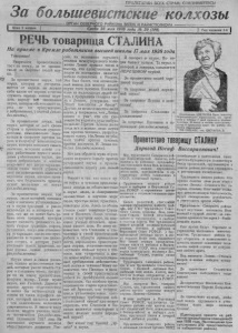 ПРОЛЕТАРИИ ВСЕХ СТРАН, СОЕДИНЯЙТЕСЬ! Ч ' З а больш евист ские к о л х о з ы - О Р Г А Н С Е В Е Р Н О Г О Р А Й К О М А В К П ( б ) И Р А Й И С П О Л К О М А , 1 Цена 5 к о п е е к С р е д а 2 5 м а я 1 9 3 8 г о д а Лг° 2 9 (199) Год издания 3-й | РЕЧЬ т о в а р и щ а СТАЛИНА На при ем е в К р е м л е р а б о т н и к о в высшей ш колы 17 м а я 1938 г о д а Товарищи! Разрешите провозгласить т о с т за науку, за ее процветание за здоровь е людей наук и . «у За процветание науки, той науки, которая не отгораживается от народа, не держит себя вдали от народа, а готова служить народу, готова пер едать народу вс* завоевания науки, которая обслуживает нар о д не п о принуждению, а добровольно , с охотой ( а п л о д и с м е нт ы ) . За процветание науки, той науки, которая не даёт своим старым и признанным р уководителям самодовольно замыкаться в скорлупу жрецов науки, в ск ор л упу монополистов науки, которая понимает смысл, значение, всесилие союза старых работников науки с молодыми работниками науки, ко- торая добровольн о н ох о т н о открывает все двери науки молодым силам нашей страны и дает нм возможность завоевать вершины науки, которая п р и з нает, что будущность принадлежит молодежи ог науки ( а п л о д и с м ент ы ) . За процветание науки, той науки, люди которой, понимая силу и значение установившихся в науке традиций и умело используя их в интересах науки, все же не хотят быть рабами эт и х традиций, которая имеет смелость, решимость л о мать старые традиции, нормы, устаноЕки, когда они становятся устарелыми, когда они превращаются в тормоз'для движ ения вперед, и которая умеет создавать нош,те традиции, н о вые нормы, новые установки (ап л о д и см ент ы ) . Наука знает в своем развитии немало мужественных людей, которые умели ломать ста* р ое и создавать новое, несмотря ни на какие препятствия, вопреки всему. Такие мужи науки, как Галилей. Дарвин и многое другие общеизвестны. сии, на основании научного анализа международного положения Ленин пришел тогда к выводу, что единственным выходом из положения является победа социализма в России . Это был б о л ее , чем неожиданный вывод для многих людей науки того времени. Плеханов, один из выдающихся людей науки, с презрением говорил тогда о Ленине, утверждая, что Ленин находится „в б р е д у “. Другие , не менее известны люди науки, у тсерждали, что „Ленин сошел с у м а “, что его следовало бы упрятать куда-нибудь подальше. Против Ленина выли тогда все п всякие люди науки как против человека, разрушающего науку. Но Ленин не у б о ялся пойти против течения, против косности. И Ленин п о бедил ( а пл о д и см ент ы ) . Нот вам о б р а з е ц мужа науки, смело ведущего б о р ь б у против устаревшей науки и проклад ы в а ю щ е г о д о р о гу для новой науки. Бывает и так, что новые пу- ги науки и техники прокладывают иногда не общеизвестные в науке люди, а совершенно неизвестные в научном мире люди, простые люди, практики, новаторы дела. Здесь за общим столом сидят товарищи Стаханов и Папанин. Люди, неизвестные в научном мире, не имеющие ученых степеней, практики своего дела. Но кому неизвестно, что Стаханов и стахановцы в своей практической работе, в области промышленности опрокинули сущ ествую щие нормы, установленные и з вестными людьми науки и т ех ники, как устаревшие и ввели новые нормы, соответствую щие требованиям действительной науки и техники? Кому неизвестно. что Папанин и папа- нннцы