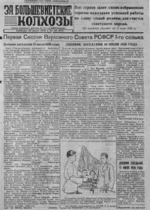 З А Б О Л Ь Ш Е В И С Т С К И Е К О Л Х О З Ы 23 июля 1938 г . №_40 (210) Первая Сессия Верховного Совета РСФСР 1-го созыва М О С К В А С е с с и я В е р х о в н о г о С о в е т а Р С Ф С Р депутату Е вд ок ии Степановне Г О В О Р У Х Е М ы , т р у д я щ и е с я с е л а С е в е р н о г о , с о б р а в ш и с ь н а | мно и г т о ин С г, о п в о е с т в а ящР е С н Фн ы С й Р , р с а б ч о у т в е с т п в е о р м во г й лу С б е о с к с о и й и р В а е д р о х с о т в и п р и в е т с т в у е м В а с , н ародны й и з б р а н н и к - Е В Д О К И Я С Т Е П А Н О В Н А . Мы у в е р е н ы в т о м , что Вы п олн остью о п р а в д а е т е д о в е р и е н а р о д а и б у д е т е д о к о н ц а п р е д а н ы д е л у п о б е д ы к о м м ун и зм а . Д а з д р а в с т в у е т 1-я С е с с и я В е р х о в н о г о С о в е т а Р С Ф С Р ! Д а з д р а в с т в у ю т и збран ни ки н а р о д а —д е п у т а т ы с о в е т с к о г о п а р л а м е н т а ! мо Д й а д з е д м р о а к в р с т а т в и у е ч т е с н к а о шй в пе м р и в р ы е й К д о е н п с у т т и а т т у , ц и т и в —о р р е о ц дн с о а й и любимый в о ж д ь и учит ель т о в а р и щ С Т А Л И Н ! С . С Е В Е Р Н О Е , Р А Й К О М У ВК П (б ) го р а П й е о р н е а д а м й о т й е п и л з а б м и е р н а н т ые л й я м пр с и е л ве а т . С е О з т е р н в о с г е о й и д в уш с е и пк ор О г и о з в н е С а т т м с а т е лв н ио у нв й а а т л . е а р а н б а о т С у е С с с е и с с и и и от б В о а л ш ь » е ш г е о в и и с м т е с н к и о й В е п л о и д г о т ов к ой у р о ж а я и п ог о ловным о хв а том к о л х о з н и к о в п о д п и с к о й на з а е м . Д е п у т а т В е р х о в н о г о С о в е т а Р С Ф Г С О Р В О Р У Х А . Дневник заседания 17 июля 1938 года ( О к о н ч а н и е . Н а ч а л о см- на 1 с т р . ) 81-й избирательный участок Н о в о сиби р ско го -О к - т я б р ь с к о г о избирательного округа (в поселке Бердск). Н а с н и м к е : избиратели колхозники - стахановцы колхоза имени Кирова в комнате отды ха. Д о к л ад чик с о о б щ а е т , что м ри а л н а дат в н с а е я к п о р м ед и с с т си ав я л п е р н о н в ы е е Центральной л н н ы о ы й е п к д о о о м к в у и ы м с б с е о и н р е т а й ым и и и з з в б б м и и В р р ат е а а т е р т р е е х л и л о ь ь в а д н п е ы у л т й ь а н т о С а с . о т в Ки е т р н е а з Р у С к л Фа ь жт С а д Р т о е го в у с д о т т а е т н а о т в о л в ено в , ч В г е о рх в о ы в б н о ы р й ы С д о е в п е у т д Р р е а С н т Ф ы ел С ь Р н н а ы п о м о сн о о к в в р с е е у м г и ам 7 в 27 п п о р л и н о зб в о и е м с ц о и о е т й в Р ет С с Фтв С и Р и и . с П о л К о о жн е с т н и и т е у м о в в е а в т н ы и Р й б С о Фра д С х л Р и в * . В Н е к р и а х к с о а с в и к н и р ы о х в й о а с н С н и о о я выборов ни п о одному из о к к и р х уг ж о а в ло н б е и им за е я е в т л с е я н . ий Н и к к а а к по избирательным округам , т р й ат к ел и ьн в о Цй ент к р о а м ль и н сс о и й и изб н и е имеется. л с в т я е а д И д в е н н н о т д н е е ы р п х е е у а с т н р а а ы в т к е о т в д е ц о р В и к и е л ф з р а у р х д ю ы о е т , в , н п н о р с а г и о г о С о в е т а Р С Ф С Р . Среди из т б к и а ра й н к н о н ы м ч х к м— о у в н 56 С и 8 т ст а ч о л л в и ен н о и с в к о В б г К е о с П п б ( а л б р о ) , в 1* л 59 яет б е с п п о а д р ти а й п н л ы од х ис —мен з т а ы я т н го о и в ч н . н а о Ш р м о а д д х а о у в р е к и р н и б —и о о л с ь о ш б в е е е в з т г и с р к с о а т с н к о о ст й и п д а е р л т у и Л и е , н о и е н г а о -С т п а р л е и д н ан а , о с с т л о е к в р д е с и п п о у б с т е т а с и т п о а б в р л - т о 3 и к 3 й а 9 н к ры о а х м б . м о В ч ун и чи и х , щв 19 е и 5 т х ск к о и р й е п с и т р н ь е я т д е н с л т , л а и в 1 и г 9 е т 3 н е ц л и е с й л и у . Н ж с о а а р ц о и д и ы из Р б о р с а с л и и й с к в о й сво Ф й ед В е е р р а х з ш н о и в а х н тн ы ы 
