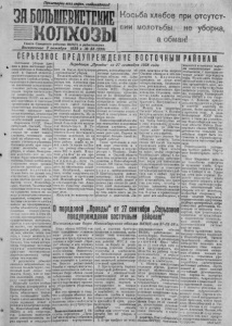 П рол ет арии в с е х стран, соединяйтесь/ ( аа е т а С е в е р н о г о р а й к о м а ВК П (б ) и р а й и сп о л к ом а Воск ре сен ье 2 окт я б р я 1938 г. М 5 5 (225) К о с ь б а х лебов при отсутствии молотьбы — не уборка, а обман! СЕРЬЕЗНОЕ ПРЕДУПРЕЖДЕНИЕ ВОСТОЧНЫМ РАЙОНАМ о ж н а о С я в ос в о т с о р о я я б н д е и н е е н в о о у в с б т о Н о р ч о к н в иыос х иб у р и р а р й о с к о й и Омской о бл а ст ях , внушает серьезную тревогу. Наступает глубокая осень, а ' а колхозах и с о в х о з а х далеко с н т е ве з н ак н о ы н е че р н а ы бо с т е ыль , с с о к з о д х а о л з а я с й ь у го гро к з о а ли п ч о е р ст ч в и а зн х а л ч е и б т а е . льн Н о и нН ыар е к п о а м р з т е и м йн С ы С е С и Р , со н в и ет м с е к с и т е организации не прониклись серьезностью положения и беспечно проходят мимо самых коренных, решающих с х в и о о бН з п я и а р й р р о с к с с т к о о в им в е й з н е т , н м е О о к й м у С щ с С к к е С и а й мР й п , , с а е н л ЧН и ь е о и с л в к . о я о бинский обкомы ВКП(б) уп ор но не хотят понять главного, основного: пока хлеб не обмолочен, он не может считаться убранным. с К т о в с и о и вица мо х л л о е т б ь а бы при от о о т с у н т е , у н б ая ор мка о , ло а ть о б б а м —ан р . о Н т ем н е а дл ч е т н о н у ж н о было ориентировать к о л х о з ы .У с п е х хле босда чи , сохранение всего у рож ая р н е и шзо а в е а т н с н я ой пра м ви о л л ь о но т ь б о о р г й а . Нужно бить по рукам т е х , кто считает, что косьба и вязка хлебов решает дело. с В к м и е й с , то Ом и ск т и ог й о , Че Н л о я в б о и с н и с б к и и р й областные комитеты партии по сущ е с т в у пошли на по воду у оппортунистических э ч л е е с м тв е о н м то с в к , с к н оз с ыин р е я г ю о т >л к е о С л а и и ничего не предпринимают, чтобы обмолотить урожай . Подобная ческая практ о и п к п а о р в т э у т н и и х ст бб и - л су ч д е а т р я с х т , в п е р н о н т ыи мвор и еч н а т щер а е я са г м о , привела к распространению на м ест ах , так называемой л о ж ч а е , е м р м , е о д а л н , т о с а с к м т о и -д с и е р м а м , б о о з ж т ат н : е о м с б н у а с д ч в е я а т в бш з о е я с н т д ы ь а с ч я с у т . з а Т а р е и мм н о н с л ы а о м т е ыьб м н у е в г и о од ск х н л р ы е е е п р и е м ы хозяйствования, присущие эк стенсивному с д к о о В р м ев у о р л з е ю е з м у ц л л и ь е о т д н а е н т л о е и м ю у . об с м и о б л и о р т л о ш о к и т а н и з н а л ы л е с н й я б х з е л а з е б д б р е о й ш с л т е е в н ж у н и юы т т м , , с п к м о о о д д га о мжд к е о м л . хо К з о н м о у го , ка с т к р н о е я , вр н а а рук у такая практика?! но М у о п л о о р т н ь о ба иг х н л о е р б и о р в у о е с т о с б я ен в Новосибирской о б л а с т и . З д е с ь обмолочено только треть ск ош енно го хлеба. С та в р ы о шв е з о е д р н н о о го вым х илл л и е о ж н а а т гек в р ч о е. звя Н з о и в и ос п и о б д и в р е с р к г и аюй тс о я б п к о о р м ВКП(б) и его секретарь тов. Ал е к се е в полностью н ре е д сут па о р т т в и е е т й ств и енн го о с с у т д ь арс п т е - Передовая „П р а в д ы“ за 2 7 сентября 1938 года вом за такую преступную . 0 рганиззцию“ уборки. б р ве и е л Б т р а а е с р к з к я д о е т го т я о о т м в е о у . л б , к ь А ч о н л т м о о е а с к т м с ь и о е л е е Н о в г т о а о ь в б п о с а р е с к — и и решающее звено уборки — была отодвинута на задний план . В машинно-трактор с ш н к ы е о х й д о в с б т у л а х а н с ц т т и и ы ях с и я м ч е Н е о т с в с л я о о с ж и б б н о и лы р ь х молотилок, которые давно необходимо было пустить на полную мощность. Но до сих пор из-за возмутительной т р е а л с е х й ля б б о а л н ь н шос и т н 