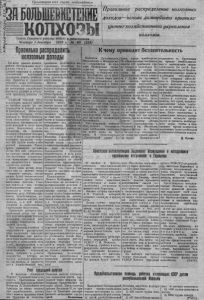 ч. л Л Пролетарии всех стран, соединяйтесь/ Г а з е т а С е в е р н о г о р а й к о м а ВКП (б) и райисп олком а Четверг 1 декабря 1938 г. № 6 8 (238) П р а в и л ь н о е р а с п р е д е л е н и е к о л х о з н ы х д о х о д о в — о сн о в а д ал ьн ейш е го о ргани за ц и о н н о ' х о з я й с т в е н н о г о у к р е п л е н и я к о л х о з о в . Правильно распределить колхозные доходы С о всех концов нашего района беспреры вно и д у т ! р а д о с т н ы е вести: ( урожай выращен и собран прекрасный , колхозный трудодень дорог, поЛноце-, иен. Приятно и радостно слышать такие сообщения, разговоры, вдохновляющие на завоевание сталинского в д щ ы у е - с м ок т о р г и о д у ц р ат о ь ж а д я ев и ят в ом буд го у Упорный годсвой тр уд колхозника нашего района л н а е чи п в р а о е ш т е с л я д в ар п о о млн : ой он ме о р п е . В Биазинском, Мало-Кара гаевском, Остяцком , О ста - нинском и Ново-Елизарав- ском сельсоветах каждый л т г х р ь р о к а з у о а м д р о м т н д . е а е л т н и у К ь р о о л о й х ц о е в з н н и Юи в ц а - а 1 е 2 тся с к е и л т л о ь оим. Демьяна Бедного—Филикия Кандра- т б ч ь о и е т т в а а н 52 н в 5 ые э п т у о т д мр о у в д го о х д д л у н е и б и а а в п и ыо 6 л р 0 у а 0 рублей деньгами. Таких ярких примеров не одна с н о о тн г я о . во В р с я е т о л н и и шь уб о е б ди од т н ел ом ь, с е ч т т т ь о , в к н к о е о л и р х м е о н о зн в я е е а р т я н ся о з в а в ж о и к з т а р о жа ч с д н т о а о е хозяйство прочно . ляе В т еег н о ас од о и т н н м о е в с о я г ц о о г т о д д е а —первого января, когда нужно будет окончательно и правильно распределить к н о ое лх с о е з й н ч ы а е с в д о х т о о д м и , . ч Г т л о а б вы по-большевистски товиться к этому в п е о с д ь г м о а важному д е л у . Работа серь езная, ответственная, ее нельзя сделать н асп ех , как -н ибудь , а к ней нужна упорная и повседневная, тщательная подготовка . Правильно распределить колхозный доход это зна чит укрепить мощь колхоза у ц к и р п е л п и и н т у ь , сп т а р я у н д н о о в с у т юь в д с и е с х членов артели. Что является главным в подготовке к нию колхозных рас д п о р х е о д д е о л в е ? Вн р и д т о б ь в л а и п т жл ь а а н й и шх о л и б е е мбо о д с л н д о и а т ч и и т в , ь з ы а п в с о е к с л и ь х с к ыа л ч п е е а б с т , т , ь в п е р н с о н о т ыр р й т и о е в р о о й в с а е т в м ь ы е с н и о н к з о о а й фонд, со бра ть и учесть имущество, которое во мно но г г д и е х по к п о а л л х о о , за и х р п а р з и б в р е о с с т а и его в хозяйственный вид, К чему приводит бездеятельность т х п о у р д р а ы в ал ил ь и н ьныт о р е у , д п о д о д е д нн с е и ч жи н т к ыа а т же ь до д н г о а о колхозника—вот те задачи, за которые нужно бороться всем руководителям, всем колхозникам. Многие руководители таким вопросом занимаются исключительно п л ох о . В колхозе им. Кагановича ( м Н о о л в о о ч - е Т н р о ои б ц о к л ) ьш е е ще дв н у е хс о о б т с г ыек п т а а н р о п ос в е с в е а г , о а с 1 е 2 м5 ян ц е з н а . вместо плана 927 цен. Там безобразно поставлен уч е т продуктов. П о кладовой оказался н б а ол 1 е 2 в 00 и ц к е л н а н . д е о д С в о ч щ с е т и т а о к т в о Ч о к у д в з а С е е о р в объясняют это у с у ш к о й . Председат ель Буглеев на н вс о е Р . е э в т к о ом см и о сс т и р я ит ко р л а х в о н з о а ду и ш м . Максима Гор ь к ог о , Ф едо в р е о р в к с о к й ого уч с е е т л а ьсо т в р ет уд а, од п н р е о й и инвентаризацией имущест ва ещ е не за и м а л а с ь . Председатель Ш ев ел ев бездействует. А ведь роль ревкомчссии очень велика. Самоустранился от своей обязанности пре