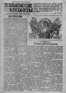 Пролетарии всех стран, соединяйтесь/ ЗАБОЛЬШИНЕИЖ КОЛХОЗЫ Га з е т а С е в е р н о г о р а й к о м а ВКП (б) и райисполкома П онедельник 5 д ек а б р я 1938 г. № 69 В результ ат е пройденного пути борьбы и лиш ений прият но и радост н о иметь свою Конст ит уцию , т ракт ую щ ую о п л о д а х н аш и х побед. П рият но и р а достно знать, за что бились наши лю ди и к а к они добились всем ирно-ист орической победы . Прият но и радостно знат ь, что к р о в ь , обильно пролит ая наш и ми л ю д ьм и , не п р ош л а д а р о м , что она дала свои результ ат ы . - | • *■ '• (И . С Т А Л И Н ) . (239) ДЕНЬ КОНСТИТУЦИ Два годя вазад—б дека - бн ры * й | К V * II « I В г с о е д с а о —юз Ч н о<ы ‘ 3й 1ыС ч ‘ е а з й д .Советов принял новую К тнституцчю С у ч и С С Р Мна н ц о и г о о н м а и л л ь лн иы о й нный со , ве Мтс н к о и го й н род. назвал Конституцию Сталин ской , по имени ее в я >хносителя и творца— Л Ч»бИМОго вождя дящ их ся . День принятия Кон т ст р и у т но у ^ ц ии о —тм б еч Д а е е к т а с б я р я —на е р ж од ег а о м д и д С н - С и С к Р ст к р а а к нырадо п с о т б н е ыди й вшпр е а г з о со ц и ал и зм а . Сталинская Конституция закрепила великие права г го ра г ж о д с а у н д а р со с ц т в и а а : лис п т ри а ч в е о ск ыо а т во р у н д а , п о р б а р во азо н в а ан о и т е д , ых п , р п а р в а о на обеспечение в старости , а т л к ж е - в случае болезни и потери трудоспособности. Женщина в С С С Р имеет равные права с мужчиной во всех областях ственной, государстве х н о н зя о й й , культурной н общественно д - о н п а н е о н з а л а е л и в ь т и н и С с о и ч с С е м т С с и о к Р о и й о р р ж т а а в и с н з ыи н о х . п и р . а Г н в р а н а ц ыж иНи одна страна в мире кроме нашей не имеет такой демократической Конституция . Только у нас, в т щ и е е ч с д е т и с в к н у о с е м т т ве г п н о о н с д о у л м д и а н р н с с а о т я ц в и е а , р л а с и б у с о че-крестьянская демокра ти Д я. ва года прожила наша страна под знаменем Ста линской Конституции. ш шни и и З х т н а е с л с т э т ь в т р н е и а о н й дв к а а с п н г и о о в т д а а а л с и в ст р и б а ч з о р е л с у ьз в з и и аю л с. с т я К з а х а п о и з в я т о й а р л с о т и т с в с а и е т л н ы с о н в йы о и в й х ы р к п а и к р з д р е р иы д а приятий жеников, ми п л о л п и о о л н ны яющтр и у х ряды б е з р а б о т н ы х . С каж дым днем все больше и больше разоряются новые слои т р у д о в о г о крестьян- С1 вч. ло В д. ми Р р а е ст е н т ищ ни е щ ты е , та сл и ез го н человеческой эксплоата- Ции как неприступный утес т в д р л ы ыо и д м с в о и ым т г м с . о я д Н о а С в мш С , а с С с в с Р о т к б р а с о ж а д н д е н а ы г ы о м с й с к ч а м н а ж е с а с н т я в о ц е в н е и н м т е с , е я с , б к к о а у г ж а л д ч ь ые т , м у р д нм н е о е е г м . ущ с Н т е е а с прерывно поднимается с щ б я л е Н а н С г а и о и С е с б м С о о с Р л т . е о в е я н ж и я е и р з к н и т ь р м у дя во щ п и л х о новой Сталинской Конституции были выборы в Верховный Совет С С С Р , в Верховные н С о о м ве н т ыы х со р юе с з п н у ы б х л и к и . а О вт н о и .прошли как мощная демон страция морально полити ческого единства совет с к о г о народа, мощная де монстрацня великой друж бы народов С С С Р . Сталин ский блок коммунистов И беспартийны х одержал на^ выборах блестящую победу. Советский народ показал, что он един в своем стремлении укреп лять свое го су д ар ст в о , д в и г а т ь его по славному пути к коммунизму. че Н ск а о х м одя о сь кр в уж к е а н п и и и т , ал ни а стш и е социалистическое государ т с в т е а в р ет о есыим н у т ж е е в р с с е т е с