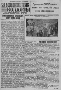 З А Б О Л Ы И В И СТ СК И Е К О Л Х О З Ы 71 (241) Быстрее завершить хл ебо сдачу Счастливо и ра д ост н о встретил весь с о в е т ски й л л н и и ар к ст о о и д й ч X е О с X к к I т о я й г б о р д ь о с в р к щ е о в й и о н л у с юо ц ц В и и и е а . мМ е и н л о л в и а о л н и ы т с р в у о д й ящи н х а с р я од о н з ына й т п е р л а ь з н д ыни м к и п н о о б в е ы д м ами и з в а о м в е с ч е а х с о т б в л а а .П ст р я е х до н к а т р я о б д р н ь о с г к о ое хо со зя р й е- с ж р н в к н и у а и е г о я х в х а у и о н б з з д е о а я о р д й р с к а с р а и ч т з о - в в э ч в е т е н н ыо р о н с н е о о у - к л п з о в о о а г ы с л о в ь и п е о р т у в л ишр о н ч о е к е е ние плана хлебосдачи. В нашем районе десятки к ли олх э о т з у ов з а с д а ч ч ес у т , ью по р л а н з о р с е т ш ь ию выполнили обязательства перед государством , сдав на элеваторы первоклассное зерН н о о. выполнение плана по району далеко не закончено, годовой план выполнен на 5-ХН-38 года на 55,9 проц. Мз к а и н ц , о и г к и и о , е м к с п о о а мм р м о т у и л н й ь и ц н с ы ы т е , ы сов о о е д р т и г с а н к н о и и ч е работники за последние дни не только не усилили, м а а н ни ао е бор к от, хл о е с б л о аб п и о л с т и а в к в а н ми . О дн т и д е ел 2 ьн п ыят е и к д о н л е х в о к з и ы з н а е п с о д с а л л е и ни одного килограмма хлеба т ню о е т ры с о м б й о м т о р л л я е о жч н е и а н т н т ы о в й , ч х а т л о м е б б а , и р м к а о х е . Колхозы: „1-е мая“ Чеб аковского с - с , имени Фрунзе, . Б о р ь б а за пятилетку“ , „Память Куйбы шеяа* и другие. Е щ е х у ж е о б е с п е ч и л и хлебосдачу по единоличному с е к т о р у л н х н а о е з К н 5 а о о х е ч - и г н т д с а о л е ш л о е в ь г п к о о о о т с р р н т а а а а й й ю о 2 о н 6щ н , а 5 и у х н п в а р ы к ч о о п и ц л онают оживать вреднейшие иждивенческие настроения, надежды на отсрочки и на скидки по хлебопоставкам и на натуроплату, такого рода настроения должны получить решительный отпор . Надо немедленно и решительно пресечь о б П к н о и л у с е а д н а п ч о н у п а . ы ту т р ки оп з л а а т т я ы нут п ь о р х в л а ся й е идёт исключительно медленно, директора М Т С фактически самоустранились от взимания натх'роуплаты, о н н ы и е н п а р б е л д ю с д е а д юате , ли как ко о л т х д о е з л о ь в срывают молотьбу хлебов и не сдают хлеба под тем предлогом, что нет намоло ченного хлеба. Работники из шикно-тракторной станции не должны забывать, что они в первую о ч е р е д ь о т в е ч а ю т п е р е д г о с у д а р с т в о м за своевременное поступление натуроплаты, что их роль не ограничивается только вручением счетов колхозам, заключается в повседневной борьбе за выполнение плана. Нп сд е и а т ч ь о и д , но з н а г а о т г я у д ги н р в о я а п н н л и а е я л ты ьз , я хл т е в е б о р о з врат государственных с с у д . Наши колхозы имеют все возможности для т о г е , чтобы быстро двинуть ВЬЬ , рсд хлебосдачу . Вс« д е л о ! в большевистской органнза п ц о и р н ти п р о о д в р к а и бот з к е и р н а и , п т е р р а е н к с - д лючкть необходимо всю} шоб у щю ес с т и в л е у нн п о у с с т т ь и , т р ь ту я бо х л о ь д с таким расчетом, чтобы в ближайшие дни закончить хлебосдачу . Развернуть Стаханов-кое движение т а к , чтобы ко дню стахановца и ударяй г к а а ни 1 зо я в н а в т а ь ря н 1 о 9 в 3 у 9 ю года вол о н р у социалистического сорев новзния, умножить ряды стахановцев и ударников, выполнить квартальные и годовые производственные мпл у а х н о ы з . я Пйс о т д в г е о н т н о о в мка у к г о н д о у в —о вот достойная в с т р е ч а праздника стахан
