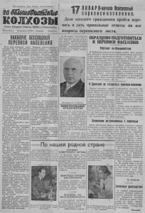 П ролетарии всех стран, соединяйтесь! шШтсе8итскЫ Г азета Северного Райкома ВКП(б) и Райисполкома Лз 3 ( ‘246)| 13 января 1939 г., четверг IЦена 8 к. ИНВАРЯ-начало Всесоюзна переписи населения. Д о л г к а ж д о г о г р а ж д а н и н а пройти перепись и д а т ь правильны е о т в е т ы на все в о п р о сы п ер епи сного л и с т а . НАКАНУНЕ ВСЕСОЮЗНОЙ ПЕРЕПИСИ НАСЕЛЕНИИ В с е г о л и шь н е с к о л ь к о дней о т д е л я ю т нас о т В с е с о ю з н о й п е р е п и с и н а с е л е н и я , к о т ор а я б у д е т п р о в е д е н а в г о р о д с к и х п о с е л е н и я х с 17 по 23 я нваря 1939 г о д а и в с е л ь с к и х — с 17 по 26 я нв ар я . Э т о о бя з ыз а& т в с е п а р т и й ные и с о в е т с к и е о р г а н и з а ц и и е ще б о л е е а к т и в н о з а н я т ь с я в о пр о с а м и п о д г о т о в к и и п р о в е д е н и я п е р е п и с и . О с н о в н о й з а д а ч е й п е р е п и с и я в л я е т с я т о ч н ы й у ч е т г ра жда н с т р а ны с о ц и а л и з ма . Но п е р е п и с ь д а с т не т о л ь к о т о ч ны е д а н н ы е о ч и с л е н н о с т и н а с е л е н и я С С С Р . О н а о т р а з и т в е л и ч е с т в е н ны е в с е м и р н о - и с т о р и ч е с к и е п о б е д ы с о ц и а л и з м а в нашей с т р а н е . В и т ог о вых м а т е р и а л а х п е р е п и с и , как в з е р к а л е , о т р а з и т с я с ч а с т л и в а я ж и з н ь , к о т о р у ю з а в о е в а л со- ! е т с к и й н а р о д п о д р у к о в о д с т вом п а р т и и Л е н и н а - С т а л и н а . Д а н н ы е п е р е п и с и н е о б х о д и мы д ля еще б о л е е у с п е ш н о го п л а н и р о в а н и я р а б о т ы нашей п р о мыш л е н н о с т и , т р а н с п о р т а и с о ц и а л и с т и ч е с к о г о з емле де лия , для о б с л у ж и в а н и я н а с е л е н и я шко лами , к у л ь т у р н ы м и и м е д и ц и н с к и м и у ч р е ж д е н и я м и , для ж и л и щ н о г о с т р о и т е л ь с т в а , для с о с т а в л е н и я р а с ч е т о в по с н а б ж е н ию н а с е л е н и я , р а з ме щ е н и я и р а з в и т и я т о р г о в о й с е т и , о р г а н и з а ц и и л ю д с к и х и т о в а р н ы х п е р е в о з о к и т. д. Д а н н ы е п е р е п и с и н е о б х о д и мы т а к ж е пр и а д м и н и с т р а т и в н о м р а й о н и р о в а н и и р е с п у б лик, к р а е в , о б л а с т е й , р ай о н о в и с е л ь с о в е т о в . Ка к и д е т п о д г о т о в к а к п е р е пи с и на м е с т а х ? П о в с е м е с т н о для п р о в е д е н и я п е р е п и с и в ыде л е ны к в а л и фи ц и р о в а н н ы е , п р о в е р е н н ы е ь п о л и т и ч е с к о м и д е л о в о м о т н о шении к а д р ы , а к т и в и с т ы и з б и р а т е л ь н ы х к а мп а н и й по в ы б о рам в В е р х о в н ы е С о в е т ы С о ю з а С С Р , с о ю з н ы х и а в т о н о мн ых р е с п у б л и к , у ч а с т н и к и пр ошлых п е р е п и с е й н а с е л е н и я . О д н а к о не в с е м е с т н ы е п а р т и й н ы е и с о в е т с к и е о р г а н и з а ции по н а с т о я щ е м у поиялг з н а ч е н и е п р е д с т о я щ е й пе ре пи си. К о е - г д е п о д г о т о в л е н н ы е для п е р е п и с и к а д р ы у ж е о т з ы в а ю т с я с р а б о т ы. Но в ы е п о х о з я й с т в е н н ы е к н и ги в р я д е м е с т в е д у т с я к р а йн е н е р яшл и в о . П р о п у с к а ю т с я ц е лые х о з я й с т в а , о т д е л ь н ы е ч л е ны х о з я й с т в а и т. д.; в похо- х о з я й с т в е н н ы е к н и г и час то ие з а п и с ы в а ю т с я р а б о ч и е и с л у ж а щи е п р е д п р и я т и й , р а с п о л о ж е н н ы х на т е р р и т о р и и с е л ь с о вет ов ; п р о п у с к а ю т с я х о з я й с т в а д е т д о мо в , б о л ь н и ц , домо в о т д ы х а и т. д. В с е э т и н е д о с т а т к и надо у с т р а н и т ь к а к мо ж н о с к о р е е . В э т о м б о л ь ш у ю п о м о щь м о ж е т о к а з а т ь с амо н а с е л е н и е . На д о ш и р о к о р а з в е р н у т ь а г и т а ц и о н н о - м а с с о в у ю р а б о т у с р е д и н а с е л е н и я