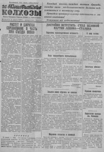 П р о л е т а р и и всех стр а н , соединяйтесь! зв Ш ш ё&ит яйм Г Г а з е т а С е в е р н о г о Райкома B ï î l I ( G ) н Райисполкома г., воскресенье J ЦЕПА 8 к РАСТЕТ И ШИРИТСЯ СОЕРВНОИВЕАНВ ЧЕСТЬ- XVII СЪЕЗДА В нашей стране издавна ус тановнлась славная традиция— встречать каждое крупное политическое событие, каждое торжество в жизни народа производственными победами, проявлениями трудового героизма, трудовой доблести. X V I I I с’езд великой партии Ленина— (л а л и н а — событие огромного исторического значе ния. И немедленным откликом иа это событие, на это веема родное торжество было провозглашение всесоюзного соревнования в честь X V I I I с'ез- да ВКП(б) В цехах заводов и ф абрик,в колхозах, в железнодорожных депо, на электростанциях, на лесозаготовках, в советских учреждениях, в частях и под- | разделениях Красной Армии и г Военно-Морского Флота— всю ду широко развертывается массовое социалистическое соревнование на право рапортовать съезду о новых произвол ственных победах. Коллектив рабочих, служ а щих и инженерно-технических работников Магнитогорского металлургического комбината имени Сталина вызвал на соре внованне всех металлургов СССР. Завод обязуется работать на полную свою мощность. К этому же он призывает металлургов всего С о ю за. Иа первой Московской электростанции ЛИ имени Смидонн- ча соревнование развернулось между цехами, а внутри цехов между бригадами. Лозунги соревнования: работать ’ без аварий и неполадок! Работать точно, как часы! Работники станции обязуются привести в образцовый порядок оборудование, снизить расход топлива на 1 процент и расход энергии на собственные нужды— на 2 процента. Торговые работники Ленинграда объявили соревнование в честь X V I I I с езда партии на выполнение плана товарооборота, на образцовое обслуживание покупателей. Общее собрание Академии наук С С С Р приняло обращение ко всем научным работникам, ко всей советской интел- лигенции, ко всем рабочим и колхозникам Советского С о ю за, в котором заявляет, что н а учный коллектив Академии отдаст все свои творчсскиеси- лы успешному разрешению важнейших народнохозяйственных задач и будет стремится к тому, чтобы конкретные результаты научных работ быстро внедрялись в народное хозяйство. Рабочий коллектив прядильной фабрики „Красная Талка" в Иванове, вызывая на соревнование всех текстильщиков ооласти, обязался досрочно выполнить план первого к ва р тала н дать стране сверх плана 65 тонн чистосортной пряжи организовать три сквозных стахановских бригады имени X V I I I с ’езда ВКП (б ) и снизить себестоимость продукции не менее чем на 2 процента сверх плана. На судах Амурской флотилии началось соревнование между командами на почетное право нести в день открытия X V I I I с'езда боевую сталинскую вахту. На боевых кораблях Черноморского и Балтийского флотов краснофлотцы готовятся встретить партийный с езд отличными показателями боевой, политической подготовки. В Белорусском, Киевском и других военных округах та к же началось соревнование на л учш ую боевую и политическ ую подготовку бойцов. Большой производственный под’ем царит среди железнодорожников. Коллективы отдельных дорог соревнуются между собой на выполнение и пере выполнение плана перевозок, лучшее использование подвнж ного состава, образцовое состояние станции и депо—Машинис- ты-кривонос