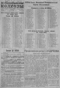 ХУШ-й С ъ е з д Всесоюзной Коммунистической Партии (бол ьш еви ков ) Кандидаты в члены ЦК ВКП(б) п р о л е т а р и и вс ех с т р а н , с о е д и н я йт е с ь ! Г а з е т а С е в е р н о г о Райкома В К П ( б ) и Р а й и сп о л к ом а № , ! ! (264) П я т н и ц а 21 а п р е л я , 1 9 3 9 года. Ц е н а 8 к о п . Состав Центрального Комитета В Т О ) , избранного XVIIIСъездом ВХП(б) Члены ЦК ВКП(б) 1. А н д р е е в А . А . 2 . А н д р и . ш о в В . М . 3 . А н ц е л о в и ч Н . М . 4 . Б з г и р о в М . Д . 5 . Б а д а е в А . К . 6. Венедиктов И. А. 7 . Б е р и и Л . П . 8 . Б о р к о в Г . А . 9 . Б у д е н н ы й ( J . М . 1 0 . Б у л г а н и н И . А . 1 1 . Б у р м и с т е н и о М . А . 1 2 . В а н н и к о в Б . Л . 1 3 . В а х р у ш е в В . В . 1 4 . В о з н е с е н с к и й Н . А . 1 5 . В о р о ш и л о в К . Е . 1 6 . В ы ш и н с к и й А . Я . 1 7 . Д в и н с к и й Б . А . 1 8 . Д о н с к о й В . А . 1 9 . Е ф р е м о в А . И . 2 0 . Ж д а н о в А . А . 2 1 . З а д и о н ч е н к о С . Б . 2 2 . З а х а р о в С . Е . *2:1. З в е р е в А . Г . 2 4 . З е м л я ч к а Р . С . 2 5 . К а г а н о в и ч Л . М . 2 6 . К а г а н о в и ч М . М . 2 7 . К а л и н и н М . И . 2 8 . К о р н и е ц Л . Р . 2 9 . К о р о т ч е н к о Д . С . 3 0 . К о с ы г и н А . Н . 3 1 . К у з н е ц о в А . А . 3 2 . К у з н е ц о в Н . Г . 3 3 . К у л и к Г . И . 3 4 . Л и т в и н о в М . М . с о . Л и х а ч е в И . А . 3 6 . Л о з о в с к и й С . А . 3 7 . Л ю б а в и н П . М . 3 8 . М а л е н к о в Г . М . 3 9 . М а л ы ш е в В . А . 4 0 . М а н у и л ь с к и й Д . 3 . 4 1 . М е р к у л о в В . Н . 4 2 . М е р к у л о в Ф . А . 4 3 . М е х л и с Л . 3 . 4 4 . М и к о я н А . И . 4 5 . М и т и н М . Б . 4 6 . М и х а й л о в Н . А . 4 7 . М о л о т о в В . М . 4 8 . Н и к и т и н В . Д . 4 9 . Н и к о л а е в а К . И . 5 0 . П е г о в Н . М . 5 1 . П е р в у х и н М . Г . 5 2 . П о н о м а р е н к о П . К . 5 3 . П о с к р е б ы ш е в А Н . 5 4 . П о с п е л о в П . Н , 5 5 . П о т е м к и н В . П . 5 6 . Р о г о в И . В . 5 7 . С е д и н И . К . 5 8 . С к в о р ц о в Н . А . 5 9 . С т а л и н И . В . 1‘ 6 0 . Т е в о с н н И . Т . | 6 1 . Т и м о ш е н к о С . К . 6 2 . Ф а д е е в А . А . 6 3 . Х р у щ е в Н . С . 6 4 . Ш а х у р и н А И . 6 5 . Ш в е р н и к Н . М . 6 6 . Ш к и р я т о в М . Ф . 6 7 . Ш т е р н Г . М . 6 8 . Щ а д е н к о Е . А . 6 9 . Щ е р б а к о в А . С . 7 0 . Ю с у п о в У . 7 1 . Я р о с л а в с к и й Е м . 1 . А л е м а с о в А . М . 2 . А н т о н о в Д . И . 3 . А р у т и н о в Г . А . 4 . Б а г а е в С . И . 5 . Б а к р а д з е В . М . 6 . Б и р ю к о в Н . И . 7 . Б о й ц о в И . П . 8 . В е й н б е р г Г . Д . 9 . В л а с о в И . А . 1 0 . Г в и ш и а н и М . М . П . Г о г л и д з е С . А . 1 2 . Г о р к и н А . Ф . 1 3 . Г р о м о в Г . П . 1 4 . Г у с а р о в Н . И , 1 5 . Д е к а н о з о в В . Г . 1 6 . Д е н и с о в М . Ф . 1 7 . Д о р о н и н I I . И . 1 8 . Д у б р о в с к и й А . А . 1 9 . Ж а в о р о н к о в В . Г . 2 0 . Ж е м ч у ж и н а П . С . 2 1 . Ж у р а в л е в В . П . 2 2 . З о т о в В . П , 2 3 . И г н а т о в Н . Г . 1. А б д у р а х м а н о в А . 2 . А н д р и е н к о А . А . 3 . А н о ш и н И . С . 4 . Б о й ц о в В И . 5 . Б у л а т о в В . С . 6 . В . ч г о в А . В . 7 . В л а д и м и р с к и й М . Ф . 8 . В о л к о в А . А . 9 . Г р е к о в а Н . Г . 1 0 . Д е н и с е н к о В . М . 1 1 . Д у к е л ь с к и й С . С . 1 2 . И г н а т ь е в С . Д . I 1 3 . И з о т о в Н . А . 1 4 . К а б а н о в А . Ф . 1 5 . К и н у н н и к о в М . Я . 1 6 . К в а с о в М . Е . 1 7 . К и с е л е в В . А . 2 4 . И г н а т ь е в С П . 2 5 И с к а н д е р о в А . Б . 2 6 . К а р т а ш е в К . К . 2 7 . К а ф т а н о в С . В . 2 8 . К а ч а л и н К . И . 2 9 . К о б у л о в Б . 3 . 3 0 . К о в а л е в М . П . 3 1 . К о л ы б а н о в А . Г . 3 2 . К о м а р о в I I . Т . 3 3 К о н е в И . С . 3 4 . К р у г л о в С . Н . 3 5 . К у л а к о в П . X . 3 6 . Л о к т и о н о в А . Д . 3 7 . М а к а р о в И . Г . 3 8 . М а с л е н н и к о в И . И . 3 9 . М е р е ц к о в К . А . 4 0 . Н е в е ж и н Н . И . 4 1 . Н и к и ш е в И . Ф . 4 2 . П а в л о в Д . Г . 4 3 . П а л ь ц е в Г . Н . 4 * . П а т о л и ч с в Н . С . 4 5 . П о п к о в П . С . 4 6 . П о п о в Г . М . 18. К и с е л е в К . В . 1 9 . К р и в о н о с П . Ф . 2 0 . К у д р я в ц е в А . В . 2 1 . К у з н е ц о в И . А . 2 2 . К у з н е ц о в Ф . Ф . 2 3 . К у л и е в Т . И . 2 4 . К у л 