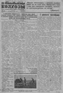 2 З А Б О Л Ь Ш Е В И С Т С К И Е К О Л Х О З Ы N i 23 Дорожить каждым часом Большинство колхозов нашего рай она у ж е нееколько дней начали в с п а ш к у .К о л х о з ы Б п а зи нс ко го сель совета в полной мере развернули полевые работы. Сельхо зартель нм. К а р л а М а р к са 22 апреля в с п а х а л а 2 4 г а , 2 3 — 3 0 . 4 3 г е к т а р а . Колхоз нм. Ворошилова 2 2 - го в с па ха л 1 8 , 3 0 г е к т а р а , а 2 3 - го на 1 8 п л у г а х — 1 9 , 9 4 г а . Отдельные к о л х о з н и к и - п а х а р я пок а зы в аю т вы сокие образцы в р а боте. Т а к . например, Р я за п ц е в К. в ы п а х и в а е т в день однолемешным п л у г о м на паре лошадей 1 , 8 4 г е к т а р а , Маляреви ч Ф , — 1 , 7 4 , Т рено в И . — 1 , 5 2 г е к т а р а . В колхозе «Единый п у т ь » п а х о т а на полном ходу. Н а 18 п л у г а х вырабатывают на в с п а ш ке по 18 г а , а п а х а р я т о в . С и доров 2 3 апреля дал 1 , 3 0 га. К у л т ы г и н К — 1 , 2 4 г а . Т а к и х п ок азателей немало. Однако, в целом по району ход пос евных работ в н уш а е т , что исключительно медленно разверн у т ы полевые работы. Несмотря иа то , что погода у с т а н о в и л а с ь хо р ош а я , председатели колх озов , сельсоветов, уполномоченные р ай кома и ра йисп олко ма заняли пол и т и к у вы жидательства , все еще р а с к а ч и в а ю т с я , у п у с к а я д рагоценные дни. На 2 1 апр ел я полови на колхозов О с т я ц к о ю сельсовета п о п р и с т у п и ла к ве сн овспашке. Пред сед ат ель сельсовета то в . Перескоков, у по л ном оченный рай кома и PH К а то в. К а р г а п о л о в , очевидво, с ч и т а ю т ато нормальным. Они вместо т о г о , чтобы орг анизовать больш е в и с т с к у ю работу в к о л х о за х , о т с и ж и в а ю т с я в сельсовете и вообще вы ходят на работу в 1 0 часов у т р а . Прибелннские колхозы на 2 4 а п р е л я еще не при ступ и ли к в е с н о в с п а ш к е , тогда к а к в смежном Потюкановском сельсовете давно п а ш у т . В Ч ув аш н н ском сельсовет е ру ководители ( Д и м ит р и сн ко , Л е с н и ко в ) заняли выжидатедь- с к о ю позицию, в то время когда Агеев все еще р ас суж дае т , что грязно, сыро и т . п . Надо в п у х и п р а х разбить выж идательс кую позицию, т а к вазьишемые сыры е и мерзлые настроения, которые ведут к зат я ж к е и срыву с ж а т ы х сроков весеннего сева. Нельзя д ож и д а т ь с я то го ,когда поднимется пыль. Надо немедля пн одного дня, по ст ахан ов ски организовать в е с но в с па ш к у п вместе с тем сев яровых к ул ь т у р . Первые дни нолевых работ г о ворят и о том, что производительность тр уда очень низ к ая в н е которых колхозах. Т а к , в колхозе им. Стали на па 12 п л у г а х 2 3 апр ел я вспа хали то лько 8 г а . В сельхозартели «Смерть к а п и т а л у » 11 г е к т а р в с п а х и в аю т на ¿С п л у г а х . В О с т а н и н с к п х колхозах работа по-боево.чу не ор ганизо вана. С е к р е т а р ь сельсовета то в . Р юм- к н п сообщает, что председатель сельс овета Алексан дров и и н с т р у к т о р райкома , он ж е у п о л н о моченный , 2 4 апреля только к 11 ча сам дня собрались вы езжа ть в колхоз «Красный В а с ю г а н е ц » , а до этого с пади . Т а к а я бе сп е ч ность недопустима. Недопустимо п то . что в сельсоветах о т с у т с т в у е т о п е р а т и в ны й ежедневный у ч е т полевых работ. В том же О с т я ц к о м сельсовете нз з н л ю р, ч т о * д е л а е т ся даже г. колхозе «К р а е в а я звезда», который н а х о д и тс я под боком сельсовета. В нолевых с т а н а х с е й ч а с необходимо р азвернуть среди колхозников широкую массово-полит и ч е с к у ю работу, и з у ч а я м а т е риалы X V I I I - г о партийного с'е з- да , и на основе 
