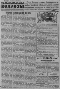 Ьролетарии всех стран, соединяйтесь! ыШ тШ етсйие К О Л Х О З Ы Г а з е т а С е в е р н о г о Райкома В К П ( б ) и Рай и спол ком а 2 8 ( 1 ? 1 ) | 1 ‘3 М А Я Ш < 9 г<к)а, пятница | Ц е н а 8 к о п . Сеять быстрее и л у чш е . Организовать р а б от у тракторного парк а так, чтобы каждая машина р а б о т а л а д в е полные смены. Сочетать использование т р а кт о р о в и конной тяги. П р о я в л я т ь м а к с и м ум з а б о т ы и внимания к к а д р а м . __________________________ ____________________________ „ П р а в д а “______ $ ПОВЫСИМ (П ер ед ова я Весенний сев 1939 года имеет особое значение. Но программе, р ми аз т р ет а о б м отан ВК н Н о ( й б) Цент и рал с ь о н в ы е м тс К к о и м л п и р с а т в и и ч те ес л к ь о с г т о во з м е , мл р д а е б ел от и н я ик ш и и с р о о ц к и и а м фроитом ведут наступление на засуху, борются за получение высоких п устойчивых урожаев при любых метеорологических условиях. дим Мы ы м р д а л с я пол т а о га го ем , в ч с т е о м бы не в о е б с х т о и с м е у л , ьс н ко е е за х в оз ис я е й т с ь тво от но к к у а л п ьт ри у з р о н в о и случайностей природы. Наше земледелие—самое крупное, самое о л р р е о г т в н а ан н и и но й зо о е в п а в ы нн м т о в и е е р д , е е . с н а Н и м я а о к е к оп о л л м е ле н ех к а м ти н н и в о з н г о о и х н г х о а ы о н х е з о о н в з к а ц я а я е й и д в с р н т ы т - в е а к л , о л л и в м х г ы е о е р х з н а н а ц щ н и и и е к я з н о , а а в з т , а о н м р о е о в ч в а а , я те к л с о т ь л а смелых новаторов и мастеров рекордных у в н р ы ес о е т ж и а с е и в в л . ы дв . Н и а ж до ени л е иш в ь се ум эт ел и о о гр п о р м ик н а ы к х О их п р ы ай б т о о н л а н ьш х ос и е с в х т п р ы ан у х ы сп р е а п б х о о мо к т азы в м в о а ж ю е н т ж о , д ц з и о о в с и т а и н л и г ю и н д ут е м й ь а п те и р р и п и р а а у л в м и ь е н л ло о ь т н й е о х о н м и р и ч га е с н п с о и к л и з ь а х ресурсов. Никогда еще так быстро и х хо о з р ы ош У о к н ра е и с н е с я к л о и й С ко С л Р х , оз К ы р и ымс с к о о в й А н кр С од а С е а Р р в , , ско Р к г о а о с к то н в в О ск е р о сп д й о ж й о о б и л э а и т с к о д т ю и зе , вс К ко р го а г д с о а. С ч е е в н р в ан с н ж и а х ты я е ро с в р ы о х ки з , д п ес р ь и п з о а л к н о о н м соблюдении требованийпередовой а в г е | р ю ш т а е е х т п с и я кн се . в Та п к о ж зд е ни ус х пе к ш у н ль о ту з р а . Дружные и ровные всходы яровых с с в тв и Б е де л т п а е г о л о с ь д е а с в т р в я н у ы ю в х т ы р с а о о б к о х и т м о . р т о е ш м е па мк м ач е е е - л я и я а но в в н ц ю а е ж л 2 о н м .5 ых 8 н 6 о ра с й т о р т н ы а а н с х е яч к бы 2 л г 0 о ек а з т п а а р с р е е о в больше, чем к 20 апреля 1938 г. В нынешнем году к этому времени сев ранних яровых па Юге был закончен. Однако в нослсдпей декаде а л п и р с е ь л . я К тем 3 п 0 ысе а в п а ре р л е я зке те с к ни у з ще и г о с г я од ч а у б г ы е л к о та з р а о с в еяпо мен н ь а ше 1 , .591 чем ты н а то же число п|юшлого года. Эго о л б ет ъ в яс о н р я ит е е тс л я ьн с ы ов м ер х ш од ен ом но п н о е л у е д в о ы в х работ в районах нечерноземной полосы и особенно в Куйбышев ской, Челябинской, Омской и Новосибирской областях, ском и Красноярском А к л р т а а я й х . Д ти ос н та а т зв о а ч н н н ос ы ка м з о ат б ь л , аст ч я т м о п н е кр ш а е я с м к 30 апреля засеяно на 2.438 тысяч гектаров меньше, чем в прошлом году. т н о ы чн Р х ы а п з х р у и м ч р е и е а н й тс он я д , о л в я н п и о е к т т а с . т к а и в х а З н о д и б е ъ я с е ь, к в к т о а и с к в с т к и е и л н е ь а н к Ю ы ол г е х е о , к з а ы т д , а р к ы т и а , е ки ж е п е е б р ж в о е л о ь к ш л за а е м с в с и е н ч с а а т я м че 