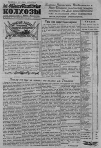 Пролетарии всех стран, соединяйтесьl заШ м ие$т иХие КО Л ХО ЗЫ Г а з е т а Северного Райкома В К П ( б ) и Райисполкома Л« 32 ( ¿ 7Г)) I 24 М А Я 1969 года, среоа [ Цена 8 кон. К о л х о з ы Чувашского, П р и б е л и н с к ою и Н о в о - Троицкого сельсоветов позорно з ат я н у л и сев. Д о л г р у к о в о дит ел ей и в с е х колхозников э т и х сельсоветов ликвидировать от ставание. ( 770 представлению Г К В К П (б) и Р П К а заносят- (] гя на Районную красную доску передовые сельоове- ( 71>и< И Т С , колхозы, тракторные, и по.геводческие ( бригады, звенья, стахановцы социалистических (, по-1ей, показавшие высокую производительность I труда на весенних полевых работах: (. Г ( ( <; ( ( ( ( (: . ( (. ( ( 44 С и д о р о в А . И . —пахарь колхоза «Единый путь». При по^ме 1,5 га, выполянет ежедиеичо 2 , 0 7 . 45. К у л т ы ги н А М . - п а х а р ь колхоза «Единый путь». Выпахивает ежедневно 2.05 га. 4<>. С о р о к и н И . А .—пахарь колхоза«Единый путь» дает 1, 76 га. 4 I. К о в а л е н к о М . А —пахарь колхоза пн. Буденного При норме 1, 30 га выпахивает 2, 25 га. 48. Е г о р о в Д Е —сеяльщик колхоза им. Ежова. Перевыполнилнорнуежедневно на 180 Проц. 49. Б у е в и ч Е .Е . —пахарь колхоза «17 паптс/езд» При норме 1,20 выпахивает ежедневно от 1,50 до 1,70 га. ) ) ) ) ) ) ) ) ) ) ( ) ) ') О ; ) ) I : ) ) j)‘ |) Т а м , где царит б л а го душ и е т в и е л та С ет е к и в у д » в ет к Н о о н лх в ет о оТ е з - р е ро п и « и Б цк о м о о г р о ь м б е с д а е л з е л а ь н с н п о о я . к П о а н 2 а 0 3 м 4 ая пр п о л ц а . н П в о ы се п я о н л о не 7 н 4 т ,8 ол г ьа из Р 2 у 2 к 2 о . водители этого колхзоа не б н о ие рют в с е я сен з не а го б с ы е с в т а р . е П йш ре е д е се о д к ат он е ч ль а тон. Бояров вместо руководства с н п я о и л . з е у в Б ы е р м т и т и р га у р д д аб и о в р т Ж ам п у о р п л о — е в во о п й т л л о е х ж о б и р в и о а р г е а г т а д е. Оп иногда совсем не выходит на работу, а занимается пьянкой я частой женитбьой. 15 мая Журов послал лошадей в бригаду, во сам не явился. д К а о л л и х , оз к н о и гд ки а до нм 1 д ч а а ду су т р д а н б и от о у жи и , наконец, вынужденыбы’ ли уйти д д м и о о т м . е о л й О е . н й о Т к а в о к л о о х з е м о у з щ а п а д о е в а т е л д ь е ш н к и е ол е х н о е з р т н у е и к р к о п в о и о в . И особенно в то время, когда в колхозе уже нет ни килограмма семенного материала. Трактроы Тартасской МТС, из- за невнимательною отношения к своим обязанностям трактористов и плохого ремонта, рабоатют с б в о о л р ьш с им к и олх п о е з р о е м боям е и е . М в Т ы С пол д н о я го ет . 1рактор СГЗ с 28-го апреля по 1э-е мая вспахал всего лить 22,4 гектара. Вместо суточной порчи в 6 га оп выпахивает от полутора до двух гектар. Второй т ды рак б т о о ль р ш С е ТЗ сто с ит н , ер ч в е о м н-же рабо бо та р е о т з. ж н 1 а и т га т о о л ни ь м е ко , уф м п т и о а т - о ж с м ц е у е , п с л г ч е о т н о р и а я ю н , е т и т с с о п в р е а ч з в и а . с П т о ы л 1 о . 3 мки мая • плу М го ТС в в т ы ак сл ж а е ла о д ч в е а н т ь р ч а а к т т т г о л о о р и к р а с с т С в о Т е я З л ч и и — . 1 и 1 П з А е - Т з р а И е , бр т н о о о г ш о е о , н н и ны ч д й т в о о т е р с с а о у к ж из колхоза «Коминтерн» также не пашет потому, что у плуга нет шпор и колхозный кузнец вынужден их делать. Механик МТС тов. Антонов и т д с о к р н у у о ю г в ие п м о н п м о л о г о о щ х ь о го о т в р к о а а р з к и ы т л о в р а и и ю с о т т б а т м е е щ х . н а и л А ч н н е а пленуме сельсовета, но только т и м о и а р л к о о , в д д т е а о ла л е и ь т к . т о от С оди 4 п н -г у о р ж а в м з ой б а ы я л у по м т м е р о х а щ а к - и т не ор о в к с а т з а а л л . . После е
