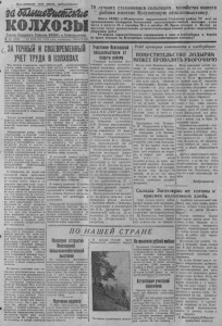 № 45 (2 8 8 ) З А Б О Л Ь Ш Е В И С Т С К И Е К О Л Х О З Ы 3 / Сеноквеостси большззистсними темпа!» Переходящие красные знамена РК ВКП(б) и Райисполкома переданы Мало-Карашпшу сельсовету и колхозу „Единый путь“ П о с т а н о в л е н и е м р а й к о м а В К 11 (6 ) и р а й и с п о л к о м а о т 17 и ю л я с . г . п е р е х о д я щ и е к р а с н ы е з н а м е н а Р К Б К П ( б ) и Р И К ' а п е р е д а н ы и з Б и а з п н с к о г о с е л ь с о в е т а в М а л о - К а р а г а е в с к и й и и з к о л х о з а н м . К а р л а М а р к с а в к о л х о з « Е д и н ы й п у т ь » ( О с т я ц к и » с е л ь с о в е т ) . М а л о - К а р а г а е в с к и й с е л ь с о в е т ( п р е д с е д а т е л ь т . И в а н о в ) к 15 и ю л я в ы п о л н и л п л а н с е н о к о ш е н и я н а О б п р о ц , с т о г о в а н и я н а 6 2 , з а к л а д к у с и л о с а н а 9 9 , в с п а ш к у п а р о в н а 8 7 и р е м о н т у б и р о ч н о ю и н в е н т а р я н а 7 0 , з а н я в п е р в о е м е с т о в р а й о н е . К о л х о з « Е д и н ы й п у т ь » ( п р е д с е д а т е л ь т . К р ю ш к н и ) в ы п о л н и л п л а ы с е н о к о ш е н и я н а 1 0 3 п р о ц . , с и л о с о в а н и е и п а р о в с н а ш к у н а 1 0 о и р е м о н т с е л ь х о з м а ш и н н а 7 5 п р о ц . П е р в ы м и к а н д и д а т а м и н а п о л у ч е н и е к р а с н о г о з н а м е н и р е ш е н о с ч и т а т ь О с т я ц к и й и Б и а з и н с к и й с е л ь с о в е т ы , к о л х о з ы и м . В о р о ш и л о в а и « К р а с н ы й н а ц м е н » . УЧЕСТЬ УРОКИ ПРОШЛОГО ГОДА Некоторые, колхозы нашего р ай о н а и 1 9 3 8 го д у недовыполнили п л а н за г о то в ки к о р м о в . Само собой р а з у м е е т с я , что обобществл е н и и » н л и ч н ы й с к о т ко л х о зан - ков не был обеспечен кормами. Прошлое бе зотв етственно е , беспечное ру ководство сенокосом о т д ел ь н ы х председателей колхозов и сельсоветов очень до р ою обошлось колхозам н ко л х о з н и к ам . Казалос ь- бы, и звле кая урок из прошлог о года, н уж и о сеиоксс вести б о л ьш е в и с т с к и м и т е Ч л а м и . но в целом по р а й о н у и но мно г н и колхозам имеет ся ве сьма нс п р и г л я д н а я к а р т и н а . Ксли в прошлом году м ноги е горе- р у ко в о д и те ли , оправды вая свою п р е с т у п н у ю бездеятельнос ть , с с ы л а л и с ь п а дожди , то в текущем году с т о и т п р е к р а с н а я но года, однако, сеиокос идет т а к же нск л!вчительно медленно. На 15 июля с кош ено 41 проц п л а н а , а застоговано всего 3 4 проц За п я т и д н е в к у ( с 10-го по 15 -е ) с кош ено 11 п р оц ., заскнр довчно 15 п р о ц . п л а н а . До пущ ен большой ра зры в между косовицей и с т о г о в а н и ем , что в непогоду может п р и в е с т и к порче кормов. Руководители Ч у ваши некого сельсовета и председатели колхозов .видим о , не х о т я т п о н я ть итого. О н и ,п о с у щ е с т в у , встали на п у т ь с р ы в а «еиокоса. На а т о - ж с число косо вица здесь выполнена то л ь к о на 2 0 п р о ц . . а заст о г о в а но 21 проц . Ко лхо зы <Нацмен п р о ле та ри й » , председатель К р а с нов I I . , «Северный Т а р т а с с » , Н а ш а лив , «Победитель», Нико лае в , не ско с и ли в 2 0 проц. п ла н а и почти столько же з а ст о г о в а л и . Эго нельзя о б л е н и т ь . ни чем иным , к а к п л о х и м , безответетвев ным руко водством . Председатель сельсовета тов. Л е сн и ко в И . п о т ворстнуетбездельникам руководят.- д я м н вместо ко и кр е тя о г о ру ко водсхва.дейст венной помощи кол хазам , болт ает я з ы к о м , о т с н я л вая сь к своем кабинете. Очень медленно о р г а н и зо в а н а работа на сеиокосе и в П р н б е л и п с ь о ч , Че в а к о в ск ом , Ново Тро иц ком седьсо в е х а х . И х председатели пролили гот н е д о п у с т и м у ю бе о и сч ло с гь и у сп о к о е н н о с т