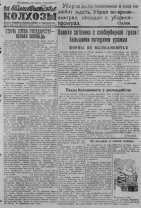 П р о л е т а р и и всех с т р а н, с о е д и н я й т е с ь! даШте&ьспМ{$ yí opi:a Я8Л0 ° 2 зонное и она не л ю б и т ж д а т ь . У б р а л в о - в р е м я - КО Л ХО ЗЫ Г а з е т а С е в е р н о г о Р а й к о м а В К П ( б > я Р а й и с п о л к о м а * 53 ( 296) \ 1 3 А В Г У С Т А 1 9 3 9 г . , воскресенье | Цена ы коп. в ы и г р а л , о п о з д а л с у б о р к о й - п р о и г р а л . Ст а л и н. И З СДАЧА ХЛЕБА ГОСУДАРСТВУ— <■' ПЕРВАЯ ЗАПОВЕДЬ П аш раиои в с т у п и л н массовую хлббоубврку. Из б у н к е р о в кон пай нов, к о л х о з ны х молоти лок з о л о т и м потоком л ь е т с я зерно бога* ^ ' jo ro , с т а л и н с к о г о у р о ж а я . Э то т а , хлеб — плод т р у д а кол х о зни ко в . Р р ез ул ьт ат безкоиечлой заботы т. .С та л ин а , п а р т и и , п р а в и т е л ь с т в а п всего н аш е го г о с у д а р с т в а о соци а л ис ти ч е ск ом се льском хозлй с г в е которому даио исе— машины п с е ч е н а , земли и удобрения, в с кото рою с п р а ш и в а е т с я только честный т р у д .д а вы п олнение своих п р я м ы х обнзаниостей перед совет спей ст р ан о й . Г л авн ейш а я пэ э т и х обязанно с т е н , пер в а я заповедь для к а к ого колх оза и ч е с т н о ю едино- з Г и ч п и к а— сд а ч а хлеба ю е у д а р с т - ^ - Ц К Б К П ( б ) в С о в нарком СС С Р ■ сиоем п о с та н о в л ен и и от 28 май с . г . со всей силом у ка за ли на ошибки доп ущ ен ны е в хлебо за г о т о в к а х прош л о г о года Новоси бирс кой областью, а в том числе, ст а л о б ы т ь , л н а ш и м районом . Чтобы н с п о в т о р я т ь э т и х ошибок, не р а с т я г и в а т ь з а г о т о в ки до бли з кой осенней р а с п у т и ц ы , не задерж и в а т ь х л е ба в г л у б и н к а х , не довести его до н екон ди ци он но го с о с т о я н и я но в л а ж н о с т и или з а со р ен н о ст и , т е м - ж е п о с т а н о в л ен и ем предусмотр ены ч е т к а я npotpaM- м а действий и ,г ла в но е , тв е рды е сроки сдачи зерна. R э т и х с р о к а х — незыблемом законе, н а р у ш а т ь который не поз волено н и к о м у , лево у ка за но , что у ж е в а в г у с т е все колхозы должны с д а т ь не менее 10 процентов п р и ч и т а ю щ е г о с я с н и х хлеба , а ед и н о л и ч н и к а не менее 3 5 проц. Но что ж е мы имеем за п е р вые д г с я т ь дней а в г у с т а ? Только 14 колхозов вз 7 5 п р и с т у п и л и к хлебосдаче. Н а все 6 пр и ем н ы х п у н к т о в З а г о т з е р н о — Северн ы й , Б ч а з и н с к и й , Ново-Клияароь- с к ь й , Б о л ь ш е - К у л и к о в с к и й . Крас ■ о я р ск лй н Н о в о -Т р о и ц кий пост у п и л о л и ш ь 6 5 8 центнеров зе р н а . Т а к и е се льсоветы в целом, 4, к а к О с т а н и н е к н й , О с т я ц к и й , Северный , Ч у в а ш и н с к и й . Прибелин- с-кни, Н ов о -Т р о н ц кн й , Потю канов екий ,Ф е д о р о в ский , Ново-Клизаров с к и й и Н л з э р о в с к н й к хлебосдаче и не п р и с т у п н л н . Т а к н е келхозы, к а к « Н а м я т ь Л е ни н а » (председател ь т . З ы р я н о в ) имеющ ее большие з а п а сы п р ош логоднего , вполне к о н д и ц в о в п о г е хл е ба , неи звестн о • чем д у м а ю т . Только т р и к о л х о з а — «Т д а р и ик» ( п р е д . т . Слободчиков), «Новый и у т ь » (пред. т о в . С т о л е т о в ) , « 6 - й С е з д еоветов» (пред. т о в . Л о п у хов ) с у м е л и , ч т о особенно важ но , н а ла ди т ь с и с т е м а т и ч е с к у ю , нзо д н я в ден ь вы в о з к у з е р н а г о с у д а р с т в у i сдают его у ж е че твертый день подряд. П р и м е р те го -ж е « У д а р н и к а » п о к а з ы в а е т ,ч т е обес- н е ч и г ь подобную с и с т е м а т и ч е с к ую в ы в е з к у н е т р уд н о , если вы- ♦ делить для это й цели п о с т о я н н ую бри гаду м определенного к о ли ч е ст в а людей, лошадей в т р а н с п о р т а , е о т в е т с т в е н ны м л и цом во г ла в е