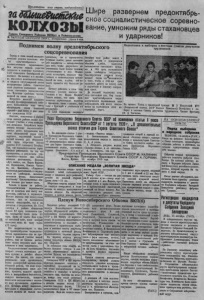 П ролетарии всех стран, соединяйтесь! ъаШ т ёбит яй,# колхозы Ш и р е развернем предоктябрьс к о е соц и а л и с ти ч е с к о е соревнование, умножим ряды стахановцев и ударников! Поднимем волну предоктябрьского соцсоревнования ' П о д г о т о в к а к в ы бо рам в м е с т ны е С о в е ты д е п у т а т о в т р у д я щ и х с я т ц ' и и и ч а й л ес и к с о т й ич п е р р с о е к д д и о и о г н с о к ы е т д я а б о р х н ь в с а а к ч ш о е е н г й о ы соци в а ол л с - и о с соревновании. Вся могучая страна радостно готовя гея к великомупразднику X во X л I ю I ц г и од я о . в Н щ а и з н а ы во О д к а т х я и бр в ьс ш ко а й хт р а е х , на колхзоных молотильных токах, за столами госучрежденийкипит напряженная работа. Советские люди радостно выполняют наказ главы советского правительства тов. Молотова «работать честно, каждый на своем посту.» Встретить великий праздник д но ам вы и м , и вы п п р о о л из не в н о и дс ем твенн в ы се м х и п с о в б о еих обязательств перед советской д с н т о и г р ц о а К ы н о г о л н р й а х — аш ж о д д з е а е ы г л н о о , и к н р о ч л а а е х с й о С о т з С н и н С и а Р и к т и . а д к о н ж лг е к о к п л а х р ж о и з н ш н о е и м н м и а д е ю м в т иж о у е ч с н а е и с н и т . и и е х Ск в о с р э е е т л й о ш ь м кс им в о с хо ен з з а я ав р й о е с р д т венных работ, выполнением всех д св ар о с и тв х о о м б , яза п н о н д о г с о т то ей вкой пере т д епло г й осу н с н ы о т го ной с з ко им та овки вс д т л ре я чаю об т ще м ст н в о е г н и е колхозы XXII годовщину Октября. Т н п а р ов м ов а , е ни р г е д я е е д т с с е о я й , с ц т и а в а е л р н си е т он з и у , ч ль г ес д т к е а о т е ы ход со у р ч е е и го в тываются— налицо уже сейчас немалые достижения. Колхозы «Луч света», ям. Карла Маркса, в н а м , . В н о м р . оши К л а о л в и а н , ин П а а , мят « ь Уд Ч ар а н па ик е» п ст о в л ом ност п ь о юра х с ле сч б и о т с а д л а и ч с е ь , с г з о ас су ы д п а а р л и семенные фонды, заканчивают п ни од х О го д с т т н о а о в к к ян о у о , в к б д л ц л а е г я л о о у м с с во т е р г п о о о ен с ны к х о р т а з а и й . о м н у, Социалистическое соревнование е х Н о щ п з о н е г и н н к е е ов к о , о х л в р х а а о т б з и ы о л ч о и е х щ вс е н ю не с м д л а о у с п ж с у у с а т щ и к и м о х * л . отстают, как ио выполнению осеввих сельхозработ, так и по расчетам с государством. На 15-е октября в районе обмолочено б т а ол , ьк г о осу 8 д 2 арс и т р в о у ц. сд с а к н о о шен л н и о ш го ь хл 5 е 3 нроц. зерна от плана. Еще хуже со вспашкойзяби, пдап которой выполнен лишь на одну треть (32 проц). Это свидетельствует о том, ч ч н т е и о с кл к о п ое р в с ед о о р к к е т а в я ж б н р д о ь ый в ск а о н у е ч и а е с с щ т о о е ц к и н а е л н и а п ст ш р и о ей х р н о а и з б е н о м т и ы к с , о ам в е ы и щ х е вс ш н е е х ир с т о д р к е у и л д х а я н щ о м и ас х с д ся о . с к т о о л я Социалистическое соревнование г н о ат в ь ори л т уч : ш по и м х ог я и о д т о с б т ей ав с ш я им общ д е о г г о п р о е д в ' н ем о а в . ан Э и то е з н н ад а о чит, о ч рг то аниз с о о в ц а с т о ь путем развенрутой массово-полн- т ш к и о и ч х е п , с о к п п о у р л й я и р р вл и а е б з ч и о ь ты ро к , в аж ч а т д т о о ь г н о о а п д ы о п т а ш р и л ти у ро ч й ного и непартийногобольшевика, каждого комсомольца, каждого с м н о и у в я е д . тс е к Д лу о о г г о о о в и р о н р га т н а е и л м з е и а ж г ц д е у и н и т к к с а о о л в р е х е л зо в и а он к м в и о а, б н р и п к га а д м а и ыы долж н н о ы тде н л е ьны т м ол и ько кол з хо а з к лючаться, но и проверяться. л С е т й ен вы ы р е аб 