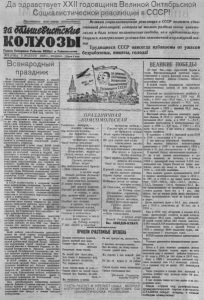 D O n U K I Д а здравствует XXII годовщина Великой Октябр Социалистической революции в СССР! П р о л е т а р и и все х с т р а н, соединяйтесь\ В е л и к а я с о ц и а л и ст и ч е ск а я р е в о л ю ц и я в С С С Р является е д и н - 0 % ** ми ственной р е в о л ю ц и е й , к о т о р а я не т о л ь к о р а з б и л а оковы капит а - лизма и д а л а новые п о л ит и ч е ск и е с в о б о д ы , н о й представила т р у - _>* * . д ящ им ся материальные у с л о в и я д л я зажиточной и культурной ж и - КОЛХОЗЫзни. Т руд ящ и е ся С С С Р н а в с е г д а избавлены от у ж а с о в р.ди.ма вкщ<) . Равис.олиоч» б е з р а б о ти цы , нищеты, голода! % ? 3 ( 3 1 6 ) | 7 Н О Я Б Р Я 1939 г . , вт ор ни к . I Цена 8 коп. Всенародный праздник 22-ю г о д о в щ и н у у с т а н о в л е н и я в н а ш е й с т р а н е С о в е т с к о й в л а с т и С С С Р в с т р е ч а е т к в о о г д р а е о е л ще е с в в о о е з г д о е й м с т о в г и у щ е е н с а т шв а и х и п о л с л и а т в и ыч е . с к Н и и х , х о з я й с т в е н н ы х и к у л ь т у р н ы х д о с т и ж е н и й , в н о а е ш е о г б о щ м е с и т р в н е о н г н о о т е в о р р а ч з е в с и к т о и г о е т н р е у д а б ына л о м и т р а о к с с е и к м о л ы г ь е о н о н п а р им а и в т и а д к т н е и л о . щ ь с Н у т и т в и к а т о е г н д л е а ь н з о в е , у щ ч к е а а л к г т в о а л к п о е с р в е е с ж с о к и в о в е т а и з п н а а с ч н и о т с е т л ь ь н н о а ш н и а х в г е р с а ь н и м ц ир н ! е н б и ык о л г а д а т а е к щ г п р б о е ч з н о а и т а к о г р а ж д е н а от в с я к и х с л у ч а й н о с т е й и п нщ а р е о с С и т о с в в к о е о в т в а о н в в и р я в а . с г т о у в п , а к е а т к в в 2 э 3 т - и й д г н о и д , к с о в г о д е а г о С т р с у а Р:* В е л и к а я с о ц и а л и с т и ч е с к а я р е в о л ю ц и я не || т олько с о к р у ш и л а и в ы р в а л а с к о р н е м в с е т о , на чем д е р ж а л с я мир э к с п л о а т а ц и н и н г л н о ю й е ц т и а и й , з — . в о О с н н е а а х о к п к о р а г о з д а б а л у - л д а с и и ь б л о а и к п с р а о ж м и и о с з й шн и е с д о ш л з и е и ж х д а а т в р е ше л в и ь о е п о д с п у д о м н е и с с я к а е м ы е т в о р ч е с к и е с и л ы н а р о д н ы х м а с с , о н а о б н о в и л а з е м л ю , о н а с о з д а л а н о в о е , с о ц и а л и с т и ч е с к о е о т н о ш е н и е к т р у д у , о н а в ы р а с т и л а н о в ы х л ю д е й - а к т н и и П в с н р т ыи о и ч х е с х с и к о д о с г и о о з в н ш о а и б т й ще л е в ь с н т э ыв т а х о . м с т г р о о д и у т е л X е V й I I I к о с м ' е м з у д л В иК с П т ( и б ч ) е с п к о о д г в о е л с т з р а о м и е т ч е а л т ь е с л т ь в н а ы е в и С т С о С г и Р с о Н ц а иш а а с л в т и р р а с а т т н ии а л ч е а и с с з к ь о о в е т с в г т о е а л с л у и о д к й а о , р е с т с м л в о о а г б . у о щЗ й а е с и т в г б е о е н д д ны н о о е й с с т о а ц л п и и р а н е с к и х п я т и л е т о к в С С С Р с о з д а н а м ощ н ая и р о н д д н у с о т г р о и я , х о п з е я р й е с с т т р в а о и в н ш а а я о с в н с о е в е о т р п а е с р л е и д о в н о а й с о в р е м е н н о й т е х н и к и , о д е в ш а я в с т а л ь и б с ж к р е а о н я н н юып р е н о а г с ш р и а л и мы м с . у а П х о о к п б о е у л д т л и н е л к ы а т е и г в и е и н з и а м ц а о л и р ь и с н к а и я с е е л с ь в т с о а к л о о и р г н у о х о з я й с т в а . С С С Р о б л а д а е т с а м ы м к р у п н ы м н м и р е м е х а н и з и р о в а н н ы м с е л ь с к и м х о з я й с т в о м . В С С С Р о с у щ е с т в л е н а в о с н о в н о м п е р в а я фл е а т з к а а к о о м т мк р у ны и л з а м а н—о - с в о у ц ю и а л п и о з л м о . с у Т р в е т ь р я а з в п и я т т и и и т н е а лш ь е с й т в а с т р б а е н с ык л—а п с о с о л в о о с у г о з а с о в ц е р и ша л е и н с и т я и ч е с с т к р о о г и о о л б и В щз м е а с с т в к в о а е к м о и м пм о о у б с н щ т и е е з 