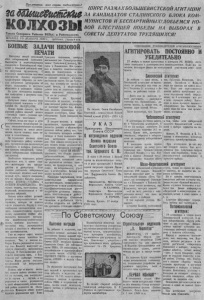 П р о л е т а р и и всех с т р а н, со ед и ня йт е сь ] Л - „ ___ ^ ШИРЕ РА ЗМ А Х БОЛЬШЕВИСТСКОЙ АГИТАЦИИ Ш ( т Ш и 0 & Ш Ш С 9 т 0 ЗА к а н д и д а т о в с т а л и н с к о г о б л о к а к о мШ г$Ш Ц \ # Ц м у НИСТОВ И БЕСПАРТИЙНЫХ!ДОБЬЕМСЯ н оВ й Ш 1 Ж . 1 1 « ю р й д ВОЙ БЛЕСТЯЩЕЙ ПОБЕДЫ НА ВЫБОРАХ В Г а з е т а С е в е р н о г о Р а й к о м а В К П ( 6 ) „ Р а й н с п о д к о ч а СОВЕТЫ ДЕПУТАТОВ ТРУДЯЩИХСЯ! ¿ О Н О Я Б Р Я 9391.г, с у б б от а . I Це н а 8 коп. БОЕВЫЕ З А Д А Ч И НИЗОВОЙ ПЕЧАТИ Н а с т у п и л новый решающий Троицком сельсовете, к о т о р у ю возглавляет тов . Савип (ре д ак то р ) , атап избирательной к а м п а н и и . Вы д в ину ты и зарегистрированы кандидаты в Нов осибирский областной и Северный районный совет ы д епу та тов т р у д я щ и х с я . С о громным п олитическим под'емом повсеместно ц рошлн окруж н ы е предвыборные собрания, на ко то рых избирателя договорились об общих канд и д а тах в депутаты областного и районного советов На д н я х нач и на е т ся выдвижение кандидатов в де пу та ты сель с к и х советов. Н ас т уп ае т самая го рячая пора избирательной кампании — А Г И Т А Ц И Я ЗА КАНДИДАТОВ. Можно прямо с ка за ть , что без хорошей работы низовой печати — с т е н н ы х г а з е т — успешно иро- вестн выборы невозможно. Сейчас, ко гда все шире и ярче развертывается предвыборная ра- ( бота, социалистическое соревнование в ко лхозах за новые достиж е н и я , задачи с тен ны х газет вел и к и и о т к с г с т в е н н ы . На с т р а н и ц а х с т е н н ы х газет надо п оказыв ать работу а г и т а т о - л ров, о р га н и з а ц и о н н о -т е х н и ч е с к ую " подготовку к выборам (составле ние с п и сков избирателей, го тов ность изби ра тельных помещений, и м у щ е с т в а ) . Наобходимо показывать работу доверенных л и ц . А самое г л а в н о е - а г и т а ц и я з а к а н д и да тов в депутаты . Надо толково рас сказать избирателям на с т р а н и ц а х с тен ны х газет ж и з нен ны й п у т ь , заслугп кандидата, чем он завоевал большое доверие п а р т и и .1 КН И НА — СТАЛИНА и Н А Ш Е Г О ПРАВИТЕЛЬСТВА . Печ а т а ть отзыпы, выступл ения избирателей, постановления и обращения собраний . Весьма много сейчас разнообразных и ос трополитических материалов , которые не должны где-то о с та в а т ьс я . Наряду с этим необходимо систематически осне щать социалистическое соревко в а нн е , выполнение взятых обязательств, показывать выполне н и с х о з я йс твенно -пол итических ^ задач, особенно подготовку к весеннему севу , распределение доходов в колхозах и \ общественное животноводстве . У ж е на первых порах многие степгазеты имеют заметные показател и . Т а к , в колхозе им. Карла Маркса редколлегия (редактор т о в . Нв а по в ) выпускает неп л о х у ю с тен га з е т у , посвшцепную выборам. В Потюкаиовском а г и т п у н к т е выпущена одна, в Биа- эннском дие выбориые стенные газеты . М ного д р у ги х колхозов, орга ни за ци й где выпускаются с т е н г а з е т ы . Одпако, еще во многих колхозах нашего района стенные газеты тте вы хо д я т , или вы п у с к а ю т ся от с л у ч а я к случаю , а их редакторы и члены редколлегий к этой общественной, весьма в а ж ной работе о тносятся по обыва- /г т е л е к и . Примером этому может с л у ж и т ь редколлегия при Новоч лены : Тре тьяков ( у ч и т е л ь ) , Ж и галов и Павлюченко. Все гр ам о т ные и, к а ж е т с я , самостоятельные люди, но за м к ну в ш и с ь в свою узковедомственную с к о р л у п у , они не уделяют ни како го в н и м а н и я н а с т е н н у ю газету. Тот ж е Т р е