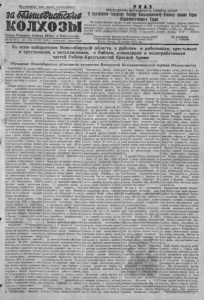 2 З А Б О Л Ь Ш Е В И С Т С К И Е К О Л Х О З Ы 8 6 ( 3 2 9 ) Ко всем избирателям Новосибирской о бл а сти , к р а б о чим и работницам, крестьянам и крестьянкам, к интеллигенции, к бойцам, командирам и политработникам частей Рабоче-Крестьянской Красной Армии Обращение Новосибирского о б л а с т н о г о ком ит ет а Всесоюзной Коммунистической партии (большевиков) О К О Н Ч А Н И Е вернейшим и н а д еж н ей ш и м з а щитником завоеваний социализм а. Неустанными заботами п а р т и и военпая мощь СССР возросла н а столько, что нам не страшны сейчас н и к а к и е угрозы и з в н е , н и к а к и е махинации провокаторов и поджигателей войны. Благодаря мудрой и последовательной внешвей п о л и т и к е , проводимой п артией и советским правительством, заключены, имеющие историческое з н а ч е н и е , договора о взаимопомощи с в аш и м и западными соседями— Эстонией , Латв ией и Литвой, договор о д р у ж бе и ненападении с Гер м ан ией , договор о дружбе а взаимопомощи с правительством Ф пплянд ской Демокра тической Р е сп у б л и кой . Эта мудрая с т а л и н с к а я п о л и т и к а горячо одобряется всем передовым и прогрессивным ч е ловечеством. Она обеспечила в условиях п ож ар а второй и м п е р и алистической войны мирное с у ществование народа наш ей родины! Все эти славные победы одерж а н ы тр удящим ися страны социализма под руководством п а р т и и большевиков, в упорной и бес иощадной борьбе со всеми в р а г а ми народа. Т О В А Р И Щ И И З Б И Р А Т Е Л И ! Отдавая свои голоса за кандидатов сталинского блока коммунистов и б е с п ар т и й н ы х , вы будете голосовать за большевистс к ую п а р тию , за ее мудрую по л и т и к у , за новые победы к омм у низма в нашей стране . Избирательная к а м п а н и я в н а шей области ознаменовалась мощным политическим и производственным под'емом. Коллективы горняков тр еста Ьлйбышев- уголь , ш а х т а им . 7.-го ноября, ш а х т а им. Е м . Ярославского, металлурги Б люмин га , К у з н е ц к о го (к о м б и н а та и у. С т а л и н а , паровоз 1ного депо Т о п к и , с т а н ц и и К а н долей и Че репанове, Я н ско го в а гонного депо Томской железной дороги, Кемеровская ГРЭС , труд- армейс кая Кемеровская МТС, До- воленский и В е р х - К а р г а т с к и й животноводческие совхозы и ряд д р у ги х предприятий досрочно выполнили годовую производственную программу и выдают про дукцию сверх п л а н а . С каждым днем в э т у ш ер ен г у передовиков социалистического соревнования имени Третьей Сталинской П я т и л е тки в ступают все новые и новые п р е д п р и я т и я , колхозы, сов хозы! Т О В А Р И Щ И И З Б И Р А Т Е Л И ! М и н ь т е победы на всех у ч а с т к а х хозМ 1сткенного н куль турного стр оительс тва! Дадим еще больше у г л я , ме та лл а , леса , хле ба, предметов широкого потреб л е н и я ! Достойными трудовыми подарками родине отметим день выборок в местные советы! Т О В А Р И Щ И И З Б И Р А Т Е Л И ! Выборы в местные сове ты проводится на основе самой демокра тической в мире изонра ласти голосовать за канд идато в нерушимого блока коммунистов и б е спар тийны х . Рабочие и работницы, колхоз вики и колхозницы, трудовая ин- т е л л ш е н ц и я , с л у ж ащ и е , железнодорожники Томской , бойцы, ко мандиры и политработники частей Р а боче -Кре с тьянской Красной Армии, т о в а рищ и избиратели! Все до одного , все к а к один, г о лосуйте 2 4 декабря за кандидатов с тал инс кого блока! Выберем в депутаты местных советов л у ч ш и х сынов и дочерей в