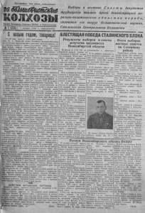 i Пролетарии всех стран, соединягтесь! заШт&итскке КОЛХОЗЫ Г а з е т а С е в е р н о г о РаЁковгв Б 11Це ', в Р а Ё в г в е а в в в а 1 1 (331) I 1 января 1940 г . , пон едельник . ) Выборы в местные С о в е т ы депутатов трудящихся явились яркой демонстрацией морально-политического е д и н с т в а н а р о д а , сплочения его вокруг большевистской партии, Сталинского Центрального Комитета С новы годом, товарищи! Сто л е т то м у пнзад, п 1 8 4 0 -сво ей родины, г о д у , В . 1. Бе линский с к а за л Вс есоюзная с е л ь с ко х о з я й с т в е н н а я ’Л и И и I I О » Г О И Г п и л п п л и п п л . . . . . . • з а м е ч а т е л ь н ы е пророческие с л о в и «Завиду ем в н у к ам и п р а в к у* . кам н а ш и м , которым суждено ’ в зд ет ь Р о с с и ю в 1 Й 4 0 году, сто я щ у ю во г л а в е образованною м и р а . д а ю щ у ю законы и н а у к е , и и с к у с с т в у , и п р и н и м а ю щ ую б л а - ' в а в ы с т а в к а нагл ядно от разила и с т о р и ч е с к ую победу колхозного с т р о я , иод'ем к ра с ц в е т с о ц и а л и с т и ч е с к о г о земледелия, н е у к л о нны й рост заж и то ч н о ст и и к у л ь т у р ы колхозного к р е с т ь н п с т ------- * ■ О П Г П В 9 1 Г а Р Я Ш 8 Ч М ! Ш Г « Я | » П И 1 И И И Н 1 Ш Р1 и и м II н и БЛЕСТЯЩАЯ ПОБЕДА СТАЛИНСКОГО БЛОКА Результаты выборов в советы депутатов трудящихся Новосибирской области у ч а с т в о в а в ш и х в г олосовании . г о д а р в ую д а и ь от всего просвещ е н н о ю человечества». 11 э т о т год н а с т у п и л . Под ру ководст вом своих г е н и а л ь н е й ш и х вож дей— Ленина и С т а л и н а - . - н а р о д ы ранее отста лой Р о с с и и , объединившись в единую б р а т с к у ю семью, создали новый т и п г о с у д а р с т в а — Союз Совет- ч С о ц и а л и с т и ч е с к и х Р е с п у б л и к . Н е с л ы х а н н о возросло бл а г о с о с то я н и е с о вет ского парода. Неуклонно повыш а е тс я м атериальный В 1 9 3 9 году собрано 6 , 5 м и л ли а р д а пудов зерновых — па 1 1 п р о ц . больше, чем в п р е д ы д у щем году. С т а х а н о в ц ы с о ц и а л и ст и ч е с ко го земледелия завоевали много миро вы х рекордов у р о ж а й ности. В н е ш н я я политика советского п р а в и т е л ь с т в а укр еп ил а м е ж д у народные п о з и ц и и С е в е т с к о ю Сою з а , обеспечила дальнейший рос т в л и я н и и СС С Р па р а з в и т и е м еж д у н а р о д н ы ! от нош ен и й . З а , w | " Д Ц 1* д V J П <7 П J Х (1 11 11 • 0 * 1 “ К* * " уряы| ^ вевь ТРУДЯ'ЧИХ- ключевое герма по советского дос я С С С Р . Со ветс кий Союз я вляет СЯ ед инственной страной в м и р е , где народ с гордостью подводят и т о г и прошедшему я с ясной у в е р е нн о с тью см о т р ит в будущее . Для народов к а п и т а л и с т и ч е с к и х с т р а н и с т е к ш и й 1 9 3 9 год я в и л с я годом р азвя зы в ан ия новей мировой ( и м п е р иа ли ст ич е с ко й войны. Сдай ле н ны й т и с к а м и экономичес ко го г о в о р а о дружбе п г р а н и ц е м еж ду С С С Р и Ге рма нией , п а к т ы о взаимопомощи с н а ш и м и с о с е д я м и — Эстонией , Латвией и Л и т вой — р е з у л ь т а т мудрой с т а л и н с к о й п о л и т и к и мира. Много з н а м ен а те л ь ны х дат в ле топись и с т о рии в п и са л а в 1 9 3 9 году н а ш а доблестная Р а б о ч е - К р е с т ь я н с к а я К р а с н а я А р м и я . Она с к р и з и с а д р я х л е ю щ и й к а п и т а л и з м ) чест ью в ы п л а в и л а и нт орьацио - ищ е т выхода в военных а в а н т ю | н а л ь н ы й долг с о в е т с к о ю народа р а х . На западе и на вос го ке |ос воб»днв от н а н с к о ю я рм а на’- у ж е в т я н у т о в войну около с е - п т т в т » ппиплио . . , *.Г.___ м и с о т миллионов человек, а вче с т е с к о л о н и я м и — св ыше одной т ы с я ч и 3 0 0 миллионов ч
