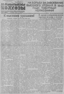 и г с к а , / ц л и и р л и ь а ш - " агитатции ¿ 2 эк.i |ДЦ. сое&цняйтесь1 __ за -.... „ » „д г :^ НА БОРЬБУ ЗА ЗАВОЕВАНИЕ ы ^ м ш и еш ш ет е высокого у р о ж а я в 1940 ГОДУ, ТОВАРИЩИ К0ЛХ0 3НИНИ! л / о з ы Г а з е т а С е в ер но г о Райкома Ы>Г(6у и Р а й к ш с л к о к а Т Т 7Щ Г “ 6 яниаря 1940 г., суббота. К высоким урожаям! (Передовая , П у б л и к у ем о е сегодня по стаяо м е н и с Совета Народных К о м и с саров Союза CCI* и Центрального К о и н т е т а K K I l ( ó ) t O порядке п л а н и ро в ан и я посевов зерновых к у л ь т у р в к о л хо за х» имеет и с клю чи те л ьно важное значение для дальнейшего повыш е ни я ур о ж а й - п о с т , дтя нового мо:цпого раз в и т и я общественного хо зя йств а колхозов, для п о д н я ти я творчес кой и н и ц и а т и в ы масс колхозаи ков. К а к известно , существовавший до с и х пор нарядов п д а п и р о заи ни посевов зерновых к у л ь т у р п р ед у см а тривает обязательное доведение до колхозов планов посева но каждой к у л ь т у р е в отдельности. Этот по ряд о к имел в прошлом большое положительное знач ен и е . Он был одной из г а р а н т и й про т н ч к у л а ц к и х а н т и го с у д а рс т в е н н ы х т е н д е н ц и й , оп обеспечивал выполнив не 1 ссуде р с тв с н в ы х зад аний но upon годс тву зерна и сыграл в прошлом большую роль в Повышении у р ож ай н о с т и . В результате о гр о м н о й работы Партин КОЛХОЗЫ ОКрСПЛИ, у'ПТОЧС п и , выращена и во спитана армия кол хо зны х ру ководителей, з а к а л енная в боях за колхозный строй и овладевшая искусс тво м большевистского руководства сель с к и м хо зя йств ом . В э т и х условия х сущ ес тв овавший п о р я д о к п л а н и рования посевов « н у ж н о п р и з нал» у с т а р е в ш и м , т а к к а к оч сд ерживает т в о рч ес к ую и н и ц и а т и ву с а м и х ко л х о з н и к о в и ослабл яе т их заинтересованность в борьба за дальнейшее повышение у р о ж а й н о с т и » . В о т по чему советское пгранп тельство и Центральный Kumí-tpt п а р т и и о тменили существовавший по ряд о к п л а к и р о в а н и я посевов ж р н о в ы х к у л ь т у р и ус тановили н ов ый . Отныне планы посева зерповых к у л ь т у р буд ут доводи гься до колхозов один раз н год с у м марно по всем зерновым к у л ь т у рам с выделением посевов о ш м ы х . Колхозам предоставляется право распределять э го г суммарный п л а н по к у л ь т у р а м по своему у см о тре нию . Требуется лиш ь ,ч то бы было обеспечено безусловное выполнение ю с у д а р м в е н и ы х о б а - ! зательств по хлебосдаче спо т в г т ' с т в у ю щ и м н к у л ь т у р а м и . Колхоз- ! в и е п л а ны посева по к у л ь т у р а м ' у т в е р ж д а ю т с я районными испол-1 н и т е л ь п ы м и ко митетами и мо гу т быть измелены только в тех ' с л у ч а я х , когда этими планами не обе спечивается выполнение ю -1 с у д а р е т в е в и ы х обязательств по сдаче зерновых к у л ь т у р , не подл е ж а щ и х замене д р у г и м и к у л ь - , т у р а м и . В этом с у т ь п у б л и к у е м о г о п о с т а н о в л е н и я , с т р е м я щ е й с я создать в ко л хо за х п о д л и в а в ж и в о е , т в о р ческое п л а н и р о в а н и е посевов черновых, п л а н и р о в а н и е с у ч а « тием масс ко л хо зн и ко в н учетом ил бщ а тейш о го л и ш е н н о г о и нро и з б е д с т в е н н о г о о пы та . Такое п л а в и Правды“ за 29 декабря 1939 года.) ронаиие поднимает и н и ц и а т и в у высоки й у р о ж а й . З н а н и я агронок о л х е з н я к о в и уве л и ч и в ае т их заинтересованность в борьбе за дальнейшее повышение у р о ж а й н о с т и , усиливает отв етственность ко л х о з н ы х руководи !елей за п л а н и р