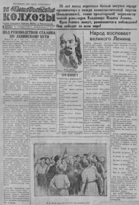 П р о л е т а р и и в с е х с т р а н, с о ед и н я йт ес ь ! 16 лет назад перестало биться могучее сердце организатора и в о ж д я коммунистической партии (больш евиков ), гения пролетарской социалистической революции Владимира Ильича Ленина. Идеи Ленина ж и в у т , развиваются и п о б еж д а ю т ! Г а з е т а С е в е р н о г о Р а й к о м а В К 1 Ц о ) и Р а й и с п о л к о м а №а(335)1 2| января 1940 г., воскресенье. |1 д з х О н и К о б б Д Я Т В О В С е М М И р е . ПОД РУКОВОДСТВОМ СТАЛИНА ПО ЛЕНИНСКОМУ ПУТИ МйНуЛО 16 ЛОТ С ТОГО дни, к а к перест ало б и т ь с я илауенное с г р щ е г е н и я человечества В л а д и м и р а И л ь и ч а Лени н а . В е с т ь о см е р т и Л е н и н а рабочий к л а с с и все т р у д я щ и е с я земного ша ра в с тр е т и ли к а к с а м у ю т я ж е л у ю у т р а т у . Л епин осветил пародам мпра п у т ь к свободе н сч а ст ью . Он создал и вы пестовал революционную п а р т и ю рабочего к л а с с а , п а р т и ю нового т и п а , повел рабочий к л а с с н беднейшее к р е с т ь я н с т в о па ш т у р м к а п и т а л и з м а и ор г а н и зо в а л победу Ве ликой О к т я б р ь с к о й с о циалис тиче ской ре- волюци II. Л е п и н — отец и создатель сове тского г о с у д а р с т в а — д и к т а т у р ы п р о ле та ри а та . Он о т сто ял в борьбе п ротив мпого чпс- л е н вы д врагов в л аст ь советов, вывел с т р а н у па п у т ь х о з я й с т венного и к у л ь т у р н о г о возрожден и я . Л е ни н уш ел от нас, оставив бо га тейш ее идейное последив, о с т а в и в г е н и а л ь н ы е идеи преобразования человеческого общест ва . В т р а у р н ы е дни, когда п а р ти и г лубоко п ереж ивала п о с ти гш ее (е бедст вие, бл и ж а й ш и й у ч е и и к и с о р а т н и к вели ко го Л е н и н а т о в а р и щ С т а л и н дал к л я т в у — до к о н ца в ы п о л н я т ь л е н и н с к и е заветы . Т о в а р и щ С т а л и н от ли ц а всей бо л ьш е в и с т с к о й п а р т и я п о кля л с я д е рж а ть вы соко и х р а н и т ь в ч и с то те великое звание члена пар т и п , х р а н и т ь единство п а р т и и , к а к з ен и ц у о к а , х р а н и т ь и у к р еп л н т ь д и к т а т у р у рабочего к л а с са , х р а н и т ь и у к р е п л я т ь всеми с и л а м и союз рабочих и к р е с т ь я н , у к р е п л я т ь и р а с ш и р я т ь Союз С о в е т с к и х С о ц и а л и с т и ч е с к и х Ре с п у б л н к . у к р е п л я т ь н а ш у добло С т в ую К р а с н у ю А рмию , р а с ш и р и т ь союз т р у д я щ и х с я всего ми р а — Ком м у н нет и чес к и й Я пте р на ц иона л . Э то была к л я т в а от имени всего народа, с п л о г з в ш е госн иод знаменем ленинизма в о к р у г т о в а р и щ а С т а л и н а — вели к о ю пр о д о л ж а те ля дела Л е н и н а . Н резреппы е в р а г и народа— тро д к н е т ы , з и по в ь е в ц ы , б у х а р п н ц ы , б у р ж у а з н ы е н а ц и о н а л и с т ы — ста* р а л ис ь носпользоватьсм п о с п и - шим п а р т и ю оедстиием для о с у щ е ст в ле ни я с в о и х предател ьских замыс ло в . Они хотели о т п и т ь \ рабочего к л а с с а , у советског о народа веру в возможность ¡¡обе ды со ци а ли зм а н пашей с т р а н е , разбить едн а с тв о большевист ской п а р т и и , п о г у б и т ь со ветск ую власть и с о ц и а л и с т и ч е с к ую рево ЛЮЦИЮ. В е л и к а н продолжатель дела Л е н и п а , н аш мудрый вождь и у ч и т е л ь т о в а р и щ С т а л и н разгадал коварны е зам ы с л ы предателей. Товарищ С т а л и н о т сто ял учение Л е ни н а от п о с я г а т е л ь с т в изменил ков и р а з г ро м и л всех врагов пар т п и и ва рода. Т о в а р и щ С т а л и н обогатил бе с смертное учевие Д е н и н а новым опы том революционной борьбы рабочего к л а с са , воо руж ил н а р - TI ю и всех т р у д я 