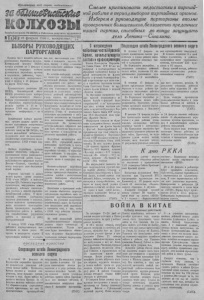 П ро л ет а р и и в с е х ст р а н, соед и н я йт ес ь ! Г а з е т а С е в е р н о г о Р К ВКП(б^ и Р а й с о в е т а д е п у т а т о в т р у д я щ и х с я тт I 18 февраля 1940 г., во с кре сен ье |1°5.йЗД* , С м е л е е критиковать н ед о ст ат ки в партийной р а б от е в п е р и о д вы б о р о в партийных органов. И з б е р е м в р у к о в о д я щ и е парторганы вполне проверенных большевиков, б ез з а в ет н о п р е д а н н ы х нашей партии, с п о с о б н ы х д о конца защищать д е л о Л е н и н а — С гпали на. ВЫБОРЫ РУКОВОДЯЩИХ ПАРТ0РГАН0В Прошел год с момепта выборов руко водящ их п а р ти й ны х органов . Ц ен т р а л ь ны й ком ит ет ВК П ( б ) п р и н я л решение от 5 февраля о проведении очередных выборов р у ко в о д ящ и х п а р т и й н ы х органов в п е р в и ч н ы х , р а й о н ны х , город с к н х и о к р у ж н ы х п а р т о р га н и з а ц и я х в период с 15 февраля по 15 м арта 1 9 4 0 года. Р у к о в о д с т в у я с ь решением Ц К В1Ш(б ), Новоси бирск ий обком В К Н ( б ) установил сро ки выборов в п а р т о р г а н и з а ц и я х области. Выборы р у к о в о д я щ и х парторганов в п е р в и ч н ы х п а р т о р га н и за ц и я х должпы пройти с 15 по 25 февраля 1 9 4 0 года, районные и городские копференцзи — по 4 м а р т а . П редстоящие выборы парти и п ы х органов должны пройти под зна ком выполнения исторических решений X V I I I с ’ езда партии и майског о п ле нум а Ц К В К Н ( б ) , под знаком дальнейшей мобилизации т р у д я щ и х с я масс на выполнение х озяйст венно политич еских задач, п о с т а в л е н н ы х X V I I I съездом п а р т и и . Выборы п а р т и й н ы х органов должпы обеспечить избрание в руко водящий сост ав проверенных п а п р а к т и ч е с к о й работе т о в а р и щей,беззаветно преданных партии Л е н и н а — С т а л и н а , способных до конца з а щ и щ а т ь дело большевистской п а р т и и . Огромное значение в жнзпн в аш ей п а р т и и имеют решения X V I I I с 'е з д а ВК11(б) и майског о п ле ну м а Ц К . Р а й о н н а я парти й н ая о р г а н и з а ц и я , вооруженная этнм и р еш ен и ям и , добилась значитель- в и х у сп ех ов в области партий н е х озяйст венной работы. В з н а ч и тельной степени у л у чш и л а сь трудовая д и с ц и п л и н а в колхозах , высоко поднялась производительность колх озного производства. Далеко продвинулась п а р т и й н о п о л и т и ч е с к а я работа в масс ах , что способствовало улучшению работы в колхозах и росту п а р т о р га н и з а ц и и К н а ч а л у X V I I I с'езда В К П ( б ) районная п ар т о р га н и з а ц и я н а с ч и ты в а ла в своих ря дах 8 9 членов п кандидатов партия К нов она н а с ч и т ы в а е т у ж е 191 члена и кандидата п а р т и и . Одн ако , наряду с этим .отдельные п а р то р га н и за ци и работали совершенно недостаточно. На о т ч е т н о -вм б эр иы х со б р а н и ях се кне га ри пе р в и ч ны х п а р т ор г а н и за ц и й обязаны о т ч и т а т ь с я о проделанной ими работе, они обязаны ра с ск а за ть ком м уни с там к а к они сп л ач и вал и свою орга- н из г ц и ю на р а з р е н э н з э и с т о р и ч е с к и х решений восемнадцатого с езда п а р ти и , на разрешение хозя0ст вепно-пол«тг .ческих задач , с т о я щ и х перед п арто рганизациями . Ко м м у н и с т ы потребуют от секретарей ск азать к а к они выполняли 9 награждении войсковыхчастейКрасной 'Армии, начальствующего состава икрасноармейцев Указом П р езидиум а Ве рховного Совета Союза С С Р 2 7 -ми командирам н красноармейцам за образцовое выполнение боевых заданий командо вания па фронте борьбы с финск ой белогвардейщи пой и проявленные при этом огва I гу и ге