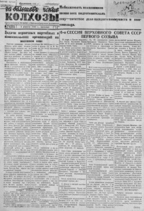 I m c t w i м у к а НИШЕМ П р о л ет а р и и всех , 1соединяйтесь! ш Ш ш колхозы М обили зовать к ол хо зни ков шение в сех подготовительнь севу— почетное дело к а ж д о г о к о м м ун и с т а и ком 'Ол о e - w jw ^ r (/Vvi Г а з е т а С е в е р н о г о Р К BKF1(6J и Р а й г о в е т а ' д е п у т а т о н т р у д я щ и х с я . р ерн« » т ш т 5 апреля 1940 г., пятница Гол изд 5 -й сомодьца. З а д а ч и первичных пар ти йны х и ком сом ольски х организаций н а весеннем севе Отличное проведение вееение- мосевпых работ имеет и с кл ю ч и тельно важно«; значение длн по - Зч сни н 100-пудового урожая с ж до го г е к т а р а Дли этого во веех колхозах района требуется максим ум в н и м а ни я от первичн ы х п а р т и й н ы х и комсомольских орга низаций Комм унистам в комсомольцам |$*;кно постоянно по мн и ть , что борьба с расхл ябанностью и бесхо зя йств енностью в ко лхозах, л ионседневпаи забота о повыше- инн производительности труд а — явл яется я х ва жнейшей обязанностью. Мобилизовать ко лхозников на скорейшее завершение всех подг о т о в и т е л ь н ы х работ к весеннем у с е ву , р а з ' я с ш п ь и м , что с а мотеком не п ол учиш ь высоки х у р ож ае в , ч то здесь должна быть у п о р н а я борьба всех ко лхозников яа проведение сева в сжатые сроки с хорошим качеством, провести ряд к о н к р е т н ы х мероприя т и й , обеспечивающих выполнение аадач, пос тавл енных тов . А . А. Андреевым па совещании передо- - И П К О ь О с л 1 , 0 М Я О л'ХКПГДОЛ'Г,А «1\ г £ £ сибирской области, выполнит«, ¡решения районного партсобрания, — почетное дело ка ждого к о м м у н и с т а и комсомольца. На время весенне - поеевнои ♦ е к ре гар я Ц К Н К П ( б ) т о в . А . А . А н дреева и доклада тов. В . М. Мо лотева на 6-й Сессии Верховного С«кета СССР. Н у ж н о привести в к у л ь т у р н ы й вид нолевые станы. Оборудовать в каждом из н и х кр асны е у г о л к е , обеспечить передвижными би блиотеч ками , га зе тами , радио, м узыкальными и н с трум е н та м и , надо п р и го то в и ть л о з у н г и , п л а к а т ы , доеки показателей. Создать все условия для то го , чтобы ко л х о з н и к и , работающие на несением севе имели возможность ежеднш ю получа ть информацию по Л ч вопросам 6 - я С Е С С И Я В Е Р Х О В Н О Г О С О В Е Т А С С С Р П Е Р В О Г О С О З Ы В А 2 9 марта в Кремле открылась 6-я Сессия Верховного Совета СССР. В 14 часов яачалоеь за седавне Совета Союза. За столом председателя поив лиютея председатель Совета Союза д епу тат Андреев н заместитель 4 ) . Об у тверждении указов Президиума Верховного Совета СССР, п р и н я т ы х за период между сессиями и подлежащих у т верждению Верховным Советом СССР. Прин има е тся решение рассмот председателя - д е п у т а т Лысенко, j реть первый и второй вопросы а в л о ж а х — члены Президиума Верховного Совета СССР, члены правительства во главе с председателем Совнаркома СССР товарищем Молотовым. Их и «явление встречается бурной а к а ц и е й . В зале заседаний члены диплом а т и ч е с к ою к о р п у с а , работники советской и иное ранной п е ч а т и , многочисленные г о с т и . Сессию о т к ры в ае т председатель международного положения и Совета Союза д е п у т а т Андреев внутренней пол и ти ки СССР, у в я зывая это с очеред ¡об задачей — з а к о н ч и т ь С(:В в сж а т ы е сроки па о тл и чн о , добиться получения 100 пудов зерна с к а ж д о ю ге к т а р а . Секретари пе рвичных п а р т и й н ы х и Комсомольск ; х о р га н иза - Он предоставляет слово д епу тат у Алемасову, который сообщает, что депутаты Узбе