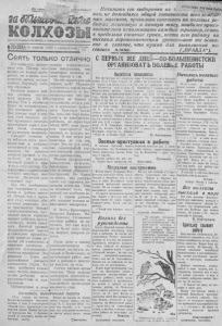 2 З А Б О Л Ь Ш Е В И С Т С К И Е К О Л Х О З Ы 23 ( 35 3 ) П А Р Т И Й Н А Я Ж И З Н Ь З а б ы л и о своих решениях Н о д и т в о с н и т а и и в 1 8 февраля в п а р т о р г а н и з а ц и и Т а р т а с с к о й МТС проходило о т ч е тн о - в ы б о р н о е п а р тсо б р ан и е , на к о то р ом к о м м у н и с т ы резко к р и т и к о в а л и работу бывшего с е к р е т а р я т . Е рш о в а . Работа была н р и з п а ц а неуд о в л е тв о р и те л ь н о й . По о т ч е т у с е к р е т а р я вынесено н е п л о х о е решение . Если бы вновь и збран ный се к р е т а р ь т о в . Нико лаев в ы п о л н я л я г и р е ш е н и я , то п а р т о р г а н и з а ц и я сделала бы многое для л н к н и д а ц и н н е д о с та т ко в , им ею щ и х с я в работе МТС. Но прошло около д в у х месяцев, а т о в . Н и к о л а е в не провел ни одного п а р т и й н о г о с о б р а н и я , о б ъ я с н я я это т е м , ч т о у н е го , в ид ите л и , н е т для э т о г о времени ( ? ! ) . Однако к о м м у н и с т ы , в п р и с у т с т в и и Н и к о л а е ва , з а я в л я ю т : « В р е м я у н а с есть и мы м о гл и бы провес ти н и одно соб р а ни е . Но с е к р е т а р ь т . Н и к о л а е в забыл о н а с , не уде л я е т в в и м а н и я работе п а р т о р г а н и з а ц и и ». В р е ш е н и я х было з а п и с а н о о п о л и т и ч е с к о м в о с п и т а н и и к о м м у н и с т о в . Однако по э т о м у во п р о с у еще н и ч е го не сделано. о т с у т с т в у е т , ис торию В К Н ( б ) чл е ны и к а н д и даты п а р т и и , к а к и п р е ж д е , поч т и не и з у ч а ю т . Не п роводит ся работа и с комсомолом . Рост п а р т о р г а н и з а ц и и о т с у т с т в у е т . За работой МТС со с го р о н ы к о м м у н и с т о в нет н и к а к о г о к о н т р о л я . Эго привело к т о м у , что МТС пе вполне п о д го т о в и л а с ь к севу. П а р т и й н ы х п о р у ч е н и й к о м м у н и с т а м не д аю т . До се го времени не сделана р а с с т а н о в к а п а р т и й н ы х н к о м с о м о л ь с к и х сил на весенпе.м севе. Э го г о в о р и т о то м , что ко м м у н и с т ы о т в е ч а ю т за сев в о о б т е , а не за оире деленные у ч а с т к и р а б о т ы . Т а ко е нерадивое о т н о ш е н и е к в ы п о л н е н и ю п а р т и й н ы х р е ш е н и й т е р п и м о бы ть не м о ж е т . Р а й о н н ы й к о м и т е т В К П ( б ) д о л ж е н п о тр ебовать от тон . Н и к о л а е в а по л ной о тв е т с т в е н н о с т и за работу п а р т о р г а н и з а ц и и , т а к к а к н а к а з к о м м у н и с т о в , ка ж д о е деловое за м е ч а н и е , каждое реш ен ие до л ж н о реали зовать ся в п р а к т и ч е с к о й р а боте п а р т о р г а н и з а ц и и . О развертывании социалистического соревнования Постановление Северно го райкома В К П ( б ) и Исполнительного комитета Райсовета депутатов трудящихся от 8 апреля 1940 года М. Плотников. Переходящее Красное знания РК ВЛКСМ присуждено Верх-Красноярской НШС 10 а п р е л я состоялось бюро Северного р а й к о м а К Л К С М , и а ко тором решал ся вопрос о п е р е даче переходяще го К р а с п о г о з н а мени Р К ВЛКСМ л у ч ш е й ко м со м о л ь с к о й о р г а н и з а ц и и ш к о л ы . За х о р о ш у ю п о с т а н о в к у у ч е б н о - в о с п и т а т е л ь н о й работы и о т л и ч - и у ю д и с ц и п л и н у в ш к о л е , за у л у ч ш е н и е работы с нссоюзнои молодежью и с п и о н е р с к и м и о т рядами бюро р а й ко м а ВЛКСМ п о ста н о вил о в р у ч и т ь переходящее Красное з н ам я Р К В Л К С М пе р ви ч н о й комсомольской о р г а н и з а ц и и п ри В е р х - К р а с н о я р с к о н неполной средней школ е ( с е к р е т а р ь о р га п и з а ц и п тов В и ш н я к о в , д и р е к т о р ш к о л ы то в . М . П . Д а л и д е н о к ) . В. Кайгородов — сек »етарь. Северного Р К ВЛКСМ, Соревнование 9 - г о а п р е л я Н о в о -