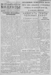 Kl I IIpX'№?napuu всех стран, соединятссь! 1 2 4 ( 3 5 4 ) 1 19 апреля 1940 г . п я тн иц а | Гс£ ” здГ а з е т а С е в е р н о г о Р К ВКП(б) и Р а й с о в е т а д е п у т а т о в т р у д я щ и х с я РАЗВЕРНЕМ ПРЕДМАЙСКОЕ СОРЕВНОВАНИЕ П р и б л и ж а л с я большой пр а зд н и к — 1-е М а я — день смотра револ ю ц и о н н ы х сил международного н рол ста риала, п р а з д н и к солидарности т р у д я щ и х с я всего мира. Рабочий кл а с с и кр ес тьянс тво Л я г л и н и Ф р а н ц и и в этот день еще смелее в ы с т у п я т с требован и я м и — п р е к р а т и т ь н а ч а тую втор у ю и м п е р и а л и с т и ч е с к у ю войну п р о т и в Г е р м а н и и ; пароды большого К и т а я еще теснее с п л о т я т с я в жел е зные ряды для борьбы п р о т и в я п о н с к и х импе ри а л и с т ов , с т р е м я щ и х с я силон з а х в а т и т ь К и т а й п п о рабо тить его народы; у гн е т е н н ы е забитые т р у дящиеся пролетарии д р у г и х к а п и т а л и с т и ч е с к и х с тран в депь Первого Мая потребуют от своих х о ч и е в - к а п и т а л истов увеличения заработной п л а т ы , со кращ ения рабочего дн я и ул у ч ш е н и я своих м а т е р и а л ь н ы х б л а г . Наш советс ки й народ, бл а го даря мудрой с тал и н с к ой п о л и т и ке советско го п р ави тел ьс тва, вс тречает революционный праздн и к — Первое Мая — в мирной обс т а н о в к е . Сов етс кий народ за это обязан Рабоче-Крестьянско й Кр асн о й А р м и и , которая еще раз в боях с финской белогвар- дейщиной п о к р ы л а себя неувядаемой сл авой. Разбив ф и н с кую а р мию , она добилась т о г о , что т р е бовалось — северные гр ан и ц ы СССР вместе с городом Ленина сейчас нахо д я т ся в безопасности на большом и креп ком з а м ке. 'Грудящиеся с тра ны с оциализ ма с п р и п од ня ты м и ч у вс твами радости и гордости за свою ро д и н у , за своего в е л и к о г о С т а л и н а и д у т навстречу праздн и к у Первое м а я . Они встречают этот в е л и к и й день новой волной соци а л и с ти че с ко го соревнования , с а м о о т в е р ж е н и и « трудом па про изводстве. К о л х о з н и к и , рабочие, и н т е л л и г е н ц и я и все руководящие р а б о т н и к и н аш е го района вместе со всей с траной должны еще шире ра зве рн у ть предмайское с оциалис тичес кое соревнование за быстрейшее проведение весеннего сева с вы с о ким качеством всех полевых работ с соблюдением п р а в и л передовой а г р о т е х н и к и . Вот у ж е нес колько дней к а к нач а л и сь полевые работы в к о л хозах нашего района . В Биазин- Скоч сельсовете на 10-е апреля у ж е вс пахано колхозами 2 1 5 г е к т а р , в О с т и ц к е — 4 6 г а , в I ражд ан ц ев ой— 1 2 3 г а . Соревнование на п о л я х все ш и р и т с я . Стре мл епне кол хозн и к о в — за воева ть бога тый у р о ж а й — о громно. Па первых порах весенних работ многие к о л х о з н и к и , т р а к т о ристы у ж е по ка зываю т неплохие, образцы. Т а к , нап р им е р , на т р а к т о р е С 13 -П А ТИ т р а к т о р и с т I I . И. Тоиорнгцев, работающий в колхозе « У д а р н и к » , ежедневно п о вы ш а е т вы работку и э кон о м и т горючее. Работая первый год, он п р и норме в б г е к т а р дает 8 га в см е ну . Его подсменный т р а к т о р и с т Д. И. Слободчиков т а к ж е выполняет н о р м у . Пахари э то го колхоза на лошадях тон. К . Ф . Слободчиков, И . Ф . Л у н ев , с о ревнуясь между собой, п е р е к р ыв аю т свои нормы вы р аб о т ки . В этой артели полевые работы проходят по зве ньям . Хорошо на л а ж е н учет т р у д а , и это имеет большое значение . Однако нее еще полевые работы в целом по району ра зв е р ты в а ю тся исключительно медле