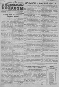 З А Б О Л Ь Ш Е В И С Т С К И Е К О Л Х О З Ы 28 (358) ВОЕННЫЕ Д ЕЙСТВИЯ В СКАНДИНАВИИ Герыапское информационное бюро сообщает, что морские и сухопутные силы союзников в районе Нарвика продолжают пополняться, однако они до сих пор не предприняли атак. Северо-восточнее Тронхейма германские части после короткого боя наняли важный проход Стейнкьер на севере от Тройхейм-Фворда. Восточнее Бергена продолжаются бои с норвежскими частями. Бои в районе Ставангера закончены. 23 апреля германская авиация снова атаковала английские военно-морские силы и войска, высадившиеся в средней Норвегии. Английское агентство Рейтер передает, что сейчас в Норвегии определились 3 основных фронта. Первый расшшжен у Лмлле- хаммер (в 160 километрах от Осло). В этом районе уже находятся английские войска. Совместно с норвежскими частями они начали наступление ва Ха'имар Второй фронт находится в районе Тронхейма, где происходят ожесточенные бои к северу от города. Третьим фронтом является Нарвик, где англо-французские и норвежские войска очищают районы, ранее занятые немцами. (ТАСС). О П ЕК УНЫ И С П Е К УЛ Я Н ТЫ На протяжении ряда лет единоличники деревни Чебаки име ли всяческую поддержку в укрытии своего хозяйства со стороны вражеских элементов. Эго была продуманная вражеская политика, направленная против колхоз ною строя. Держа в иаиболее выгодных условиях единоличников, тем самым они показывали населению, что единоличникам асить не хуже, чем колхозникам. Этобыло, по к сожалению п сейчас еще находятся люди, которые всячески поддерживают единоличников, ставят их в иаиболее тлодные условия. К числу опекунов единоличного сектора можно отвести Северный райлес- хоз и его руководителя т. Барабанова. Долго единоличники Ариковы старались, чтобы где-либо их заэтом сене Арыков подзаработал немало. Он продал колхознице Николаевой 4 центн. но18 руб., но той же цене продавал колхо знакам: Кузнецовой Наталье, Требупилону Василию, Филимоновой, Букареву за полтора иуда муки и т. д. Арыков пускал урманщнков ночевать и за ночь брал но 5U и больше рублей. Барабанов решил скрыть спекуляцию Арыки- на. Он распорядился послать па прокорм в Чебаки в распутицу 3 лошаденки. На них Арыков развозил ceno райлесхоза, им проданное отдельным лицам. На этих лошадях он навозил себе дров, ездил в другие деревни но личным делам. Таким образом единоличники Арыковы и с деньгами, и с хлебом, и с дровами, и они иолнонайщики Северного сельпо, где нм Букарев с осбоым ОТЛИЧНО ПРОВЕДЕМ СЕВ числили в штат, для того, что- уважением вне всякой очереди бы не платить налогов. Наконец отпускает любой товар, их пригрел Северный райлесхоз. Хотелось бы знать: за что От налогов они освобождены, пользуются такой любовью и Этому «рабочему классу» сочда- уважением заядлые спекулянты- ют наиболее лучшие условия.На- единоличники Арыковы? кошениое на государственных лу-1 Несмотрн па их большие за- гах сено Барабанов дал распора- рабатки, задолженность за едвно- женне вывезти на усадьбу едино- личинками из года в год возарс- лнчника Арыкова в Чебаки. Па тает. Только 5 хозяйств деревни Чебаки имеют задолженность государству около 2000 руб. МатеВ С Е М К О Л Х О З Н И К А М Письмо красноармсицев Всем колхозникам, рабочим и служащим Северного района шлем красноармейский пламенный при вет! Вступая н ряды Рабоче-Кре- стьяной Красной Армии, мы с 