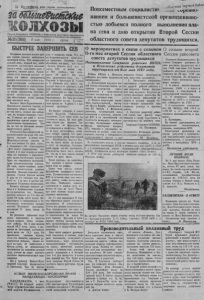 •'* П р к щ к ф и и всех стран, соединяйтесь! хозы Г а д е т а С е в е р н о го РК В К П (б ) и Райеопета депутатов трудящ ихся №31(361)| 8 мая 1940 г. среда Г ОД ИЗД' 5 - й БЫСТРЕЕ ЗАВЕРШИТЬ СЕВ Передовые н о л хо зы н а ш е го р а й она хо р о ш о у е в о в д в особенности вмвонш«я в е с ны O n u используют к а ж д ы й д е н ь , к а ж д ы й ч а с , чтобы С «хранит |. д р а г о ц е н н у ю вессапгою в л а г у в п о ч в е , п р о и з в е с т и посев в к о р о т к и е , с ж а т ы е с р о к и . Р у к о в о д и т е л и » ти х ко л хо з о в о т л и ч н о п о сияли , ч г о г о л . к о повседневная, м а с с о п о - п о л и т и ч е с к я я работа в ш о ре ие разв е р н у то е с о ц и а л и с т честное «оревновавн е з а поревынолн е ■иие у с т а н о в л е н н ы х н о р н , передан а е н и т а п е р е д о в и к о в , бол ьш е ви с т с к а я о р г а н и з а ц и я т р у д а — вот ч т о обеспеч ивает у с п е х проведен и я веееннего с е в а . К о л х о з ы М а л о - К а р а г а е и с к о г о в Б и а з и н с к о г о в е л ь с к и х с о в е то в , не до ж и д а я сь о бще го выхо да вемли »»з под с н е г а , н а ч а л а ceR выбороч н о , на к а ж д о й о тд ельн ой у ч а с т - * е . С п е р в ы х ж е дней в ж и з н ь К е л х е з н л к о в п р о ч н о вошло с о ц и а л и с т и ч е с к о е с о р е в н о в а н и е . Там н и ва ч а с не ва б ы ваю т массово 'н о л и т я ч е с к у ю р а б о т у . Р е в у л ь т а ты б о л ь ш е в и с т с к о й ор .Раннвовавности н а - л и ц о Оба сельсовета по д х о д я т к к о н ц у сева уМ а л е - К а р а га е в с к и е ко л хо зы на ‘6 - е мам заееалп 9 1 и р о ц . п л а н * , а б и а з и н с к и е — 8 5 . Сельхозартель « Д у ч с я с т а » ( п р е д с е д а те л ь тов. Л у ш в в ) 4 г о мая п о л н о с т ь ю з а к о н ч и л а сей зе р н о вы х и п е р е к л ю ч и лась н а с е в т е х н и ч е с к и х к у л ь т у р . Здесь все к о л х о з н и к и п е р е в ы п о л н я е т п р о извод с твенные з а д а н и я . & 0 п р о ц . посева зе р н о вы х п р о и з ведено и с к л ю ч и т е л ь н о рядовым способом. Молодой с е я л ь щ и к , к о м сомолец С т е п а н Г ол ьцов засевал « день по 11 г е к т а р о в п р и норме 6 г а . 1 - г о м а я в а р те л и пре - н и р о в а и с 1 0 л у ч ш и х к о л х о з н и к о в . Н епл оха п р о х о д я т полевые работы я в I I рябел и в с ком сельсовет е (предсе дате ль то в . Б о р и с о в ) , ко л х о з ы ко т о р о г о па 5 - е мая п о се яли 8 4 п р о ц . все го п л а н а . Победителями в с о р е в н о в а н и и с Ост а ни неси и сельсоветом вы х о д я т ■колхозы О с т я ц к о г о сельсовета , досе я вш и е 7 1 п р о ц . п л а н а на & мая . Не у с п е х а м и о тд е л ь н ы х перед овых сельсоветов и ко лхозов нельзя з а к р ы т ь общее о т с т а в а н и е р а й о н а . Н а 5 м а я за сеяно т о л ь к о 6 8 , 7 п р о ц . п л а н а , с п р и ростом ва последнюю п я т и д н е в к у веепо л и ш ь н а 1 4 , 1 и р о ц . Эго п р о и с х о д и т , г л а в н ы м образом, из -за т е х к о л х о з о в , не радивые р у ко в о д и т е л и к о т о р ы х , цоздво в ы е х а в на по л е , не в к л ю ч и л и с ь в боевую р а б о т у , не мобилизовали н о л х е з н я к о в на п о д л и н н о у д а р н ы й т р у д , у п а р н о не ю т я т п р и з н а т ь з н а ч е н и е с о ц и а л и с т и ч е с к о г о сире- в и о в а и и л . Вот к п р и м е р у Б о л ь ш е -Б у л н - н о в е к и й с е л ь с о в е т (п ре д се д а те л ь ч. С м е т а н и я ) . Т а м не засей л н еще и по л о в и н ы п л а н а . Ч е м , к а к не бездеятел ьностью председател я п р а в л е н и я З ы р я н о в а мо ж н о о б ъ я с н и т ь т о т ф а к т , ч ю кол хоз « П а м я т ь Д е н и н а » н а 5 м а я пз п л а н а 0 6 8 г а засеял толь к о 7 0 4 г е к т а р а , что го с т а в л к е т 3 0 п р о ц ? Это я в и лось ре»ультдтом т о г о , чт о и З ы р я п о в . и б р и га д и р ы Я Смол