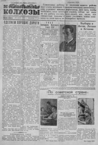 '•..иотеки. 1 р< летарии всех стран, соединяйтесь/ т Ш б ш £ 9 и а ш ы КОЛХОЗЫ о и л а с т н а я н ау чт Г з ^ т а С е в е р н о г о РКВКП ( б ; и Р а й с о в е т а д е п у т а т о в т р у д я щ ' №50 (380) >:С;1 23 мюля 1040 г, вторник | Г о г и з д . Сенокосные работы в к о л х о з а х нашего района идут очень медленно . Социалистическому ж и в о т н о в о д ству у г р о ж а е т зимовка в п р о г о л о д ь . Для т о г о , чтобы выполнить план заготовки кормов, сейчас ж е н а д о на эту р а б о т у послать в с е х лю д ей , в се тягло, в с е с е н о к о с ны е машины и Вдвое увеличить темпы с е н о к о с а —в этом вы ход из п о з о р н о г о провала. СДЕЛАЕМ ХОРОШИЕ ДОРОГИ L укА 3 Президиума Верховного Совета СССР Х орош ая дорога имеет большое 1 ц и необходимо вы п о лн я т ь решсхо зяйствеиное я оборопнос з н а ч е ние . Ц е н т р а л ь н ы й ком ит ет больш е вистской п а р т и и , советское п рави тельс тво нс жалею т ни си л , ни средств для того, чтобы п о ст роить по всей вашей стране л у ч ш и е ео всем мире дороги, сз- о р у ж и т ь в безводных с т е п я х к а налы, способные п овы сит ь урож а й н о с т ь КОЛХОЗНЫХ ПОЛеЙ. В прошедшем 1 0 3 9 году колхозники У з б е к и с т а н а при всемерной поддержке то в. Ста ли н а построили большой Ф е рганс кий капал имени то в а р ищ а Ста лина — самое большое ирригационное сооружение в С С С Р . Этот зам ечател вый капа* т я н у щ и й с я ва 3 7 0 километров через больш ую безводную Ферг а н с к у ю долину У збе ки ст а н а , построен к о л х о зни к ам и в 4 5 дней. 1ыснчи колхозников И колхозниц пзодня-в день самоотверженно шли к своей цели, строили Ферг а н с к и й к а п а л . Наше пр а в и те л ь ство за выдающиеся у спех и на ст роительс тве к а н а л а наградило 1 . 0 8 2 человека. Сейчас по всей с т ране , воодуш е в л я я с ь методами н опытом ферганцев, развертывается мощное народное двнжепие за с т р о ите льс тв о новы х каиалов, водоемов. х орош их дорог. Н а ш Северный район расположен от городов н а 1 3 0 - 1 4 0 квломе тров . Е г о колхозы рад иус ра сположения зан и маю т очень большой. В ле сп ой, заболоченной м ест ност и хорошая дорога крайне необходима. Ведь все знают и ощ ущ а ю т то , что с т о и т л и ш ь и с п о р т и т ь с я погоде и почти все д в иж ен и е п р е к р а щ а е т с я . В м ага з п н а х пет со ли , товаров; в с к л а д а х Северного заготзерно— хлеб — и все э г о л е ж и т , ждет п ут и п р о с ы х а н и я . В о т поэтому колхоз н и к и , колхозницы , организа ции и и х руководители нашего рай она должны не только кровно з а интере со ваны , но и обязаны, н а конец, всерьез, по фергански з а н я т ь с я строительством к а п и т а л ь н ы х дорог. Дело это, можно с к а з а т ь , н а чато в серьез . Но решению Новоси б ир с кого облисполкома с 16 июля н а ч а л а с ь работа на главном т р а к т е — Се верное— Куйбышево. В это т о с т а т о к летнего периода будет пос троено грунто вой , но более к а п и т а л ь н о й дороги 2 5 к и лометров . Н а дороге должно быть за н я т о ежедневно 5 0 0 человек, 2 0 0 лошадей, семь тр а кторов и отряд машинно -дорожной ст анции с полным м е х анизиро ванным вооружением и с п е ц и а л и с т а м и . Р е м о н т и р у ю т и бв азинский т р а к т , имеющий т а к ж е большое зна ч ение. Теперь, ст а ло бы т ь , дело в орган и з а ц и и работ. Вс ем колхознпвие Северного Исполкома Советов о посылке людей и т я г л а на дорогу. Первые дни ( о к а з а л и , что некоторые колхозы честно выполняю т свой долг — сделали te e , что от н и х требовалось к люди уа;е работают п с - н а с т о я 