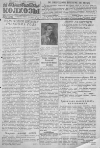 2 З А Б О Л Ь Ш Е В И С Т С К И Е К О Л Х О З Ы 53 (383) А г и т а ц и я в п о л е В нашем плане партиипополи- тической рабоыт предусмотрено п р р а о м в Н и о а . дить пе с р о в в о е м ща с н о и в я ещан с ии аги я татодал агитаторам поручение широко С х р щ о о а е в з т н ы н ‘ и я о и с г т ш о р с а г а к г С м т ь о о о в р в е У о и т к л с а ь т а о н з С о в С П г и С о р Р ез к у и о д х м о и б < д у а 0 а й ма н з е с а р В п о е р в р р а , е работающих в мзшчяно-трактор иых станциях». Почти все агитаторы радиуса нашей МТС первое поручение выполнили добросовестно. бенно хорошо, толково в О е с д о у т раз'ясннтельную работув трак торных отрядах колхоза »Вер ный путь » тов. Р Белноогов и выполнение стоящих задач перед, отрядом. Результаты получаются приличные. Тракторный отряд, которым руководит тов. Куликов, занял первоеместо среди других о х п о т о р з л а н я м е до и в н п н М а о ТС 1 в . 3 с 2 п П аш п о к р д е о о ц г . о п ов б л р о у р ан о а с ньб к е о — в л ы на 278 проц., культивации —на б с к Г ы е о л Л в ь п х с о о о п з м а р с р о чо в т ц ь о е . л и ь е м 2 й « о Я т и з р ю г я о л д - я с о а м ба т в н о ы в » . , еха ч К л т у о л в ивыполнить плац наравспашки. Этот отряд сейчас с к н р о е е п з к н о ам д я ер М ж Т и С т . З п а е х р о е р х о о ш дя у щ ю е р е аб к то ра у тан. Куликов премирован. Все агитатори-бесвдчпки А . Иванова. Кроме того, массо-. развертыв ч а а ю с, т к м ог а д с з со н в а о с - т л у о п л и н л т а ич х е л с ебоуборк с а е , й вую работу в отряде AS4 этого кую работу среди трактористов. колхоза систематически проводит д са а м М б и р х и а г и а л дир Ива т н ра о к в т ич орног К о ул о и т к р о я в Он частенько в своем отриде проводит беседы по вопросам международного тает статьи, замет п к о и лож н е з ни г я аз , ет чи и мобилизует бригаду па успешное камбайнорощ Это, безусолвно поможет нам пз-боезому низовать уборку без гатого урожая на п к о о те л р х ь о о з р н б г ы о а х полях. К . Е Ш А Л А М О В — З а м . директора по политчасти Северной М ГС В райкоме партии ченн Н о а г х о одя н с а ь рко н м а ат п а осту заго у т п ов о о л к ном п о о Северному району тов. Гутов ни ь коей мере не справлялся с О р н а о е б н л о и у т п е о о й л г . н ос а О у р д к н а о р м с н з т е а в г е о н б н е ы с п п о х еч з и э а т л г о от й в о ы в п п о р о к и л . мипе освободил его от занимав мой должности. На-дннх Северный райком партип своим решением назначил тог. Бутова иа другую работу, во он ссылаясь на необоснованные причины,отказался выполнить это иостаноилевие. 29 июля райком партии за антипартийный поступок—отказ в ч ы и п л о т л о н в я . ть Гут в о о в л а ю нз па ч р л ти ен и о — вВ и К ск П л ( ю б‘ . Делегации народов Литвы, Латвии и Эстонии в Москве 31 июля в Москву прибыли шею командования Красной Ар- делегацнп народов Литвы, Латвии мин, стахановцы заводов и фаб- и Эстонии. Они приехали хода-1 рвк, представители науки и ис- тайствовать иеред Верховным Со- кусства. ветом СССР о принятии Литов-1 На площадях у Белорусского ской, Латвийской и Эстонской' и Ленинградскою "вокзалов сости- Совегскнх Социалистических Рес публнк в великую к ск ов и о Д х д о и р т н о е г а л и р и х оод м г в о о с с к т о С йе о в в с е в к т с о т с с к р йп е о е а м ч ю р ь а т ю л и и С й о б н ю р ой з а р а т у . о н р ог га о ни Со за в ц ет и а и, С д С е С п Р у , таты герои Ве с р о х в о е в т ялись короткиемитинги Первая встреча с трудящими- ся столицы СССР вылилась в могучую демонстрацию некрепкой м г о от чь ов