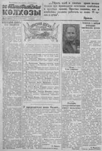 П р о л е т а р и и пс^.г с т р а н , roed ш я й т е с ь ! Г а з е т а С е в е р н о г о^РК ВКП(б^ и Райсовета депутатов трудящихся №57 (387) I 23 августа 1940 г. пятница Год изд. шестой „ . . .У б р а т ь хлеб в сжатые сроки можно только при правильном сочетании комбайнов н простых машин. Простые машины, как и комбайны, должны работать не менее 16 часов в сутки“ . Правда. БЕСПЕРЕБОЙНО СДАВАТЬ I ХЕВ ГОСУДАРСТВУ I В к ол хо зах нашего района | все шире развертываются по- ! левые I аЗоты. С каждым днем | на колхозных т о к а х , в амбарах | увеличивается количество на- ; молоченного зерна. Одпако темпы сдачи хлеба госуда р ству незначительны. График сдачи хлеба, установленный райкомом партии и Исполкомом райсовета на 20 а в гу с т а выполнен всего на 35 прон., а общий годовой план | на 11,8 пдэц, Неудовлетворительный х о д ! выполнения плана хлебосдачи об'яснмется только тем, что аппара т уполнаркомзага во главе с тов. Савченко по-бое- вому не руководит хлебозаго товками. Д и р е к т о р а М Т С —тов. Зобнин и Хохлов до сих пор не недут борьбы за то, чтобы к о л хозы натуроплату сдавали н а ряду с зернопоставками. Т оль к о поэтому натуроплаты сдано на 20 а в г у с т а 1274 центн. Н е к о торые председатели сельсо е т«и сдачу хлеба не взяли под свой контроль. Колхозы, например, Верх- Красноярско го сельсовета имеют много намолоченного зерна, но график хлебосдачи выполнили всего -навсего на З З пр о ц . К а к а я цена после ,э того пред седателю сельсовета тов. Ш а - то хину? Колхозы им. Калинина бпред- седатель тов. З уб к о ) и ,17 лет О к т я б р и “ (тов. Кильдешов), имея достаточно намолоченного хлеба, не выполняют г р а фик хлебосдачи. От этих р у ководителей настоящего ответ а сельсовет не потребовал. В Назаровском сельсовете колхозы давно убираю т хлеб, но го сударс тву сдавать его начали только 18 августа , д а й то отгрузили.. . 20 центнеров. Председатели колхозов т.т. Власов Г., Степанов Н. и р у к о водитель сельисполкома тов. А рхипов вместо большевистской работы ищут причины, оправдывающие их бездеятельность. Это не к лицу р у к о водителям. Сельхозартель „Путь к социа л и з м у “ сдалз государству всего 36 центнеров. Председатель тов. Леонтьев решил при остановить хлебосдачу до к о н ца у бор ки у р ож а я . Эта антиго сударственная пра кти ка не получила отпора со стороны сельсовета. Недопустимо медленно сдают хлеб колхозы Чебаковского. Чувашинско го , Ново-Троицкого сельсоветов. Их председатели т .т . Гришин , Хоменок и М а р ков, к а к видно, не ведут настоящей борьбы за хлебосдачу. Они не ударили по попыткам руководителей колхозов, б р и гадиров. пытающихся медлить со сдачей зерна государству. Возмутительные факты, срывающие выполнение плана хлебосдачи имеются на Больш е -К у л и к о в с к о м п у н к т е заго т зерно. 19 августа сельхозартель , 2 я пя тилетка“ привезла 28 центн. хлеба, но тов. Н а у мов (зав. п унктом ) не принял е го , мотивируя это тем, что н е к у д а ссыпать. На второй день он отправил обратно подводы к о л х о з а .Новый путь* только потому, что зерно повышенной влажности, но н еудосужил- ся организовать здесь ж е п р о с уш к у . Наряду с хлебоуборкой, с е вом озимых сейчас нет важнее задачи ка кой является хлебосдача государству. Э ту задачу надо разрешить успешно—вот что требуется теперь от к а ж дого партийного и н епар тий ного руководителя. i0- П о реш ению Северного Р К В П П (6) и Н е п о л н о - ;0 | 0\ма райсовета. з а н 