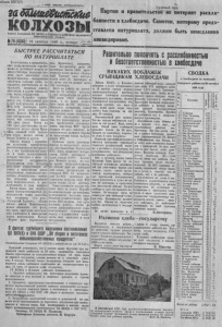 обком В К П (б ) -г 1 всех ст р а н , соединяйтесьi ж Ш б ш ® ы та (и е КОЛХОЗЫ Г а з е т а С е в е р н о г о Р К В К П ( 5 , и Р а й с о в е т а д е п у т а т о в т р у д я щ и х с я __________________ Н о в о с и б и р с к о й о б л а с т и ■ №7 4 (404) 1 24 октября 1940 г. , четверг 1 | ^ В В В * * Д И р О В « Ш . __ Красный про Пар т и я и правительство (№ потерпят р а с х л я банности в х л еб о сдач е . Сам отек , которому предо с т а в л е н а н а т у р о п л а т а , долж ен б ы т ь немедленно Б Ы С Т Р Е Е Р А С С Ч И Т А Т Ь С Я П О Н А Т У Р О И Л А Т Е В к л ю ч и в ш и с ь в предоктябрьское социалистическое соревнование за достойную встречу вели ко го Октября, передовые колхозы свято выполняют свою первую заповедь— своевременно закончили поставку хлеба государству , рассчитались по па- туроплате , засыпали семена, выполнили и дру гие обязательства перед государством. К о л х о з « У да рник » (председатель тоз . Слободчнков) сдал в счет н а т у р о п л а т ы за работу М Т С 1180 центнеров хлеба, вместо 1 17 4 центнеров по п л а н у . Колхоз «Верный путь» сдал н а т у р о п л а т ы 2 67 8 центнеров, что составляет около ЮО проц . плана. Почти на 1 0 0 проц. ра ссчитались по натуроплате колхоз имени Кал и - •ч н и н а , сдавший 1 69 0 центнер о в зерна, колхоз имени б съезда Советов и другие. Однако, наряду с передовыми к олх о зам и , своевременно рассчитавшимися по натуроплате, у нас насч итывается немало и т а к и х сельхозартелей, которые п л е ту тся в обозе по выполнению натуроплаты . Руководители э т и х колхозов д о п у с к а ю т недопустимую зат я ж к у в выполнении плана н а т у р о п л а т ы , выискивают разл и чные «об ъективные» п р и ч и н ы , которыми п р и к ры в а ю т свою бездеятельность и расх л я б а н н о с т ь в этом вопросе. Ничем и н ы м , к а к недопустимой безответственностью р у ководителей т а к и х колхозов, к а к , например, «1-е мая», к «Северный Та ртасс» , «Новая ж и з н ь » , имени Челюскинцев, можно о б ъ я с н и ть тот факт, что здесь преступно з а т я г и в а ется хлебосдача и выполнение п л ан а н а ту р о п л а ты . Колхоз «Первое мая» (председатель тов. Кравченко), например, сдал натуроплаты всего 50 центнеров вместо 1302 центнеров но п л а н у ; к о л х о з « Северный Тартасс» сдал н а ту ро платы всего 25 центнеров, в то время к а к он должен сдать 5 05 центнеров. Всего но району по состоянию на 22 октября ко л х о зы в счет натуроплаты за работу М Т С сдали 19837 центнеров зерна, а по плану должно бы ть сдано 4 4 . 2 8 2 центнера. Последняя пятидневка также не дала должного прироста в в ы по лнении плана н а ту ропл а т ы . Это объясняется только тем, что руководители колхозов, председатели сельиснол- комов, директора М Т С предоставили это дело самотеку , не организовали должной борьбы за выполнение плана н а т у р о п л а т ы МТС. Особенно плохо рассчиты ваются по натуроплате колхозы , ^обслуживаемые 'Гартасской МТС. Здесь начислено н а т у р о платы 2 2 0 9 6 центнеров, а сдано только 6 . 0 8 3 центнеров. Немного л у чш е , ко т а к же далеко неудовлетворительно обстоит дело по выполнен ию плана н а т у р о п л а т ы по Севервой МТС. Из на чи слен н ы х 2 1 . 8 9 2 центнеров н а тур о п л а ты колхозы э той МТС едали только 13э51 центнер. Такое положение да льше терпимо бы т ь не может. Партий но-комсомольские ор га н и з а ц и и , руководители колхозов, председатели еельисполкомов, директора М Т С должны т а к ирга | н н ю в а т ь ра боту, чтобы на основе предоктябрьского социалистического соревно вапия, наря