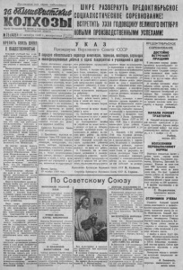 П р о л е т а р и и всех с т р а н , соединяйтесь} заШшеЯшймЫ КОЛХОЗЫ Орган С еверного РК ВКП(бу и Райсовета депутатов трудящихся ______ _ _______ Новосибирской области * 7 5 ^ ( 4 0 5 ) 1 2 7 октября 1940 г . , воскресенье | | ,"е1сиНШИРЕ РАЗВЕРНУТЬ ПРЕДОКТЯБРЬСКОЕ СОЦИАЛИСТИЧЕСКОЕ СОРЕВНОВАНИЕ! ВСТРЕТИТЬ XXIII ГОДОВЩИНУВЕЛИКОГООКТЯБРЯ НОВЫМИ ПРОИЗВОДСТВЕНЫМИ УСПХЕМА !И КРЕПИТЬ ВВИТЬ школ С ВБЩЕСТВЕНШЫО Текущий учебный год в нашей стране знаменателен тем, что родители, общественность повернулись лицом к школе, стали принимать самое горячее участие в школьной ж и з ни. Инициаторами оказания помощи школам явились колхозники, рабочие и служащие Че- репановского района. Еще до начала занятий они много поработали для то го , чтобы привести в порядок школьные здания, отремонтировали их, с о з дали уют и чи с т о ту в классных комнатах. Замечательный почин чере- пановцев нашел живейший о т клик в д р у г их селах и городах нашей страны и получил высокую оценку Народного Комиссара просвещения Р С Ф С Р тов. Потемкина. Инициатива черс- паноиских колхозников, о тр а жающая с та л и н с к ую заботу о детях, направленная на у к р е п ление со труднич ества общес- гвенности со школой, должна найти самый горячий отклик и в нашем районе. Факты свиде тель ствую т о том, что там, где работники сельисполкомов, колхозов и сами учителя организовали общественность на оказание помощи школам, там и р е з у л ь таты на-лицо. К таким школам относятся школа колхоза „Ударник*, Верх-Красноярская НСШ, Михеенская школа, к о т о рой заведует учительница-орденоносец тов. Шиманская. Но многие школы нашего района вступили в новый учебный год плохо подготовленными: Образцоаская, Елас- ская, Медвеженская и другие. Здесь мало заготовлено топлива, плохо произведен ремонт школьных зданий, нехкатает учебно-наглядных пособий. Ясно, что это отражается иа ходе учебно-воспитательного процесса. Неблагополучно обстоит у вас дело и со всеобучем. В районе насчитывается свыше 130 детей школьного возраста, не охваченных школой. Надо в ближайшее время до биться, чтобы все дети школьного возраста были охвачены всеобучем. Большая работа также должна быть проведена в связи с новыми задачами, стоящими перед сельской школой. о приближ ении ее к практике социалистического сельского х озяйства. Надо шире развертывать внеклассную к р уж к о в ую работу, для ру ков одства которой следует привлекать а грон о мов, животноводов, комбайнеров, трактори стов и других специалистов сельского хозяй ства. Все эти вопросы требуют самого скорейшего разрешения. Н о , к сожалению, в нашем районе эта работа развертывается все еще очень слабо. Надо не медля ни одного дня пр и ст уп и т ь к практическому разрешению всех этих вопросов. Партийно комсомольские и советские организации должны взять в свои р у к и инициативу сотру дннчества школы и об ществен ногти, организовать население для оказания помощи школам, создать все у с л о вия для плодотворной деятельности учителей в их большой и отв етственной работе по коммунистическому воспитанию подрастающего поколения Сталинской эпохи. У К А З Президиума В е р х о в н о г о С о в е т а С С С Р О порядке обязательного перезола инженеров, техников, мастеров, служащих и квалифицированных рабочих с одних предприятий и учреждений в другие Задача обеспечении к в а лиф и ц и р о в а нн ы м и кадрами новых заводов
