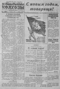 U p o jem ap u u всех стран, соединяйтесь! заШьше$ис)ю(№ О Л Ж Ф З Ь О р г а н С е в е р н о г о Р К В К П ( б ) и Р а й с о в е т а д е п у т а т о в т р у д я щ и х с я __________ ________ Н о в о с и б и р с к о й о б л а сти 6 1 (416) I 1 января 19 41 г., среда I К Н О В Ы М П О Б Е Д А М С О Ц И А Л И С Т И Ч Е С К О Г О С Т Р О И Т Е Л Ь С Т В А 1 9 4 0 год войдет в истерию со ветск ого государства к а к год в р у и в ы х у с п е х о в в строительст во социализма . В вач а ле года вооруженные си лы С С С Р ликвидировали опасный о ч а г ион ни ва северо-запад- вой г р а н и ц е Сов етскою Союза в вепоср едствевн ой близости к Л е н и н г р а д у . Героические К р а с н ая А р м и я и Поенпо-Морской Флот у в и ч т о ж и л и плацдарм ва- падення на С С С Р , подготовляв ш и н с и финск ой бслогвард ейща- ■ой при помощи кр уп н ей ш и х к а п и т а л и с т и ч е с к и х держав на п р о тяж е н ии м н о ги х лет. Белофинны и и п у ж д е п и били ^подписать мир на у с л о в и ях , (¡гч-^редлож^нных Советским Сою.ом. % 11 со ст аве С С С Р была образов а н а 1 2 - я союзная ре спуб лика — В а р е л о -Ф и н е к а н . С о н е т с к о ь у Союзу возвращена Бе сс а р а би я , вероломным образом • т т о р г а у т и н р у мы н ск и м и бонра- ми св ыш е 2 0 ле т назад, когда молодая Со в етс к ая республика была о к р у ж е н а полчищами бело •гвардейцев м интервентов. К СССР •тога ла Северная Букон ина — я с к о н п а я у к р а к в е к а я т е рритория , « а с е л е о п а и у к р а и н ц а м и . Б е с с а р а би я вошла в сост ав 1 3 - й союзной респуб лики - Молдавско й С С Р . К С С С Р добровольно нрпеоедн « з л и с ь три п р и б а л т и й с к и х р ес п у б л и к и — Л и т в а , Л а т в и я и Э а о - « в я . {¡■*1} Имеете 11 союзных республик ^ С С С Р об ъед и няет сейчас 16 сою з н ы х р е с п уб ли к . За один 1 9 4 0 г о д население С С С Р увеличились « а 10 миллионов вовых совет *КИХ гр а ж д а н , а те рритория — «ш 2 2 3 т ы с я ч и к в а д р а ш и х километро в . Н аш а промышленнос ть преодолели з а т р у д н е н и я , возникшие в а а ч я л е года и связи с м еж д ународной об ст а н о в к о й , я безостаново ч н о п ош л а вве рх . Но предвар и т е л ь н ы м д а в н и м , сообщенный т о в а р и щ е м М. И Ка ли н ины м « докладе , иосвнщеппом ХХ111 годовщ ине советской в л аст и, пят а промыш ленность (бел но?ых р е с п у б л и к и областей) а з е г за 194*3 год п р и р о с т продукции ва 1 2 , 6 миллиарда р ’.блей или на 11 проц. ио с р а в не н ию с т о г а « в 1 9 3 9 года. Со ц иа ли ст ич е с ка я п о в к ы д о г и - воеть переживает большой иод'ем. Р а с т е т добыча у г л я , руды, в*ф- т н , р а с т е т вы плав ка металла, у в ел и ч и в а е т с я выработка зле кгро- лнерг 1Н. З ам е ч а т е л ь ны и т о т и с т е к ш е г о се льско хозяйств енно го гола. 1 9 4 0 года миллиардам У р о ж а й зерновых п р и ближ а е тс я к 7 пудов. Во второй половине 1 9 4 0 года ра звервул ось всесоюзное соревнование в черней и цветной ме т а л л у р г и и , в нефтяной п ромыш - лен вост н . К аж д ая волна соревнования рождает новых героев тр уда. Н ико лай Кравцов и Петр С з в я - г овский — в угольной промышленности , Г о д е й Ш к а р а б у р а — в м е г э л л у р г п и , Алексей Семнволос и его многочисленные последоват е л и — в рудной промыш ленности , колх озник топ. Карпов с далеко Х а к асс и я, собравший с опытн ого у ч а с т к а 5 0 3 пуда пш ени цы г г е к т а р а . звеньевая колхоза «Комсомолец» ( К у р с к а я область; тон. Б а г а ц к Д я , по л уч и вш ая вебы палый урожай ржи в 4 4 1 пуд г г в к т о р а , звеньевая тов. Т и ш и н а , по л уч и вш ая по 8 6 2 ц е п г к е р . картофеля с г е к т а р а , 