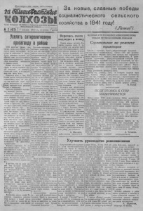 П р о л ет а р и и всех стран , соединяйчпесь! заШбше&шш&£ О р г а н С е в е р н о г о Р К В К П ( б ; и Р а й с о в е т а д е п у т а т о в т р у д я щ и х с я __________________ Н о в о си б и р с к о й области № 2 (417) I 7 января 1 9 4 1 Г . , вторник I ’ шестой З а новые , с л а в н ы е п о б е д ы социалистическо го с е л ь с к о г о хозяйства в 1941 году! („П ра вда“) . Усилить анитрелигиозную пропаганду в районе X V I I I п а р т с 'е з д у к а за л , чго те п е р ь , когда ваш а ст рана в с т у пи ла в поло су Постепенного п е рехода от социализма к к о м м у н и з м у , решающее зиачение п р и обретает дело коммунистического в о с п и т а н и я т р у д я щ и х с я , преодо лбвие пе р е ж и тк о в капитализма в сознании люден. Победа со циализма в нашей стране не то лько коренным образе* изменила ее экономику, социальной строй, но н преобрази «ала всю п а ш у ж к з б ь. Со ц иа ли зм вошел в б и т . В с е - больше р а с т е т ком муни с ти ч е ск ая со знательность м асс . Но еще до с и х с о р даю т себя знать перек а т к и к а п и т а л и з м а в сознанпи t ч&дей, тормозят наше движение в п е р е д , к социализму. Одним из вреднейших пережит кон я в л я е т с я рели гия . Р е л и г и я представляет собой идеологиюКласового экеялоататор- с к о ю общества. Р е л и г и я о п р а в ды в а е т и оснащает к а п и т а л и с т и ческий с т р о и , е ю идеи, понятия обычаи и п р и в ы ч к и . Она у ч и т , что т р у д — п р о к ля т и е , н а к а з юме за г р е х и . Р е л и г и я — враг н ау к и , в р а г всего передового. Она у ч и т , чтет человек — червь, раб, v r o все за в и с и т от воли бога, чдо ж е н щ и н а — не полный челов е к , что она ро дйтс я для ига. ¿Сено, что т а к и е идеи выгодны н аш и м в р а г а м , которые с т р е м я т с я удержать массы от актин вого у ч а с т и я в с о ц и а л и с т чес ком ст р ои тел ьс тве . В нашей ст ране уничтожены со ци альны е корой религии, у н и ч тожена почва, которая порождала и п и т а л а религию в к а п и т а л и с ти ч е ском обществе. У нас м илли оны людей выросли кул ьтур но , освободились от религиозных пред рассудков. Р е л и г и я — пер ежиток. Ло о т сюда нельзя делать вывод, что если р ели гия в нашем обществе н е имеет социальных корней, то о н*’ й П Н е г о с ч и т а т ь с я , незачем и ь е - т ч й н г и р е л т и о з п у ю пропаг а н д у . ЭЧО бЫЛО бы ГЛубОКО OUIII- боНное, п оли т ич ес ки вредное мнение. У нас есть еще не мало л ю дей пяд которыми вл а с т в ую т р е Л т н о я ы е предрассудки, которые н о ддерж ик аклс я классово враж дебными элементами, ос т а т к а м и к ул а ч е с т в а , врагами народа, 'реакционной поповщиной. 3(бгые вр аг и советской власти п р и л а г а ю т все си лы к т о м у , чтобы к а к можно шире п р о - н а г а н д я р г н а т ь рел и гию в ыас- с а д , вс яч ес ки со х р а н я т ь . в С и д у религи озные о б ы ч ш , обряды , су е верии в т . д . Вот несколько н р я м е р о в . ' . Ко лхо зники а р т е л и имени Т и м ощ енко , поддавшись религиоз ному д у р м а н у , в самый р а з ю р л е т н и х работ не вышли на р а бо ту м праздновали «день св ятой троицы». Где слабо поставлена а н т и р е ли ги озна я пропаг анда , там крепко пьет себе свои гиезда «христо " любичое воинст во», сея суеверие, контрреволюционную кле вету на сометскую вл асть. В колхозе «К расногвардеец», Биазннского сельсовета, имеется н екая Т а т ь яна Ры л ьси аи , которая об 'явила себя зна харкой -лек арем . В ре з ул ь т а т е бездеятельности местных п а р ти й ны х , комсомольских и профсоюзных о р г а н и за ц и и , эта Н и л ь с к а я насмерть «залечила»