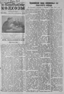 с&с стран , соединяйтесь/ КОЛХО ЗЫ Орган С е в е р н о г о РК ВКП(б^ и Р а й с о в е т а д е п у т а т о в трудящихся ____________________________ Новосибирской области № 33 (448)1 5 мая 1941 Г . понедельник Шестой Первомайский парад вооруженных сил советского народа На К р а сн ой площади в М о с к в е 1 М ая 1941 года В. И. Ленин, И .; ,В . Сталин и В . М . Молотов в редакции газеты .Правда* — 1917 г. Репродукция из альбома издательства »Искусство*— „Ленин и Сталин*. Z ’ -j Рисунок художника П . Васильева. Фотохроника Т А С С . ДЕНЬ БОЛЬШЕВИСТСКОМ П Е Ч А Т И Сегодня, 5 мая, вся наша страна широко отмечает День большевистской печати, котоыр й проводится в день выхода в д св ы е » т , л п о е н рв ни ой ско л - е с г т а а л л ь и н н о с й кой ма « с П с р ов ав ой большевистской газеты, первый номер которой выш рл о м б у ра н зн а о з м ад у —5 м вы ая раж 1 е 9 н 1 и 2 ю года 2 с . 9 ам Н о л о е й т тож н п « и П о а т в р й а а и л в е с и д и , ы с л в т » ы о , в с э » т т . п а о у п щ бы е п л н о п м ы е « щ й сн и а к в р о я в д са о м г и р од о е м к р а ч^с 1истории нашей партии, в д ни о ч е в .а , ог р о в за и на п р г о е о с р д т о р а и о ч е з н е а с и к е с о в й ое н б о о о во р с ь г в б о о ы бо с ж т т р д р о е у я большевистская печать всегда играла исключительно огромную роль. Великие вожди трудящихся Л ли енин огро и м С н т ое алия зн в ач се е г н д и а е пр п и е д ч а а в т а и , как самому мощному орудию п за р ц о и п и ага м н а д с ы с , . В аг . и И та . ц Л и е и нин и г о о р в г о а р н и и л , ^ ч т т т и и о в в н н « ы ы Г й й азе п т а р а г о — и п т а н а г т е а о н р д т , и о с л . т ьк н о о и т к к а о о к л л ж л л е е е к к и к в о а л р л и е щ ктив С ны та й ли о н рган уч и и за т тор» н . ас, То ч то «Печать—самое острое, самое сильное орудие пашей партии». Наша большевистская печать, н со и з с д т а и н ч н ес а к я ой и в п з а л р е т л и е е е й н , ная вел к и о к м и м м у и гениями человечества Лениным и Сталиным является подлвнно-на- роднойпечатью. ными нитями связа О н н а а с не р р а а б з о р ч ы и в м классом, трудовым крестьянством, с с о к в и е й тс н ко а й ро и дл н ю те б л и л т и , г у е в н а ц ж и а ей ет . , в С ы ов с е о т к о ц ч е а н т и ь т , п св ри ою ним бо ае л т ьш с е а в м и о с е тску ак ю тивн п о е е участие в ее работе. За годы советской власти ша печать выросла в могуч п ую а ^.г д б в а е о о з е т е в в с т к у э ю о к с м з е с м и С т п о л и л ю у я р . з р а е о ж В в е . и й з 1 д В а в 9 в 3 а 9 7 л н о а с г ш ь о е * м д й и у л 8 в с л 7 т и 6 р а С 9 а р о не нет ни одного района, где бы не издавалась своя газета. ме того, почти буквально Кро 1 д в де о н м к и а з и ж а , д в о о м д к е о , л п х р н о е а з д е п , р к и вж я со т д в и э х и й о , зе ф , а у б ч р р у и ч е к е ж е б , „ кажном заведении, в каждой М'ГС выпускаются степные газеты, роль и значение которых в деле коммунистического воспитания масс, в деле мобилизации их па л в т ы и ел т п С ь и о н е ч л о г н е о с е д в к н н е и и л я х е и , к в х о о к . з Д а я м е й н п с ь а т н в б и е о й н ль н ш ы е х и в с и к с и л т ю ск п ч о о и й печати, наша советская пресса подводит итоги своей боты за год, отчитывается перед читателями о проделанной рара боте. В этом году День печати з с п а ы р ц о и в и и оди в р т с а с е б я й отни п а к р од о м в ии с з о на ве к р тс а ом б ко с й е м л о ь н б к р и о е л р с и о в п ш а ени в й ыаол X пе V н I и I I о и п с а т р о т р к и о ч н ес ф к е и р х енц р и е и , п р о ос с а т м ано п в е л ч е а н т и и й , ЦК ре В ш К ен П и (б й ) п п о ар в т о и п и зя и й п с Н р т а а в ш в е и . а те п л е ь ч с а т 