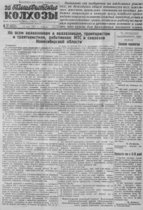 П р о л е т а р и и всех стран , со е д и н я йт е сь. заШтеШтсШ КОЛХОЗЫ О р г а н С е в е р н о г о Р К В К П ( б ; и Р а й с о в е т а д е п у т а т о в т р у д я щ и х с я Н о в о с и б и р с к о й о б л а с i и g 37 (452)1 15 мая 1941 г. четверг I од изд шестой Начинать сев выборочно на отдельных у ч а с т к а х , не дожидаясь общей готовности всех земельн ы х массивов, правильно сочетать на полевых р а бот а х машинную и конную тягу, наиболее производительно использовать каждый трактор, сеять в предельно-сжатые сроки, вести всю работу на высоком агротехническом уровне— вот основное и глав- ное, что нужно для выполнения посевного п л а н а. и ж с в м н в и ш ш п и и ш а а я в ш ш м к « ——— ——— _________________ ______________________ Но всём колхозникам и колхозницам, трактористам и трактористкам, работникам МТС и совхозов Новосибирской области Т о в а р и щ и ! На с о ц и а л и с т и ч е с к и х п о л я х в ащ ей области р а з в е р н у л с я в г с е и в н й с е в . От своевременного проведения сева во многом з а в и с я т ур ож аи п и н с и ш е г о года, д а л ь не йш и й р о с т общественного б о г а т с т в а колхозов и бл а г о с о с т о я н и я к олх озников . В е с н а в С я б я р и в атом году запоздала . В э т и х у с л о в и я х , чтобы н с у п у с т и т ь в л а ! у , чтобы з а л о ж и т ь весной д ей с т в в т ел ь н о прочны е основы высо ко го у р о ж а я , о т в с е х н а с тр е б ую т с я и с к л ю ч и т е л ь н о н а п р я ж е н н а я работа, б о л ь ш е в и с т с к а я моби л изац ия и о р г а н и з а ц и я всех с и л и средств для проведения се ва в са м ы е с ж а т ы е с р о к и . Дорог к а ж д ы й день и к аждый ч а с ! В е с е н н и й сев надо во что бы т о ни ст а ло провести в 8 — 1 0 р а бо чи х д н ей , с е я т ь оыстро и х орош о , ст р о г о соблюдая тр е б о в а н и я п е редовой советской а г р о т е х н и к и . П л а н с е в а — это г осударст венное зад а н и е , которое должно б ы т ь выполнено к аж дым колхозом и совхозом но к аж д о й к у л ь т у р е . II у пас е с т ь все возможности пр о ве сти сев в с а м ы е к о р о т ки е с р о ки и вы со ко ка чес твенн о . П а р т и я п п р а в и т е л ь с т в о о к а за л и колх озам н аш ей области больш у ю помощ ь в подготовке к с е в у . Оправдаем э т у заботу п а р т и и и п р а в и т е л ь с т в а бо льш евистской работой н а ве сеннем севе. К о л х о зн а я д ер е вн и проводит нын е ш нюю п о с с в п у ю в о о р у ж е н н а я з а м е ч а т е л ь н ы м и с т о р и ч е с к и м п о с та н о в л ен и ем Со вета Н а р о д н ы х К о м ис с а р о в С С С Р и Ц е н т р а л ь н о г о К о м и т е т а В К П ( б ) о долог зтельной о п л а т е т р у д а к о л х о з н и к о в , со зда вшим и с к л ю ч и т е л ь н ы е в о зм ожности для мощ н о г о п о д 'ем а к о лх озно го производст ва . З ад ача с о с т о и т в т о м , ч т о б ы , п р ави л ьн о п р и м е н я я э т о т закон в ж и з н ь , п о д н я т ь с а м ы е ш и р о к и е м а ссы ко л х о зни ко в н ь ч е с т н ы й , са м о о тв е рж ен ны й т р у д в поле . К а ж д ы й к о л х о з н и к я к а ж д а я ко л х о зни ц а должны п о ч у в с т вов ать к р о в н ую за и н т е р е с о в а н н о с т ь в т о м , чтоб! к о л х о зны е поля были вов р ем я и хорошо обработаны в з а с е я ны , чтобы к а ж д а я бр и г а д а , к а ж д о е звено, к аж ды й ко л х о з собрали пе менее, чем ст оп удо вы й у р о ж а й ! [ л а в п е й ш е е тр ебование н ы н е ш н е й запоздалой в е с н ы — ни н а м и п у - т у не оп оздать с севом, пе ж д а т ь , пока подсохнет п олн ос тью т о т или иной м а с с и в , а п р и с т у п а т ь к обработке земли , к се в у выборочно па о т д ел ь ны х п л ощ а д я х . Ч е т к а я и образцовая о р г а н и з а
