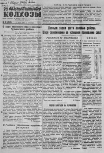 { 'И РЛОС П р о л е т а р и и вс е х с т р а н , с о е д и н я й т е с ь ' заШтеШШЬе К О Л Х О З Ы Орган Северного РК ВКП(б,1 н Райсовета депутатов трудящихся Новосибирской области Г 41 ( 4 5 6 ) 1 22 мая 1941 г. четверг Цена 10 коп. П Е Р Е Д О Т К Р Ы Т На обширной терри то ри и выставки н а к а н у н е ее откры тия особенно оживленно . Подходит к концу оформление павильонов, площадей и проспектов'. Я р к и е , красочные стенды в павильонах инсви- ! ц е н н ы многоотраслевым колхозам, одновременно [ у спешно развивающим различные отрасли своего I колхозного хо зяй с тв » . Ежедневно на выставку пребывают все новые | я новые экспонаты Н а -д н я х из Г ру зии , Ар мении , ! Молдавии поступило несколько вагонов апельсмнои, 1 мандаринов, я б л о к , в и н а ,с у х их фруктов. Горьковский ! автомобильный завод им. Молотова прислал 1 7 ваИ Е М В Ы С Т А В К И генов различных м а ш и н л а я и а а ш м м а « М ех а н и з а ц и я » . Посетители выставки у в и д я т в зтем году свыш е 5 тыс ж и вотны х и п т и ц . 1 2 9 передовых животноводческих хозяйств страны завоевали п р а во демонстрировать в зтем <еду свои успехи r ра звития с к о т а , высекоио|Ч>дной и высоком роду к - ти нпой домашней п ти ц ы . К т р е т и й год своей деятельности Всесоюзная селъхозвыставка вы ступ ит еще более величественной и красивой. ___ _______________________ (ТАСС ) О ходе весеннего сева в колхозах Гурьевского района Постановление бюро Новосибирского об ком а ВКЩ б) от 14 м а я 1941 года • Бюро обкома В К П ( б ) у с т а н а в л и в а е т , что Г у р ье в с ки й райком В К П ( б ) и р а й и сп о л к о м , дире ктор К у л е б а к и н с к о й М Т С проявили беспечное о т нош енье в своевременному развертыванию посевных р а бо т ,д опу с тили явное запаздывание с массовым севом в колхозах района . П р и н а л и ч и и большого количества паров, зяби, веснов с п а ш к и , по сп евш и х для посева, н а 1 0 мая 1 9 4 1 года по раиопу засеяно только 7 2 0 г е к та ров , и л и 3 , 2 п р е д , к п л а н у . В колхозе имени 1 4 - й годовщины О к т я б р я (председатель т . Ц е п о к ) при нал ич и и 1 2 8 лошадей и 9 тр а к то р о в ( в переводе на Ц е л ь н ы е ) из 1 . 2 8 3 ге к та ров п о д л о в л е н н ы х з е м е л ь н а 1 0 мая заборонено только 1 2 0 г е к та ров . В колхозе имени Чкалова ( п р е д седатель т . Евграфов ) из 4 1 5 г е к таров подготовленной земли на 9 мая заборонено только 4 7 г е к т а р о в . Вместо н а ч а л а работы в поле *1 е рассветом и о ко н ч ан ия поздним вечером в полевых б р § г а д а х Гурьевского района к работам п р и с т у п аю т поздно и кончают их рано ( в колхозе и м . 1 4 - й годовщины О к т я б р я н а ч и н а ю т работу в 9 часов у т р а , к о н ч аю т в 7 часов в е ч е р а ) . В колхозах имени Буденного, имени Ч к а л о в а , имени 1 4 - й го довщины О к т я б р я лошади вместо работы на боровьбе, похоте и се- " • ^ с н о л ь з у ю т с я н а посторонних, ^ п л о с е в н ы х р або т ах . Тра к тор ы не используются на полную мощно сть их моторов; за п л у г а м и , к у л ьт ив а тор ам и бороны не п р и ц е п л я ю т с я . Имеют место простои т р а к т о р о в из-за несвоевременной подвозки горючего и воды к м есту работы. В ряде колхозов нарушаю тся а гроправил а весеннего сева: доп у с к а е т с я п а х о т а без п р е д п л у ж ников , м е л к а я п а х о т а , большой О разрыв м ежду подготовкой земли и севом, я р о в и з а ц и я семян не проводится. Райком В К П ( б ) , райисполком, д ире кт ора М Т С и зам . д и р е кт о ров МТС по п ол и тч а с ти не при няли необходимых мер к своевременном у массовому развертыванию