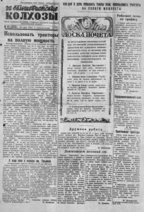 Пролетарии всех стран, соединяйтесь! 2аШ ш Ш еШ Ш 0 Л Х 0 3 Ы О р г а н С е в е р н о г о Р К В К П (б А и Р а й с о в е т а д е п у т а т о в т р у д я щ и х с я __ ______________ __ ____________ Н о в о с и б и р с к о й о б л а с т и п у * * < д и х с я И спользовать тракторы на полную мощность Машинно-тракторные станции | из-за технической неисправности ИЗО-ДНЯ В ДЕНЬ ПОВЫШАТЬ ТЕМПЫ СЕВА. ИСПОЛЬЗОВАТЬ ТРАКТОРЫ НА П ОЛ Н У Ю МОЩН ОС Т Ь ! |4íIi w k ж и 8ийД рдо ~'СКА ¡ I O U K T l I нашего района в нынешнем году в д ы ол х жп р ы або п т ро в из п в е е р с е т в и од в е ес н е а нне м - я п г о к л у е ю пахоту 7200 га. Этот об'ем ра но об этом даже т р о е м кц у, ия что М в ТС к . ол Н х е о у за д х и н в е и Ч т е з е б н л а а ь е к $ ф в ? вс п к о о д э и - го сельсовета план песеинфо се- бот при наличии в нашем районе;ва па 20 мая выполнен тольок .Ю тракторов выполним в 6-7 на 1,5 проц. Колхозы этого сель- рабочих дней. Нужно только для этого испольэовать машины на полную их мощность. К сожале- с р о ы в в е е т , а н н о ахо сю дя д т а ся с в с г а л м у о б го коом на п ч р а о л а с н е и в к а Пл М н о е Т хо С з . аг е л щ я е нул по н с а тав о л д ен ин т р е аб хн о и тческий уход за тракторами в по- этой причине часто трасторы выходят из строя. л ж и ю с н п о ч р а а е б в т ы н с с я о т с р т в е и е . то у С м ст , э р т а ч и н т м о и б т З ы ь ад д а к э е ч т а л и а о ю п з о м н а к е к о а обстоит крайне неблагополучно. I Еще 22 мая из колхоза «Крас - 1 ный партизан» сообщили в МТС что остановился трактор, срочон требуется механик. Третьи сутки простаивает трактор, а меха- пик все еще не прибил к месту аварии. Из-за правности не кторы в колхозах ра « бо Н та а ют м н а т е р т и а ь с , «Советская СвИрь» других, в МТС Г» Чапаева» и пню, это требование не выполни в н е ы т ер с м я н Т о а й н р и т М ас в Т ск С Т а . а я рт М а Т с С ск с о в й о , им н т и рак в то С р е парком должна вспахать 2300 га и засеять 3500 га. Однако, как показали итоиг т пе о р рн вы ы х й п д а не р й к по М ле Т в С ых р и а с б п о о т л , ьз т у р е а т к с я ь ^ л е к о не на полную мощность, и результате норазворотливости, б д е е с л п ь е н ч ы н х ост б и риг р а а д б и о р т о н в иков тра М к Т то С р , н о ы т х о ну тр ю ядов н м е ног в и к е лю ма ч ш ил и и н с ы ь еще в в р п а л б о о т т у. П те р л и ь ч н и о н й ы ра к б р о а т й ы не тра н к е т у о д р о н в о л г е о тво п р а и р ка кроются в том, что двректора * М е в щ у Т т С е « ж т с д . ы у р т т ы . м « и З п » о о б д и с н и ы а н с х т а и р н о и Х е я н о » и хл я о м в и п , оч в ж вы с и е , (механиков, но они отсиживаются хотя уже земля повсеместно | в кабвнетах, в тракторные отря- созрела для пахоты и сейчас ды заглядывают от случая кслу- итл пересыхает. В Гартасской чаю, безразлично относятся к бо МIС до сих пор не работает ни тому, что тракторы простаивают« один колесный трактор. Многие Все это привело к тому что та- бригаднры тракторных отрядов по телефону сообщают в МТС, что «земля еще сырая, пахать 1 Ш1 ьзя», а директор МТС т. Зоб- вши отсиживаясь в кабинете, ус- покаевается на этих телефонных сообщениях, плетется в хвосте о сы тс В х т а а н л к и ы о я л х хо п н з о а а ч с х в тр ы Ч о » е е . б н а и к й о , вс ж к д о е г т о се « л п ь о с д о вета, которые обслуживаются Тартасской МТС, и м е е т с я 11 тракторов, х б о о з т е ает «В п е о се к л а ый 3 т т р р у а д н к » о то е р щ и а з . е н 2 В и 1 х м ко а л я р а имелись созревшие массивы, но б р р а и ко га в дир то т л р ь а к к о торн 2 о 3 го о м тр а я я да п Б у а с т ти л тракторы на пахоту. В этом же колх