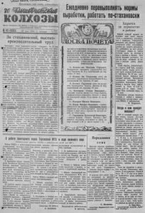 Пролетарии всех стран, соединяйтесь/] че Ш т е Ш т & е КОЛХОЗЫ О р ган С е в е р н о г о Р К В К П ( б ; и Райсовета д е п у т а т о в трудящихся ________ _ _ _ ____________ Н о в о с ибирской области _____ 29 мая 1941 г. четверг Пена 10 кон. З а с т а х а н о в с к и й , в ы с о к о производительный т р у д Запоздалаявесна нынешпего ^ода настоятельно требуетвысоко- д б п о о р г т о о а и т з ь в к о о д п л и о т х - е с зо л т н ь а н и х к о а й а н , о т р в р а с а б к к о и т т , о ы ри д о с о т т р а о , к ж а и р ж т а ь т ка ы ж е дой ср м ок и и нут с йо е . ва Б , о и рь с б по а л з ьз а ов с а ж ни а е т ну р ю актр М ооО в,Щ ж Ни Ов Со То Ь г , тяг В лЫ а С О пК а Оп По рл о И З В О Д И ' тельный труд па полях—являстартели «Ударник». На 25 мая о з н н о а и й Л з п у а л и о с е е щ ог я а в д л и и и . 41 С Ч л л о п е б н р о ы д оц чи . э к в т о с о п е г й о нз к п о о - о д л н с я х ео в б з в а от д к э е и т н о ь па вы з п п ап а о х л е о с н е я т н е ю ы т на н н о 1 а р 3 м 0 ы р н ай р в о о н ы ц н р у . ю а и доску почета. Можно привести много примеров самоотверженного труда колхозников на весеннем ся святым долгом каждого колхоз-1 севе. Вот, например, члены кол- ника и тракториста, занятого на , хоза «Нацмен пролетарий» Ильин Ежедневно превыполнятьнромы выработки, рбаоаттьпо-сат ахнвосн Борются посевных работах. С первых дней нолевых работ с ч п л е е д р ен е ат д ы ел с к о ь б о т о л й о х в оз . а з Л ад и « а Т г ч а р у ч ду ев п о ) р в о п и в о е к с с т » т ( а и п в р и с е л е и д в з в Т' ат 7 е ^ л г — ь к с и 8 т м во и ра о д б н о е и л чи а п м х о и д . к д р н З е д е п й е л с . я ь ю С т в к о а п е ж р д а о ы к б - й я к ф н о е и г - к о Щ у. з р н Т а и о с к ч п н о о р е а р б я с о о д т б а к л е ю и т а д г е т н р о а и ч е н ф о в ик п н а у о т п р г о е р л н а е вых работ сталотвердым законом д м в л о ы я гл ра о к б а о ж и тк д м и ог . о пе к В р о е л в х с ы о о о ц з пл и н н ал я и т и ки ь с а ти эт ч н о е о с р п к м о о м ы соревнования за перевыполнение ^у ж о х р а и р м т ь с в I т ы t и V р л f а f б ь C о T щ т i к i и f и f к t П fn е ' т п р Л ер и Л ев х и а н ч п» с е т p в в g о c и . де п д р а р . Тов. Лигачев выполняет норму т к н е о а л в и . 12 д П 0 а е е р т е п в п р а ы о п х ц о а . р , лн ь е та н С и к т е и е е п н ан ж ор е м К п р в у о ы г к р л з я а а ав бо и т к ки » п п е о р з в в ы о м лил в о р к ай ол о х н оз е, у « е Т щ ру е до 2 1 мая, закончить сев пшеницы, а на 24 маязасеять 72 проц. всей посевной площади зерновых куль- Ty[Jppoiau e результаты на севе показывают колхозники сельхозМитрофан Михайловичи Карпов Иван Афанасьевич бесперебойно с ч с к т и н а о м х аб я , , н ж и д а в е е ю о м л з т а я т я в тра 7 в е к 5 т го о с р к н у п м т ы о к ., й и в р о о е з т 1 к ч р е и я р к д е й н г с с о - а е р м ю р л я о а колхоза им. 6-го с'езда Совето в д в с Сергеенко Д. ежедневно няет дневную норму выра в б ы о п т о ки л на 200 проц , трактористы Север- пой М'ГС тт. Назаров и Лосев с с м т у п е в м ер ы та в р и ы а ч х е б с о д ки н т е к й п и е д р п ,а е о ю в л т ы ев п ы в о ы л х с н о я р к ю а о б т е от но с р к и а ч к ны о ес пр т о п во и а зв р о р а д б а и о т йо т ел н . н ь В у н юы се й о д т н о р и с у ку д за за по н в е ч ы се е с о т а. т ч ь и с т Д ь я л т в я о ес г т о е о , н г н ч о т и , о й б ч ы с т е о в к б , а н ы ж е д об ы б х ы й о с д т к и р о м е л е о хо д о з о н к б и и о к н выполнялнормы выработки, надо д п в о о а в о т щ ы ь х р о , я т э т с ь т т о а п ю д е а щ с р т д и е х о во в д и з о м ко о у ж в р , н о о в с н т п я ь од н п о ят е с р г е и е ять быстро, хорошо, заложить прочную основу высокого урожая. ки П н е а ре в в е ы с п е о