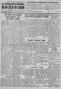 П ро л ет а р и и всех стран , соединяйтесь! ж Ш т е & т с к Ь е КОЛХОЗЫ о р г а н С е в е р н о г о Р К В К П ( б ; и Р а й с о в е т а д е п у т а т о в т р у д я щ и х с я _______________ Н о в о с и б и р с к о й о б л а с т и и ю н я 1941 г , воскресенье В с е с о ю з н а я конф еренция О с о а в и а х и м а Президиум Центрального Совета Осоавиахима С С С Р постановил с о з вать в Москве 15 июля 1941 года Первую Всесоюзную конференцию Осоавиахима. На конференции будут обсуждены очередные задачи организаций Осоавиахима на ближайший период, устав Осоавиахима С С С Р и организационные вопросы. * ( Т А С С ) . ГОТОВИТЬ ДОСТОЙНОЕ ПОПОЛНЕНИЕ Д Л Я КРАСНОЙ АРМИИ «Всеобщая воинская ность является законом. Воинская служба в о Р б г я б з о а ч н е - Крестьанской Красной Армии н п о р с е т д ь став г л р я а е ж т дан по С че С т С н Р ую », за о п б и я с з а а н н о в сти 1 П т 3 у р 2 ц о - й и й д и е . с т та ещ ть е е н С е т с а к л о и ль н к с о кой вре К м о е н ни н з р ы и вно п г р о из в ы о в п з н е р р ы а е с х д та о к м т о о к м л р и о о с д ю с е и т ж с й ь я . ю д П в п р е р и и зывники получат путевки в ряды славной ской Красной Ар Р м а и б и оче- и Кре В с о т е ь н я н н о - М зы о в р н ск и о к г о о в фло с та. н К е а т ж ер д п ы е й ние и м з п ж р д и е т ^ э т с т т е о о л г й ь о н н о д ую ня д в а с и т т р у г е . о т р и и т К т ь аж ж э д т е ы л у й ани и з е н з м ам п е д р н о и а з ч ы ты вн — ик с о т в ать сейча д с ост в о ы й н н а ы ш м ивае в т ои м н е о м героического советского народа, с честью выполнить свой свяп неполно-средпим образованием. о бо д т . а Се О й б ч д о а о р с л о ж н н н н а а о с - т ф у и п п з и р к и л у н л я ь л т т е ь у т р н н и а о й я соб п е е н р р н а и о широкий размах. з к р ы о а м ж вн п н л и е е к н к и с д о й о м , лж п е л н г а и в м х а н о н р а и о с е К ш т м и а о , ж че д н с ы а к о й у и в ч х л и а т д п ь у е р т с п и я ь хорошо стрелять, бегать, брать препятствия. б се е л , е Д н и л н я з о б м е э - п т ч у о и г н т о к ал те ь н н , уж е п , н ри о ш к в к а о ж к л д а е ж ом д о о б м к о л р у н у а довать спортивные площадки, где т н м у и о р л м н о а ы д т е м ь ж с ь я, м о д в е о л л г а л о д а м е . т б ь ы К во ф е с и н о з н ж и о ч а - е л ф с е и к н з и и ку ю л з , ь ас этим вопросом у нас не везде обстоит благополучно. В т а к т сельсоветах, как например, Н-Тро- ицком, Останинском, Чувашинс- ком не имеется даже спортивных площадок, с призывниками не проводится никакой работы. Пред БЫСТРЕЕ ЗАВЕРШИТЬ СЕВ. РАЗВЕРНУТЬ РАБОТЫПО ЗАГОТОВКЕ ЛАРОВ. НЕЗАПАЗДЫВАТЬССНЕ ОКОС М Там, где не р у к о в о д я т севом Чебак о вск ие колхозы граничат с колхозами Прибелинского с е л ь со ве т а . Как у т е х , так и у д р у г и х имелись одни и те же усло в ия в пр овед ении се в а— одинаковые климатические и по чвенные условия . Однако колхозы Прибелинско го сельсовета давно отсеялись, а колхозы Ч е б а к о в с к о г о с е л ь с о вета засеяли только 59 пр оц . по севной площади. Э т о отставание объясняется тем , что председатели колхозов пустили на с ам о тек посевные работы. Вот, наприм ер , в колхозе .В е с е л ы й труд " нужно засеять 215 га зерновых и технических к у л ь т у р . Здесь имеется 16 рабочих лошадей, 2 трактора. Им ел и сь налицо все у словия закончить сев в 8-10 дней. Н о посевные работы идут уж е 23-й день, а засеяно только 56 п р о ц . П р и ч е м с каждой пятидневкой т е м п ы поле вы х работ снижаются. Е с л и в третьей пятидневке пр ирост составлял 26 п р оц ., то последняя пятидневка дала п р и р о с т 5 проц . Пр ед сед а тель этог
